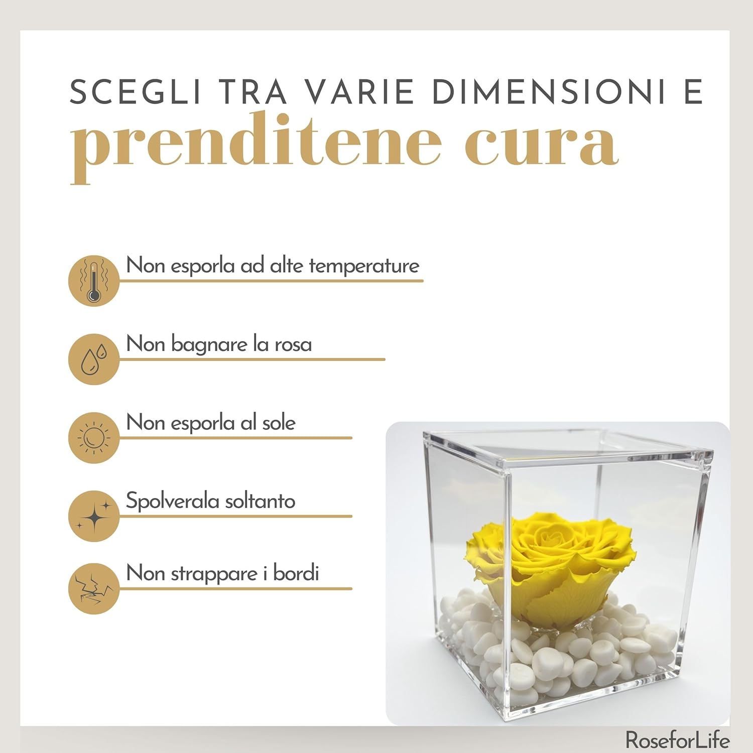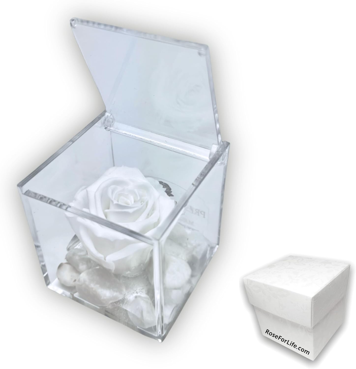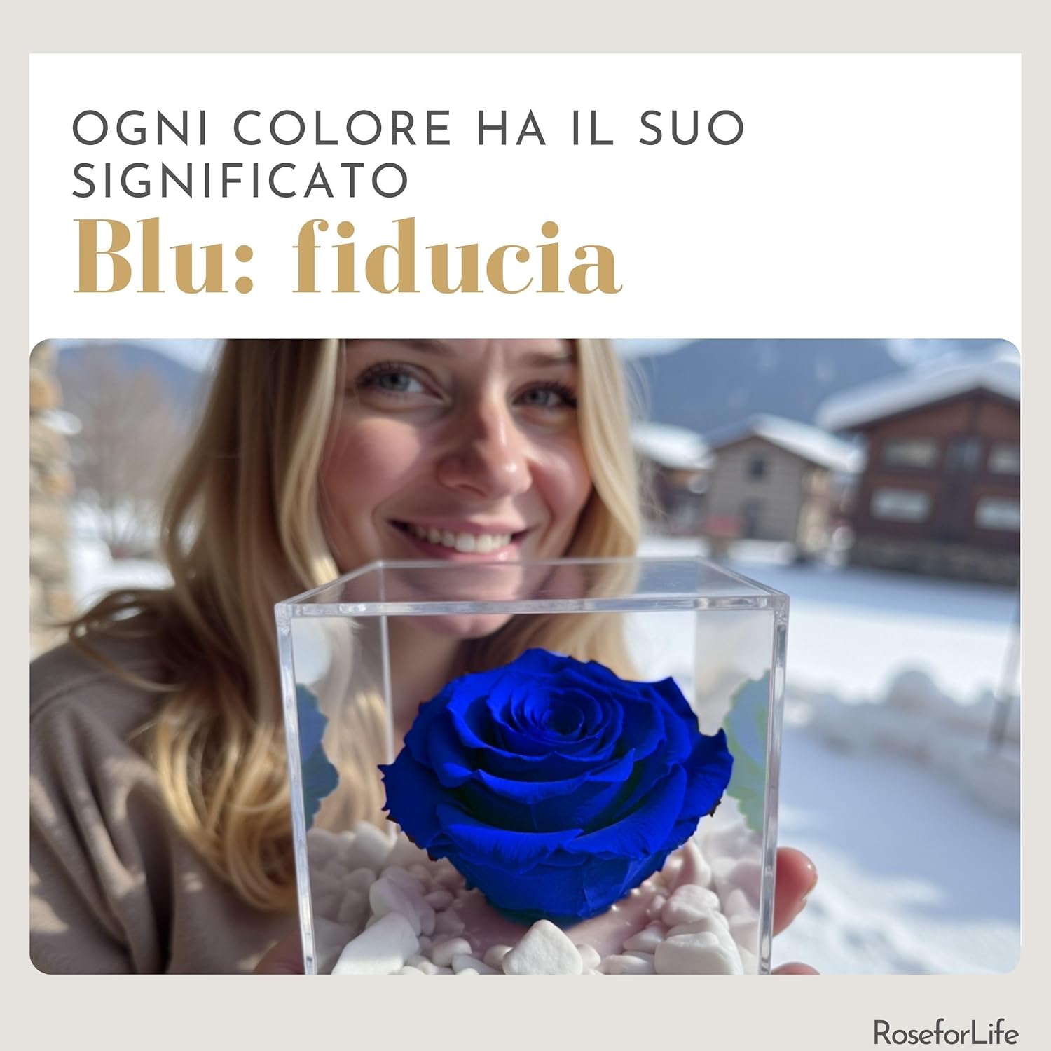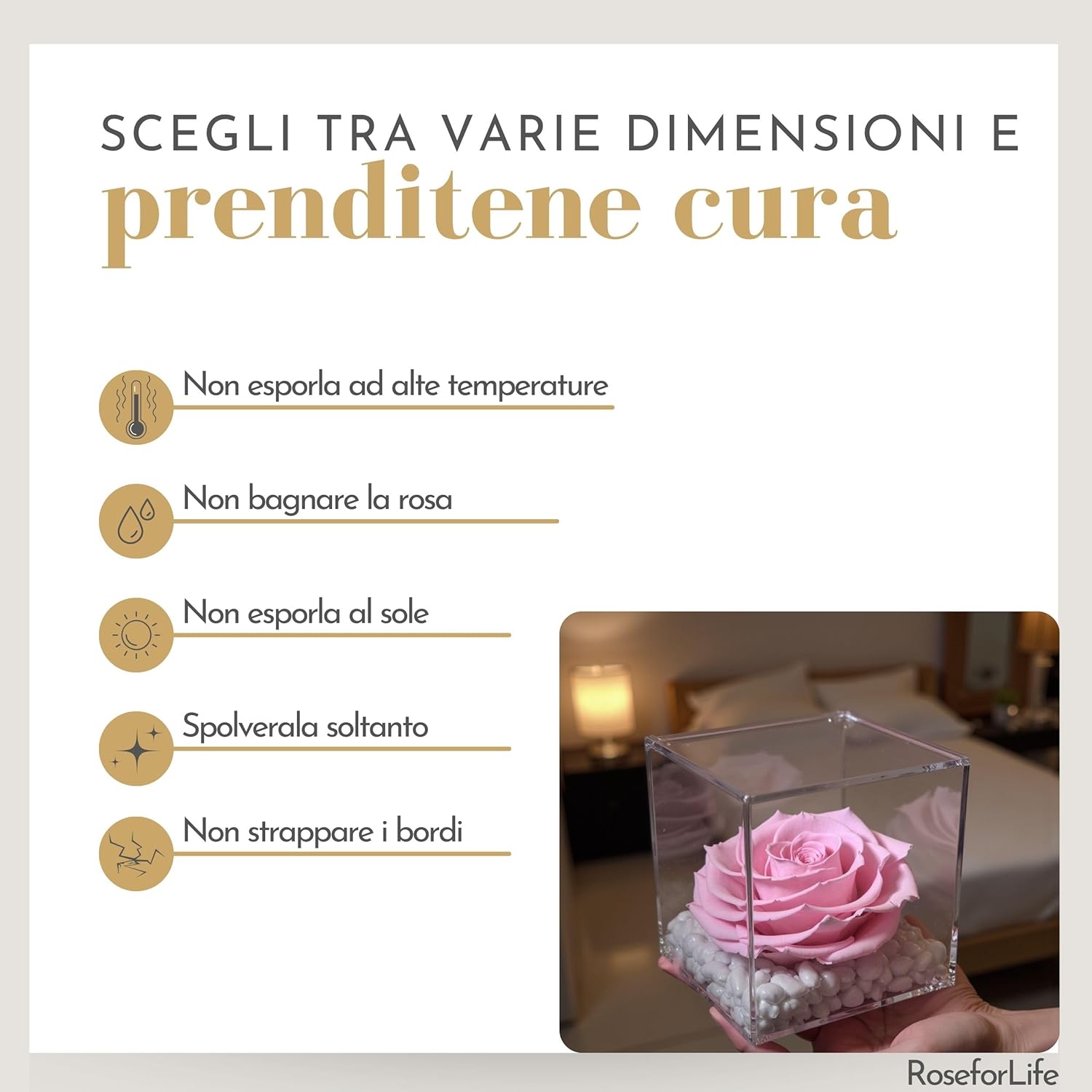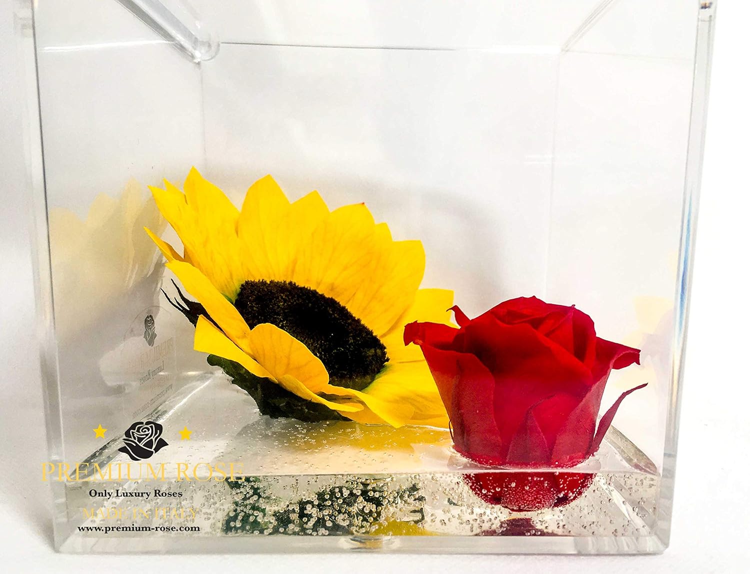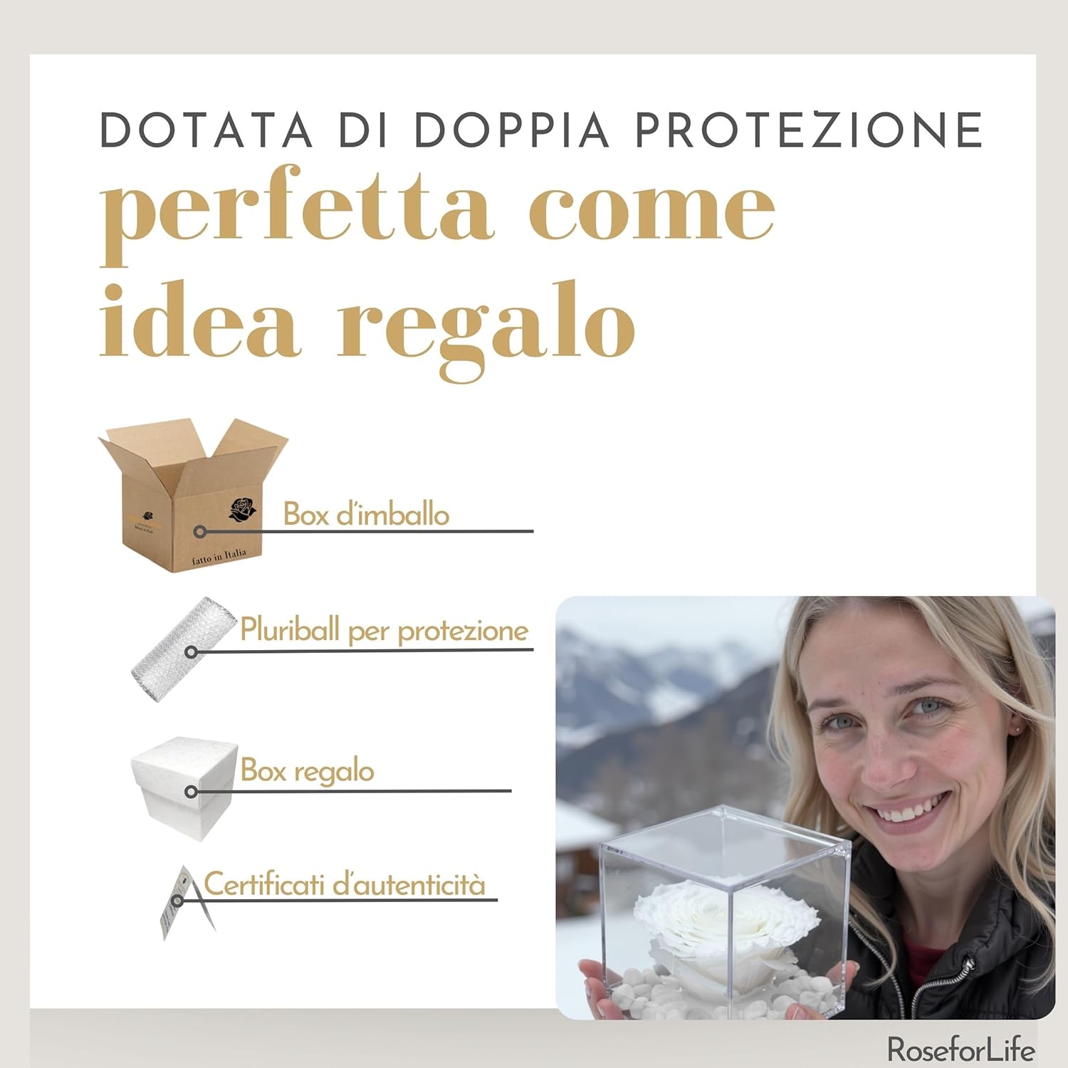 PREMIUM ROSE - Cubo Rosa Stabilizzata Rossa Profumata 8cm con Marmo di Carrara - Rosa Eterna Stabilizzata Rossa Idea per San Valentino, Natale Made in Italy - Rosso 1080