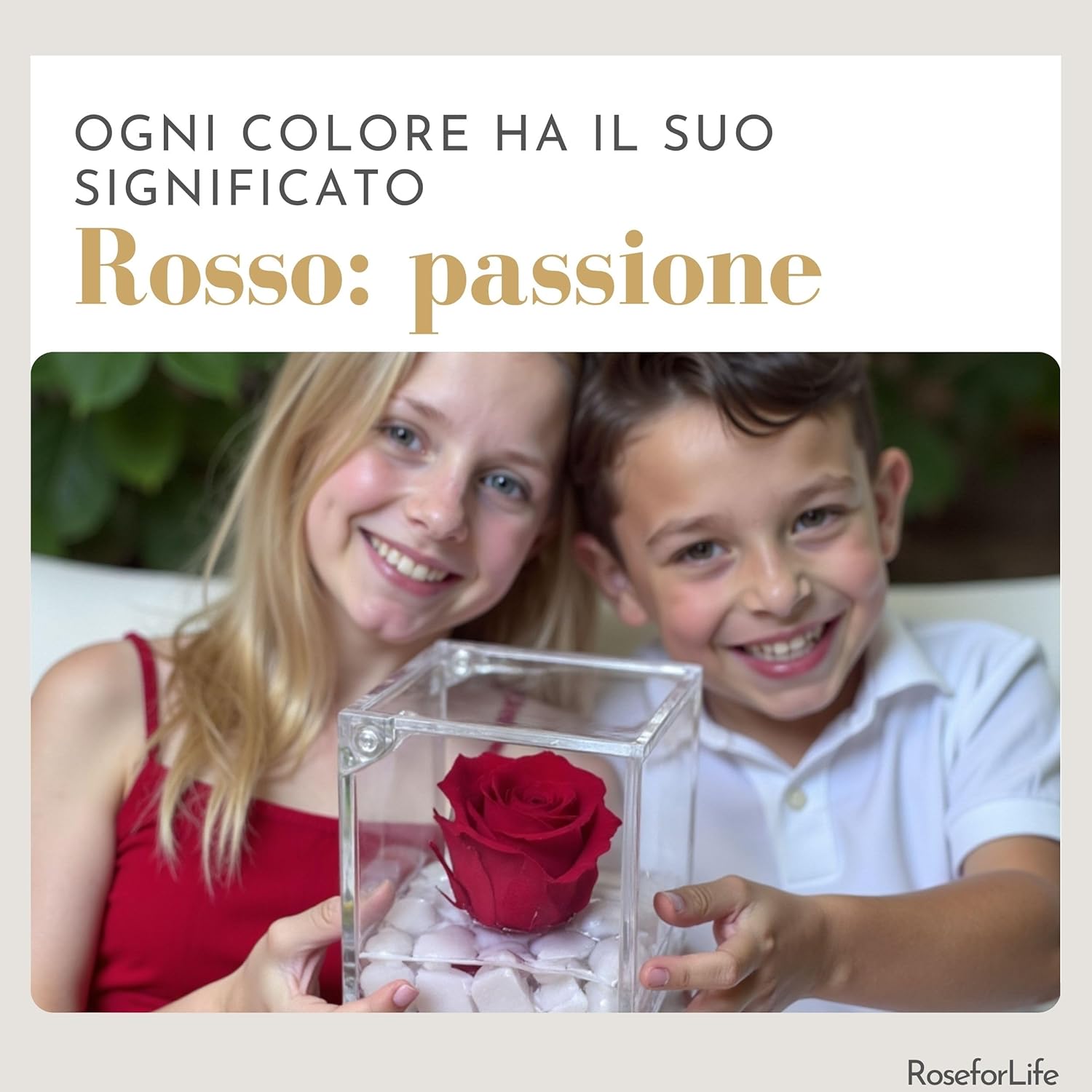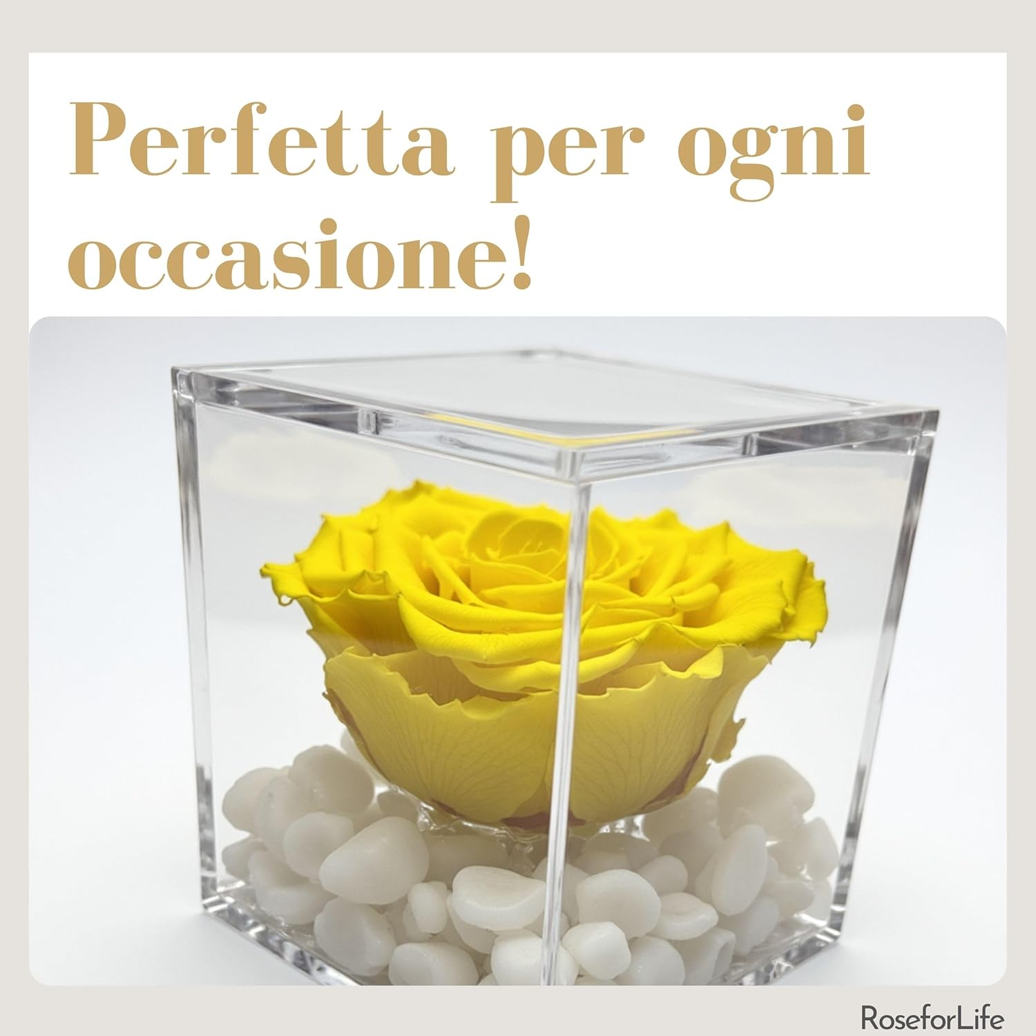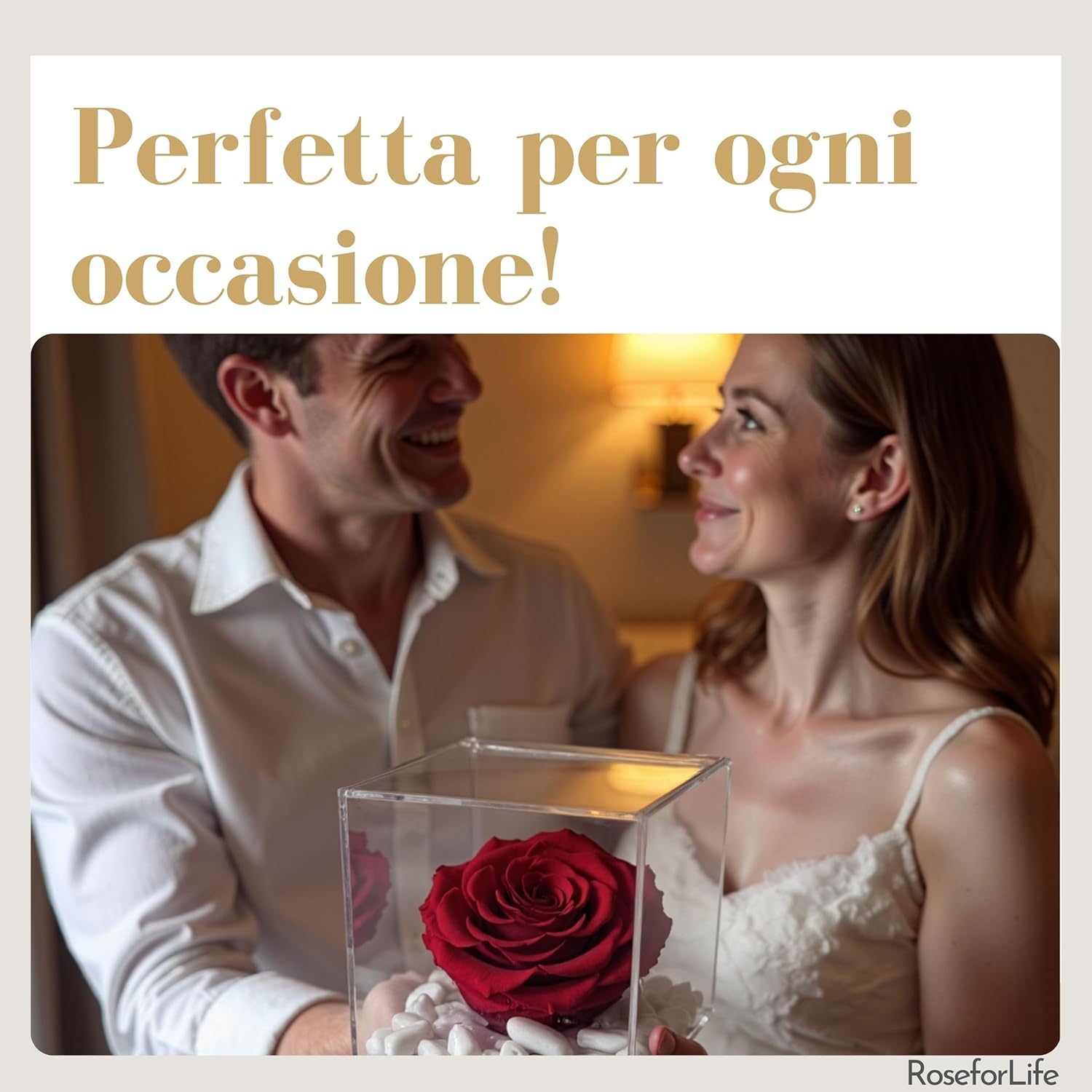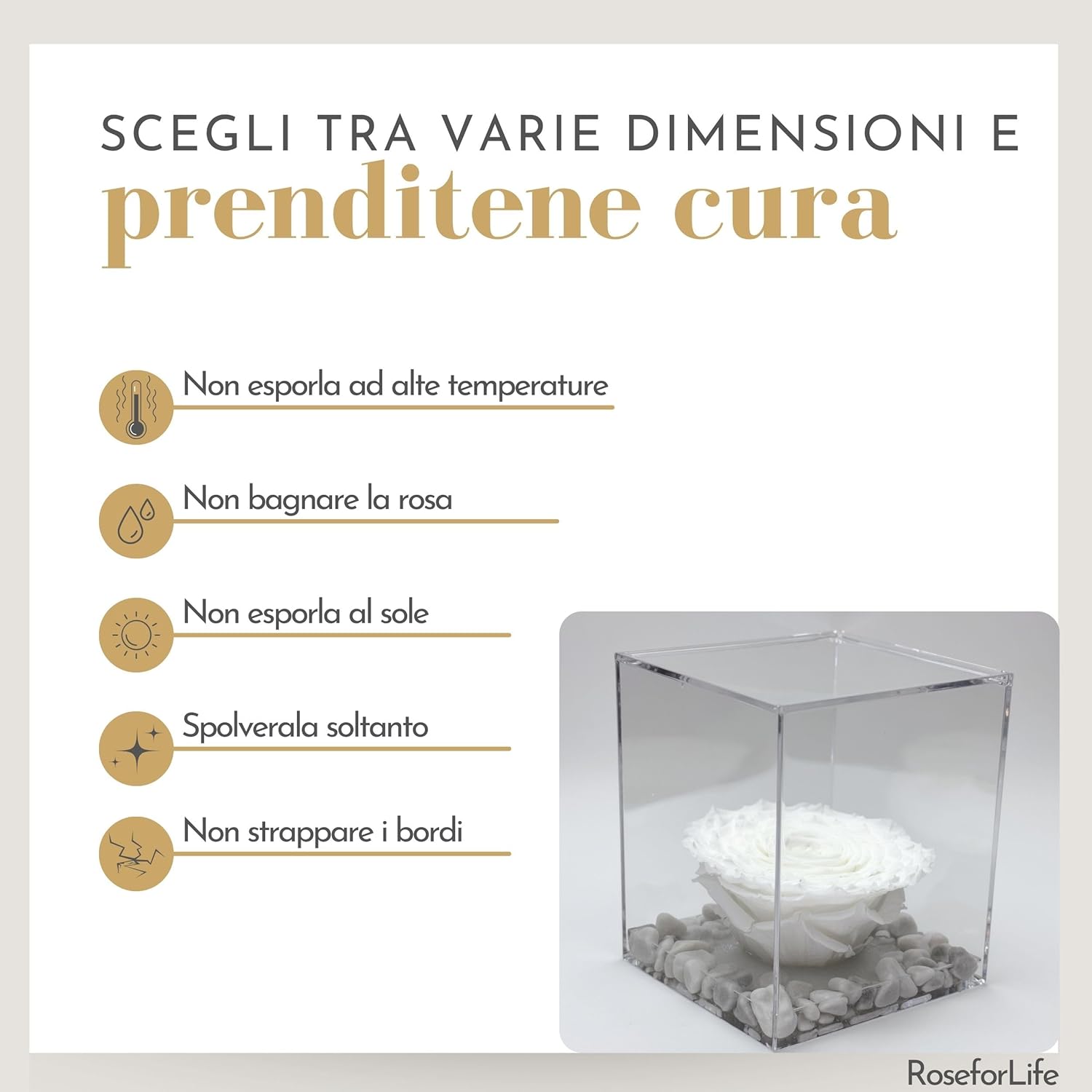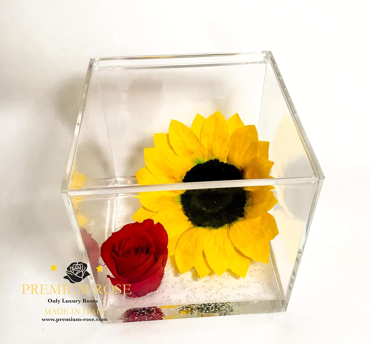 PREMIUM ROSE - Cubo Rosa Stabilizzata Rossa Profumata 8cm con Marmo di Carrara - Rosa Eterna Stabilizzata Rossa Idea per San Valentino, Natale Made in Italy - Rosso 1080