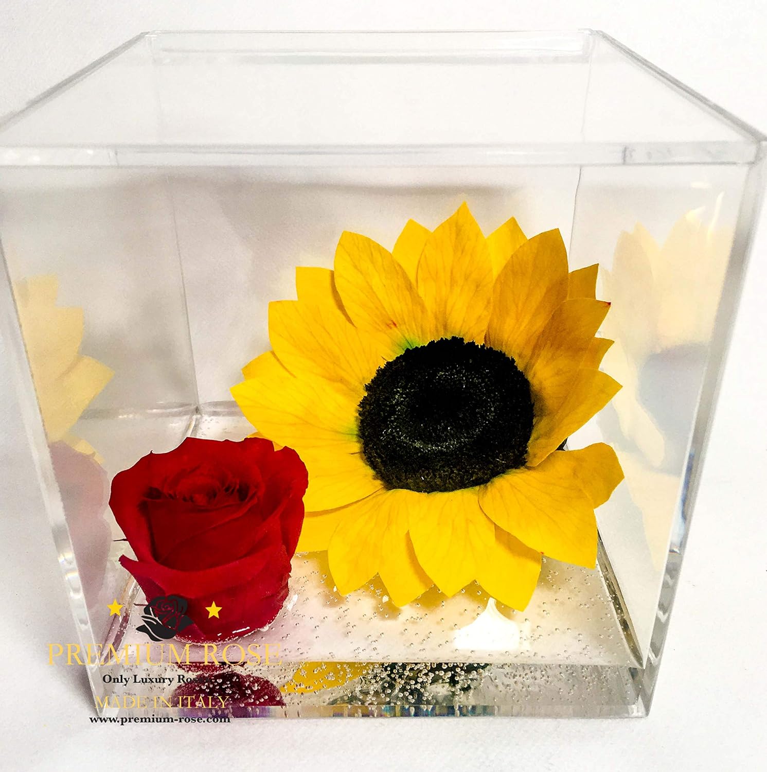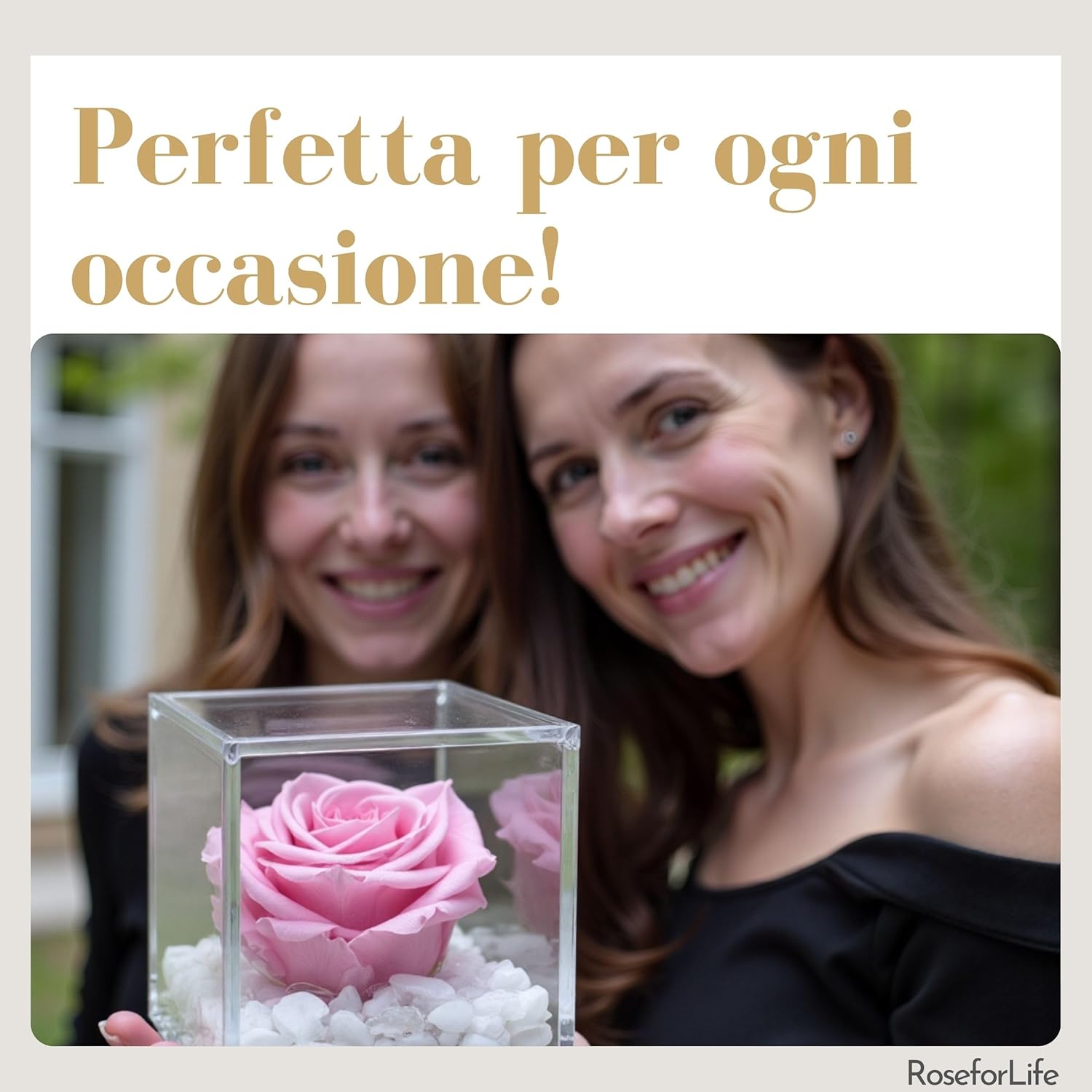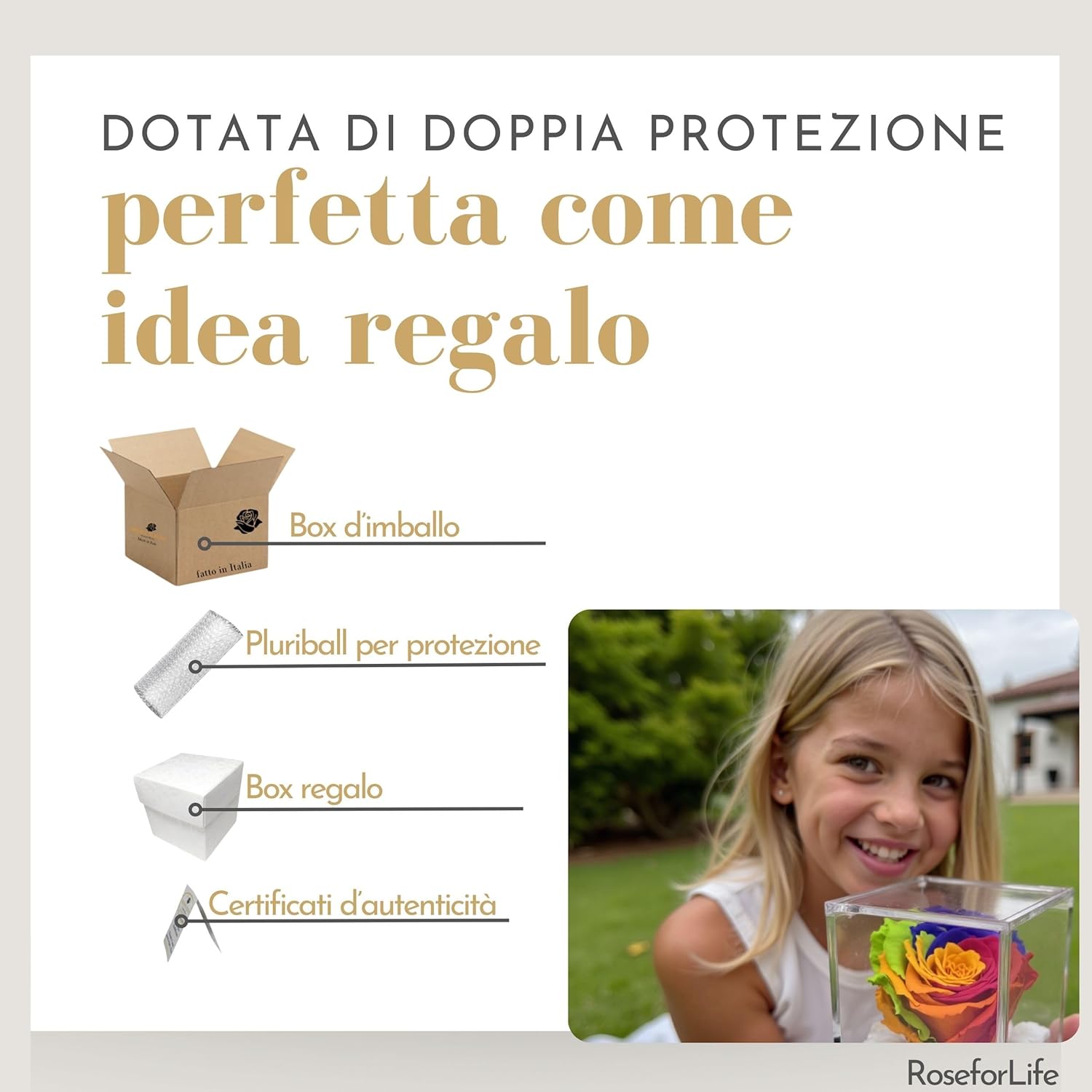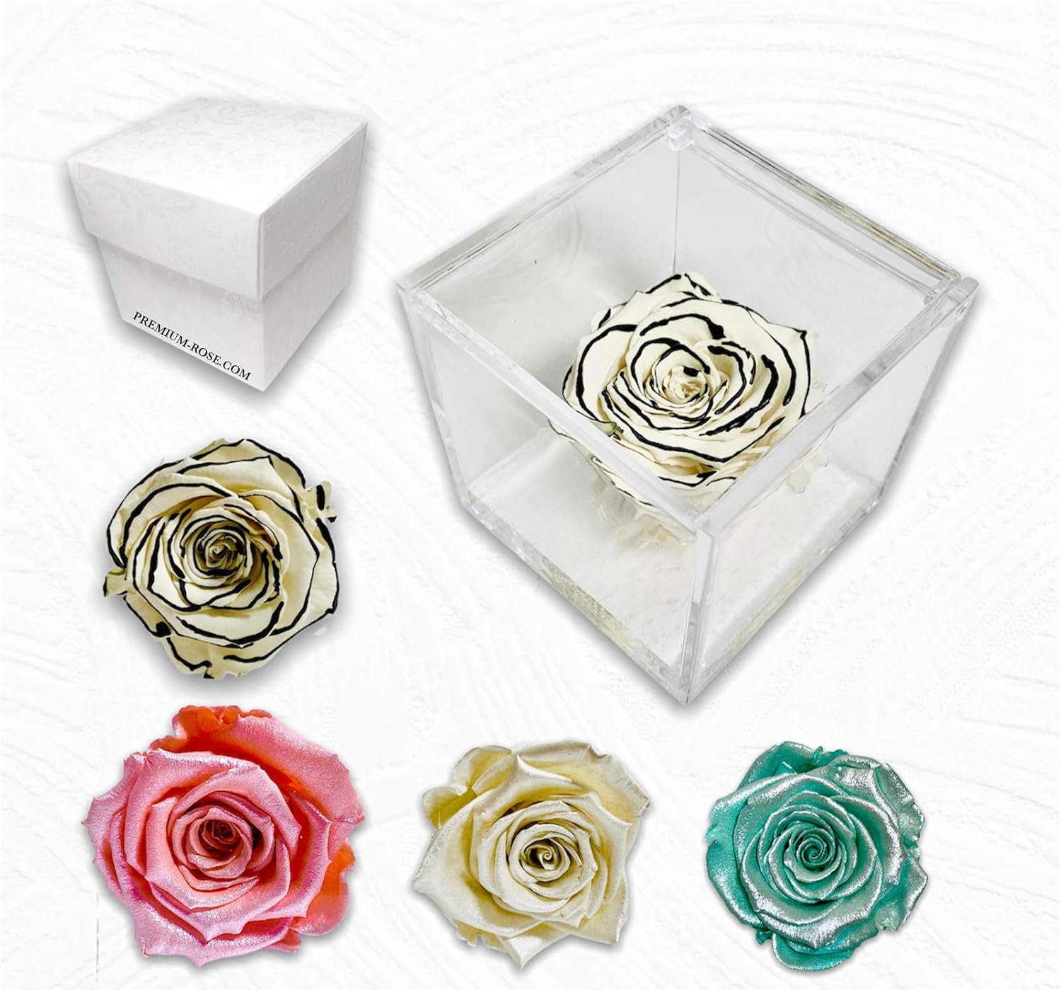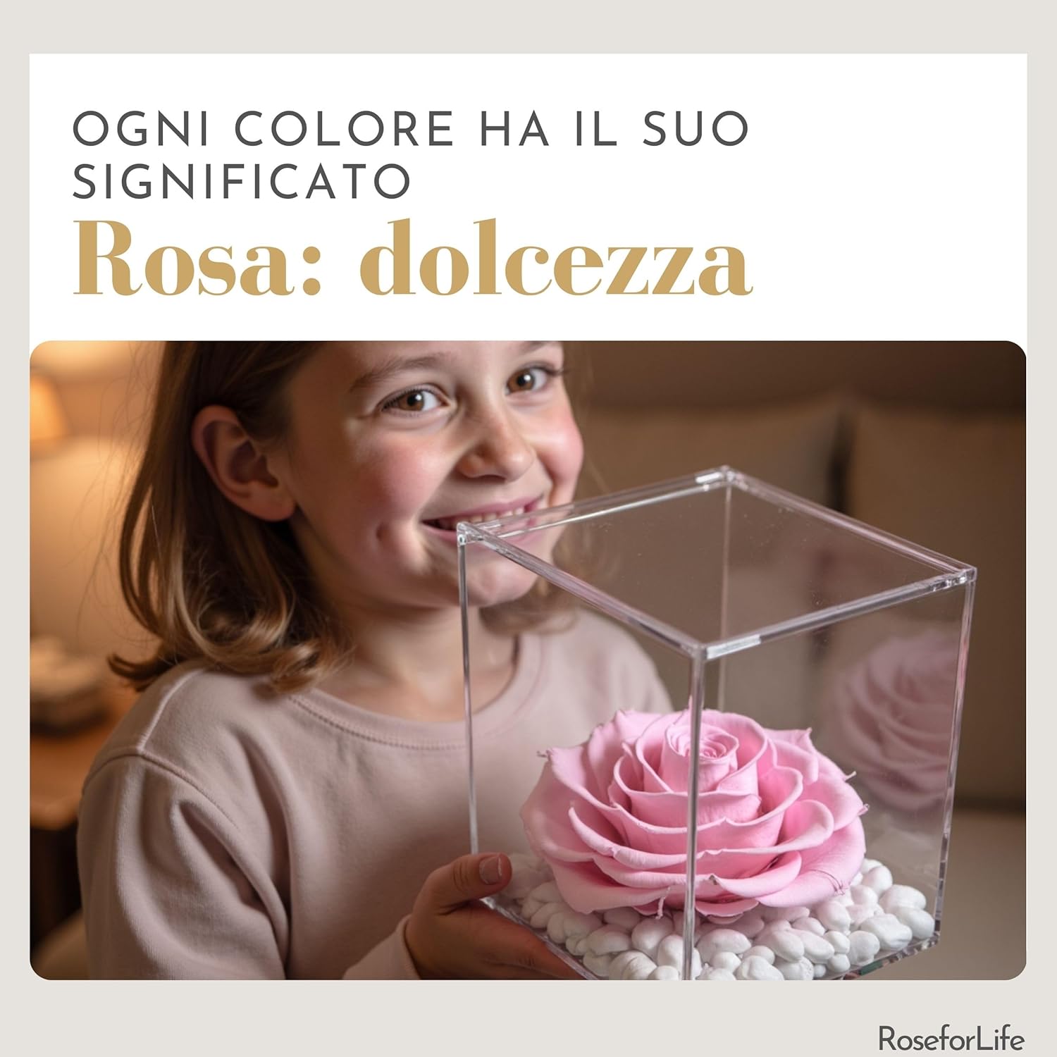 PREMIUM ROSE - Cubo Rosa Stabilizzata Rossa Profumata 8cm con Marmo di Carrara - Rosa Eterna Stabilizzata Rossa Idea per San Valentino, Natale Made in Italy - Rosso 1080