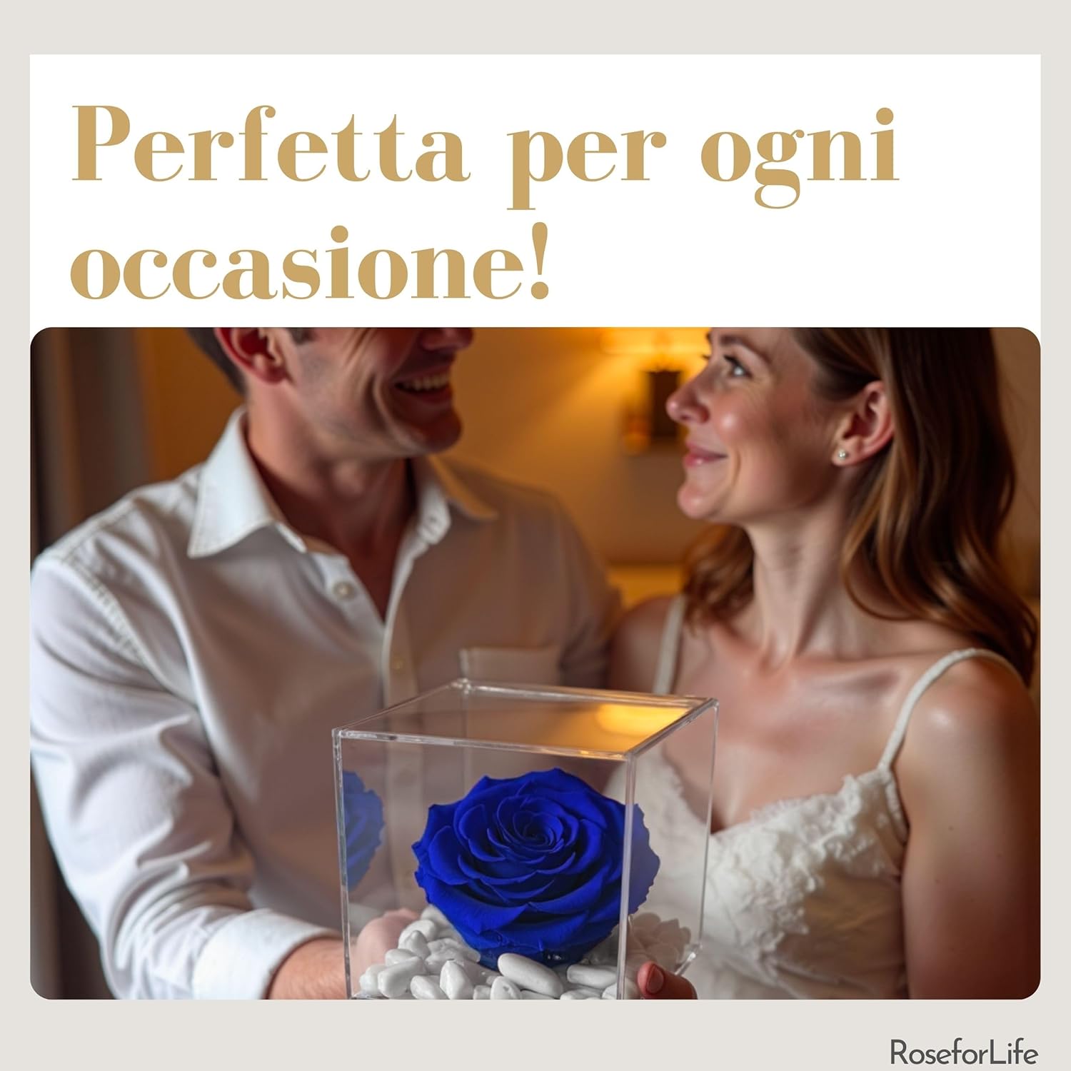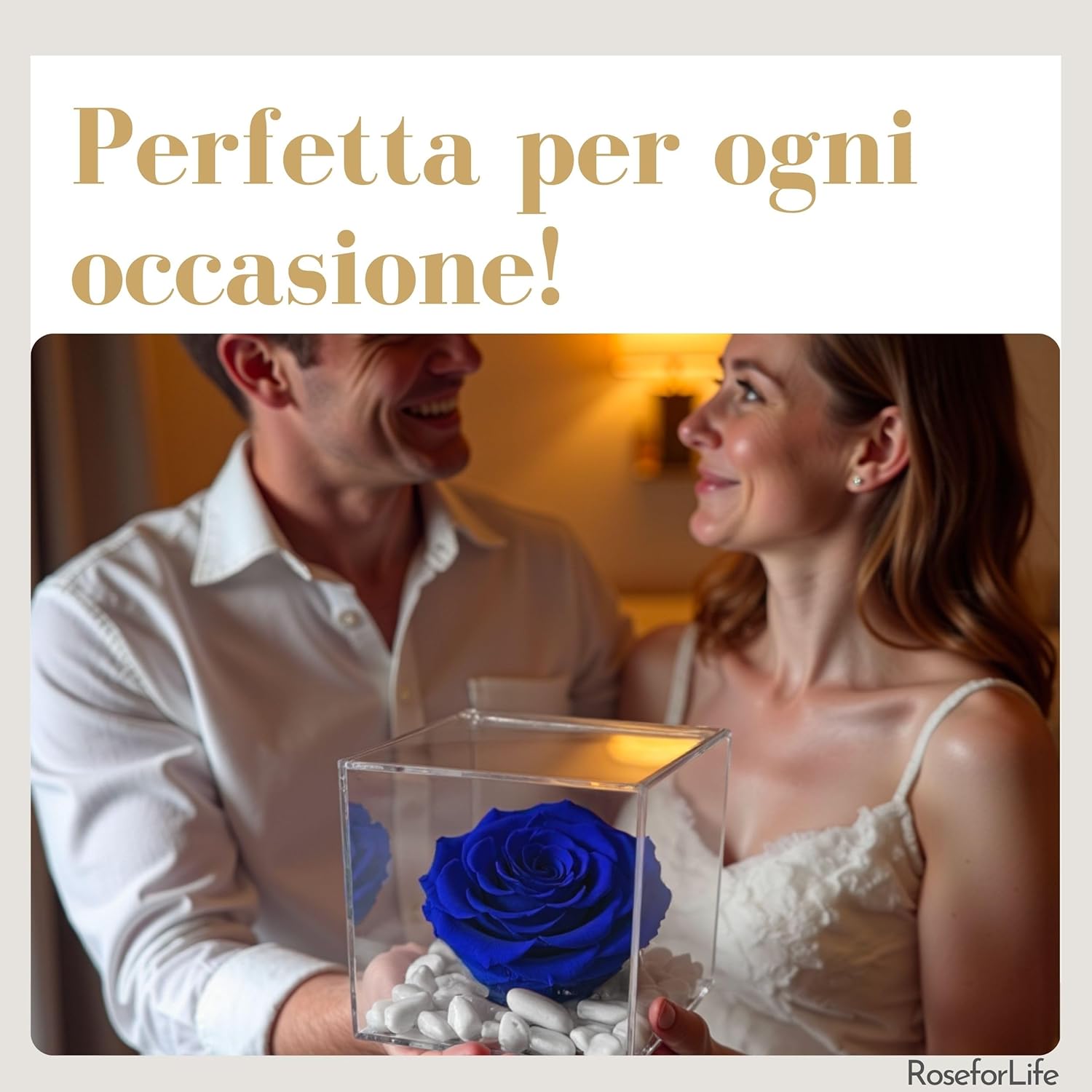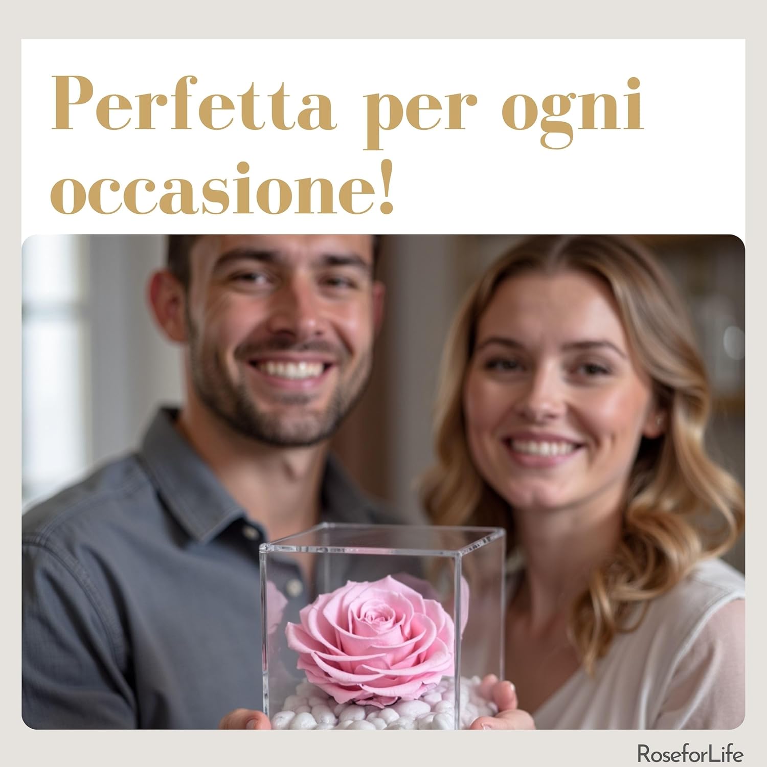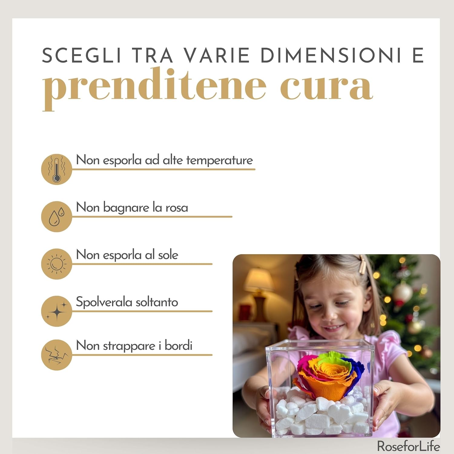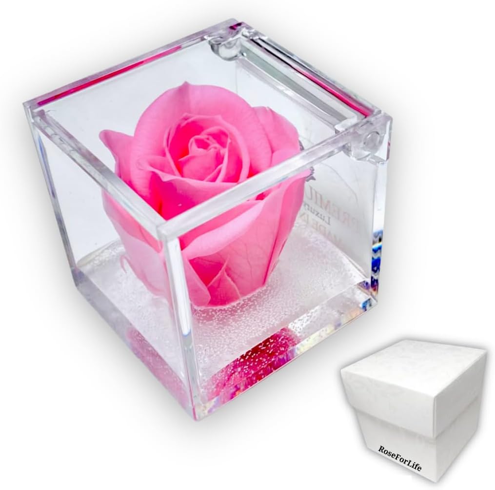 PREMIUM ROSE - Cubo Rosa Stabilizzata Rossa Profumata 8cm con Marmo di Carrara - Rosa Eterna Stabilizzata Rossa Idea per San Valentino, Natale Made in Italy - Rosso 1080