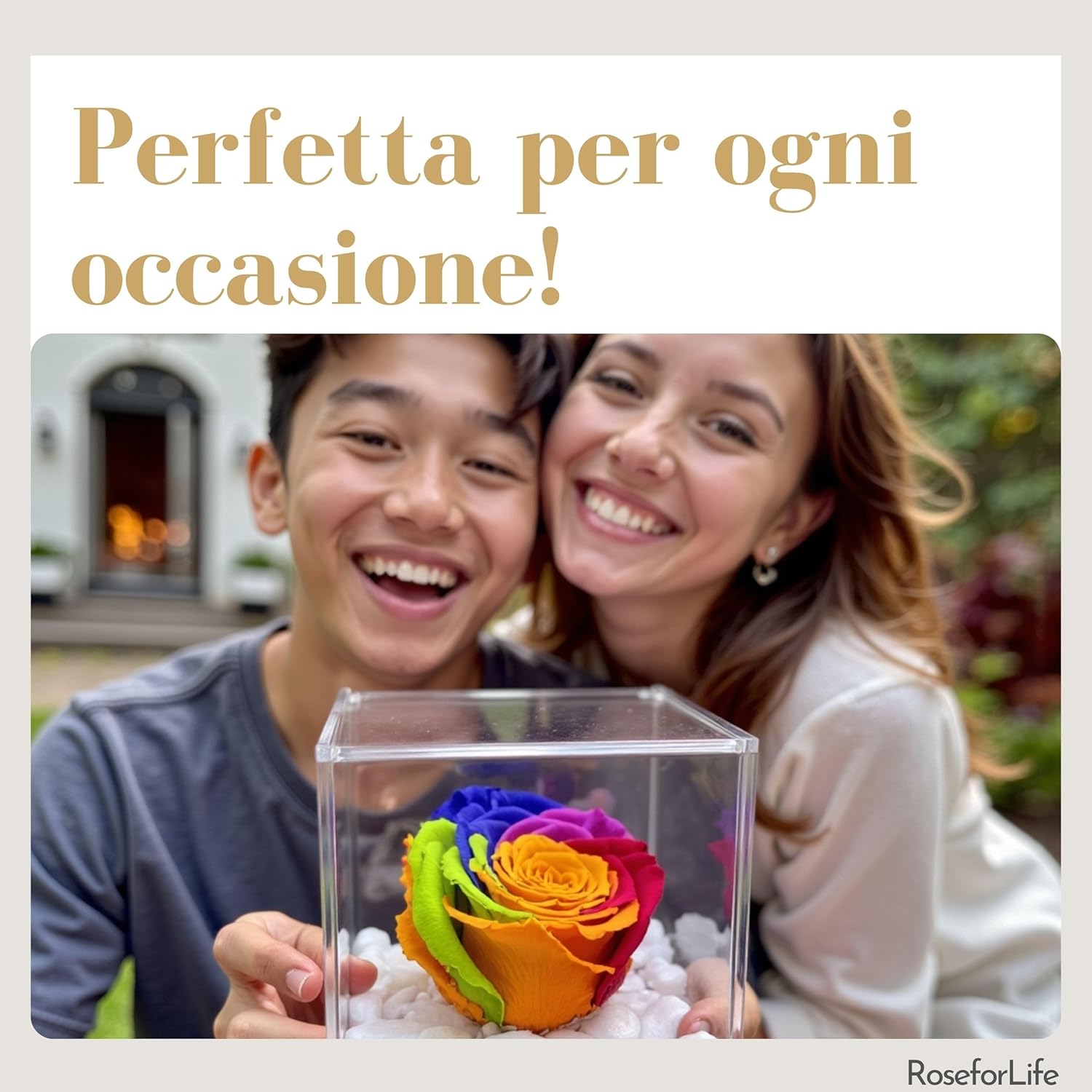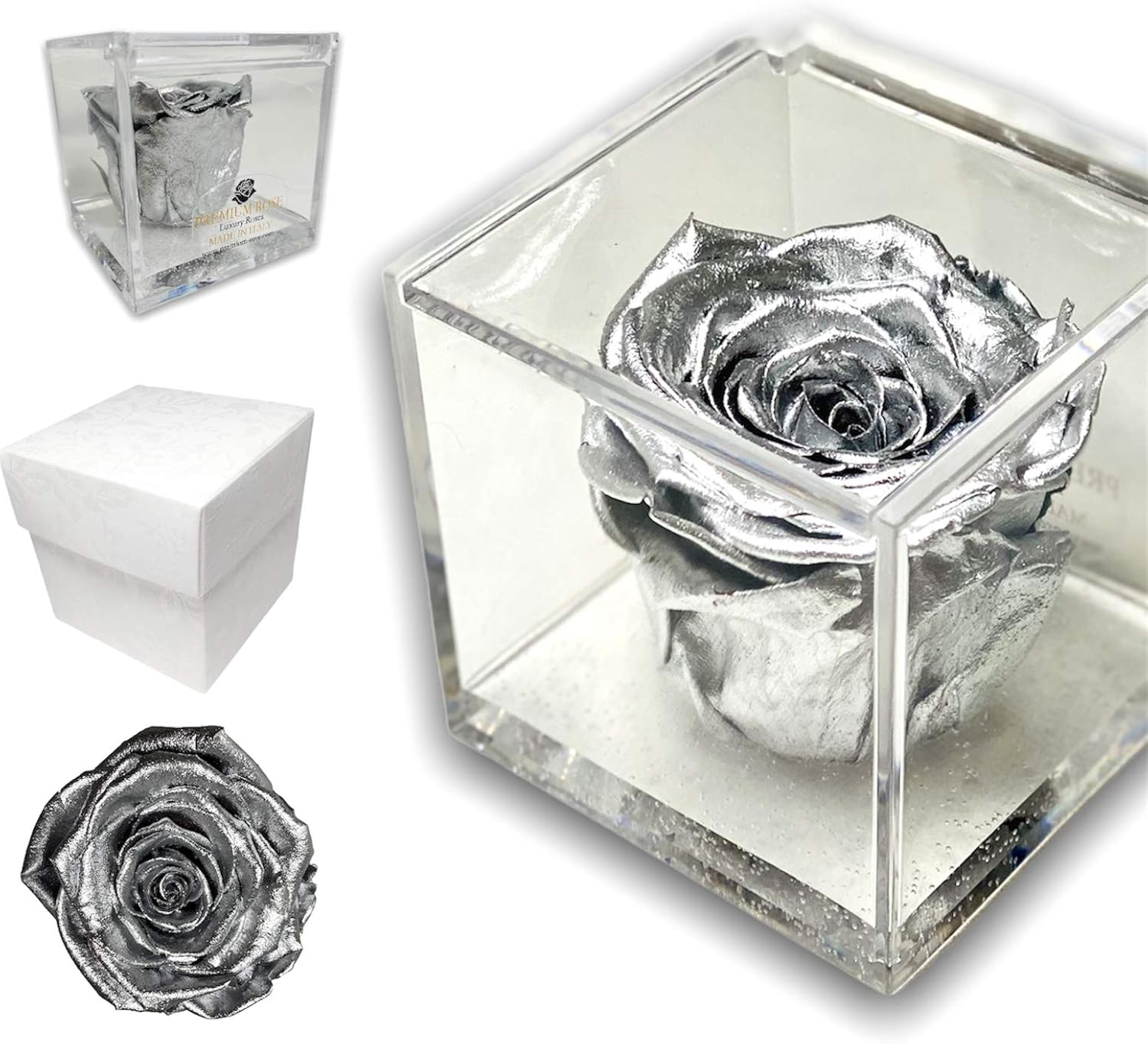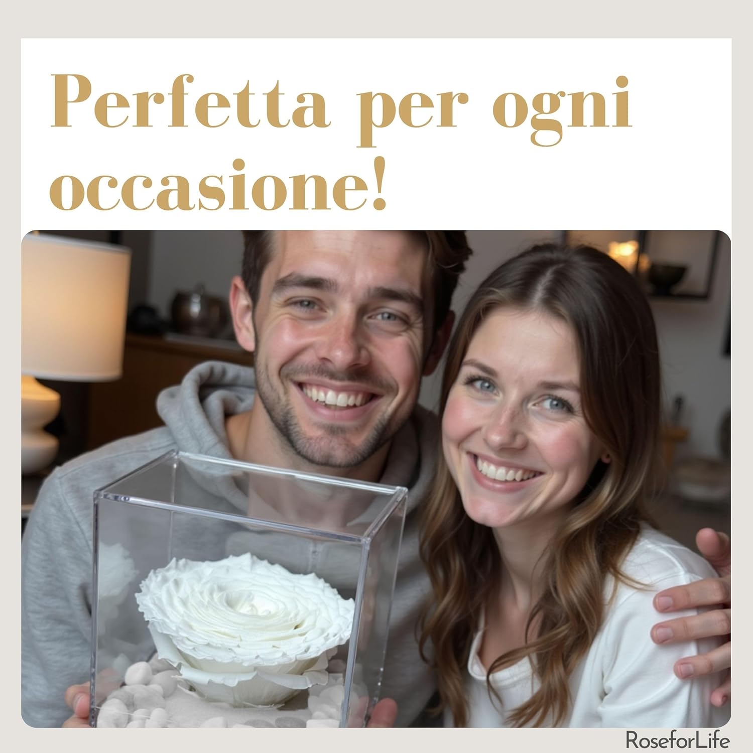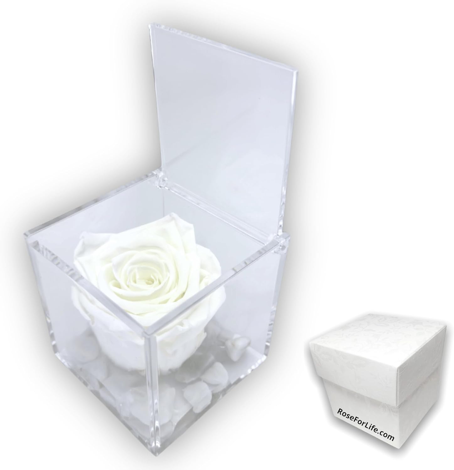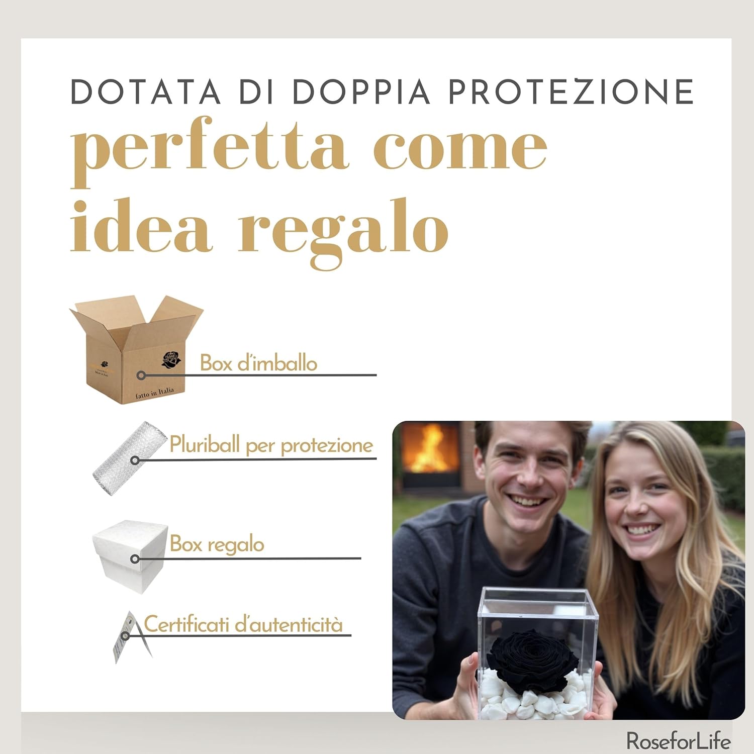 PREMIUM ROSE - Cubo Rosa Stabilizzata Rossa Profumata 8cm con Marmo di Carrara - Rosa Eterna Stabilizzata Rossa Idea per San Valentino, Natale Made in Italy - Rosso 1080