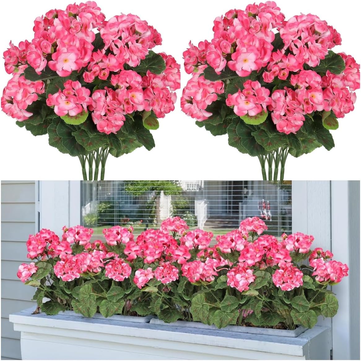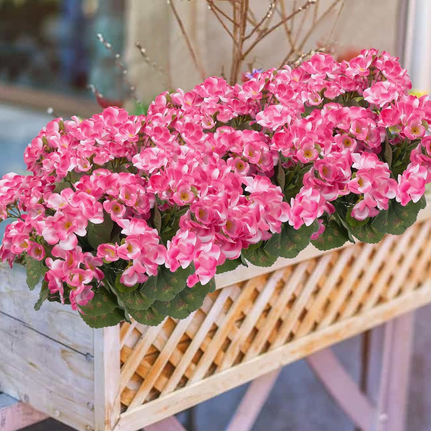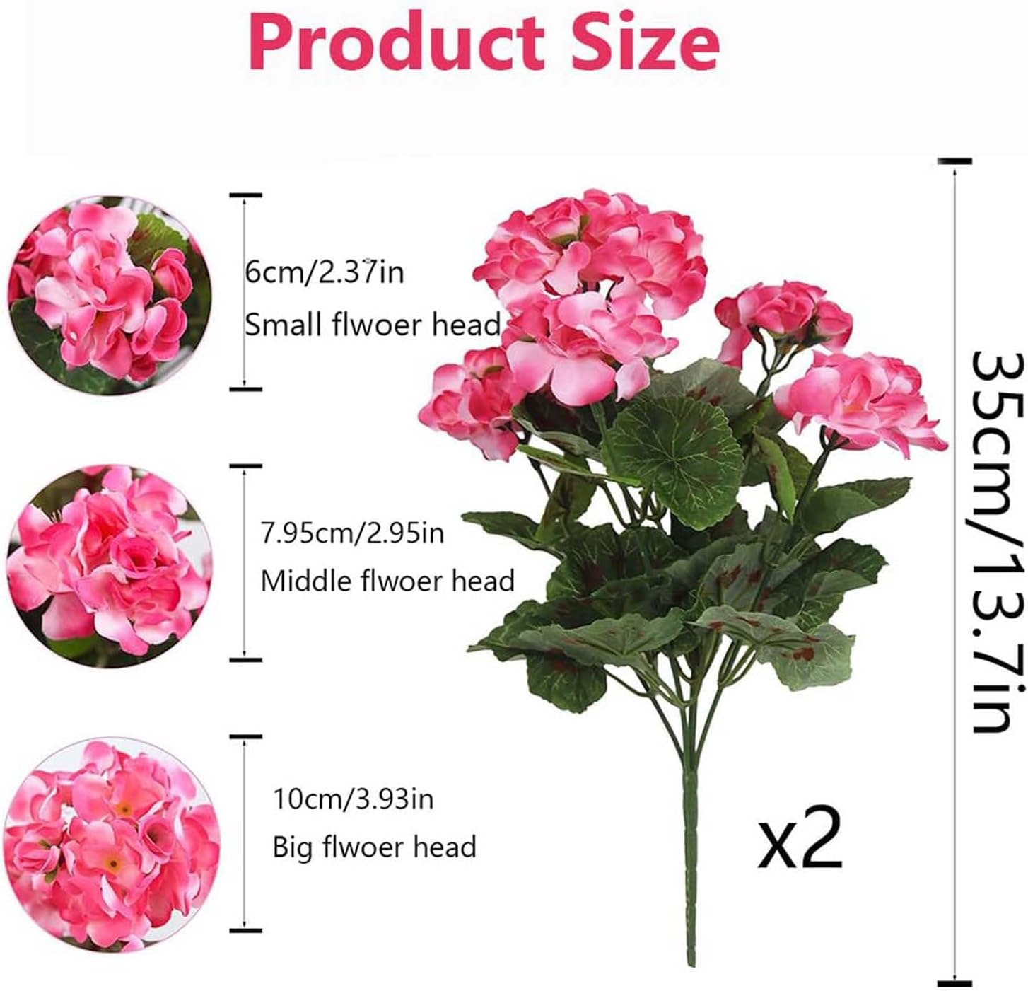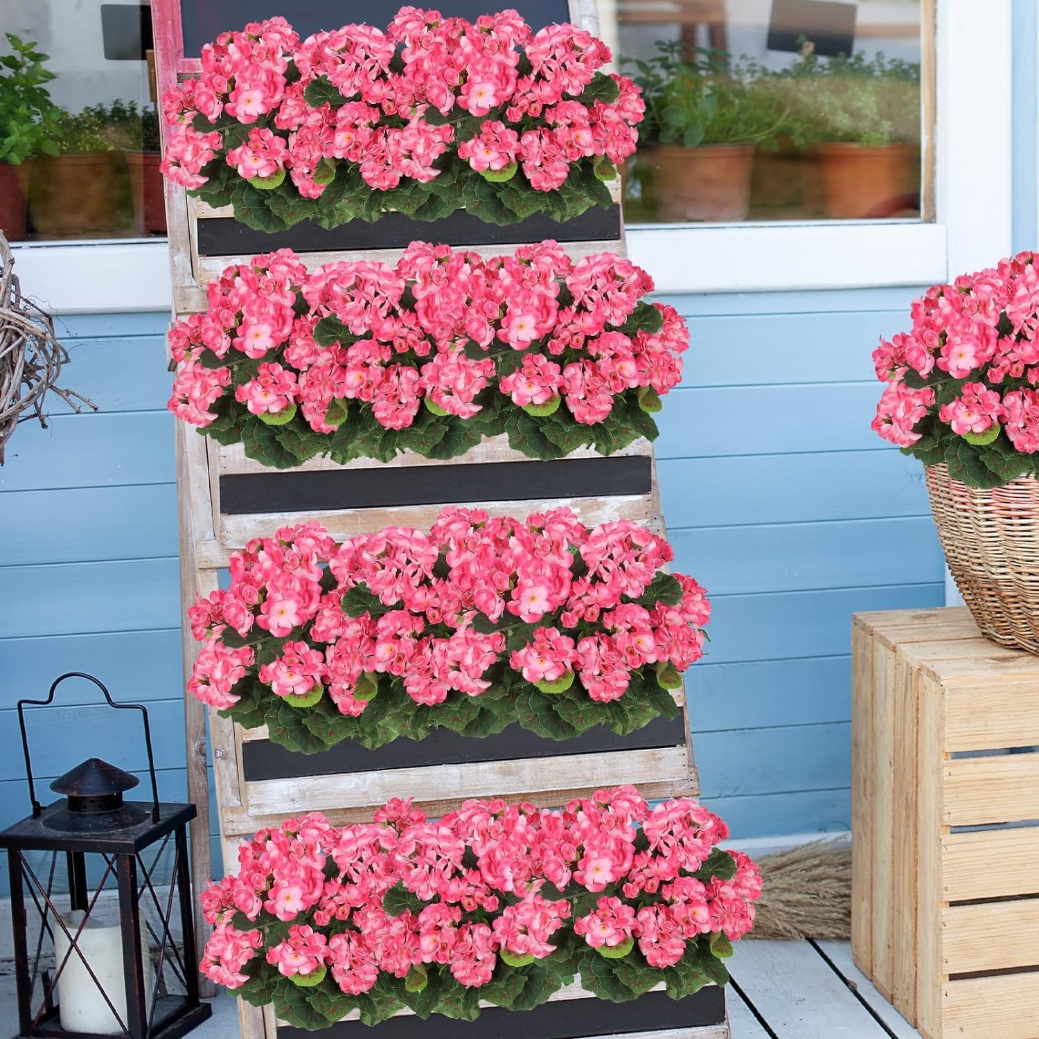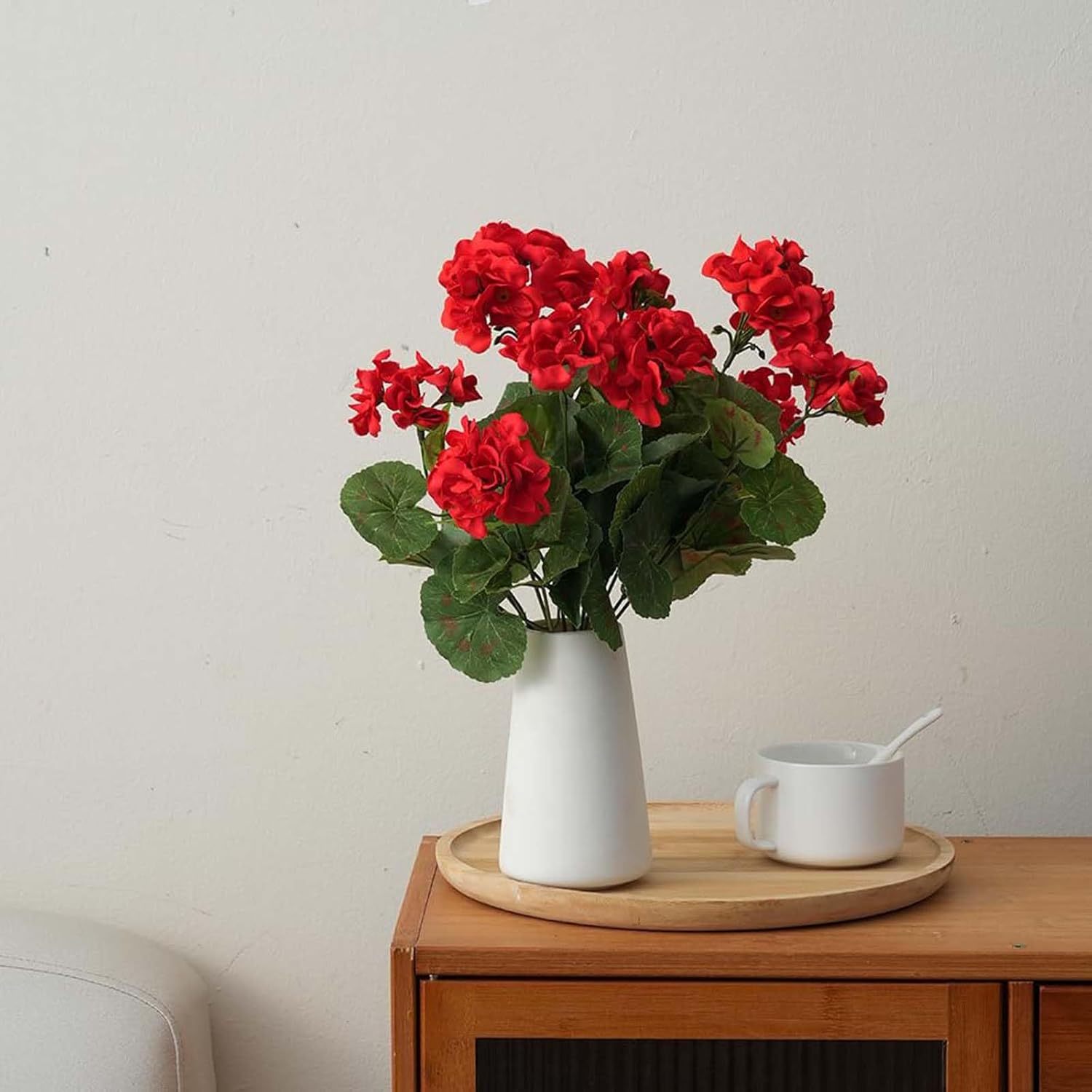 Laelfe 4 Pcs Gerani Rossi Finti da Esterno, Fiori Finti Artificiali Geranio per Esterno Balcone Patio Cimitero Sospensione di Fioriere Decorazione per Tavolo (Rosso-4 Pcs)