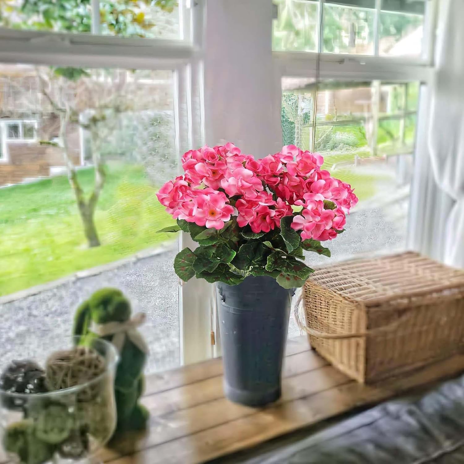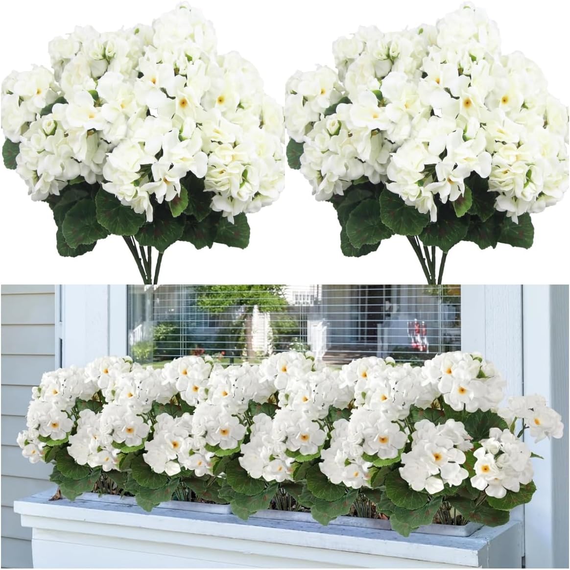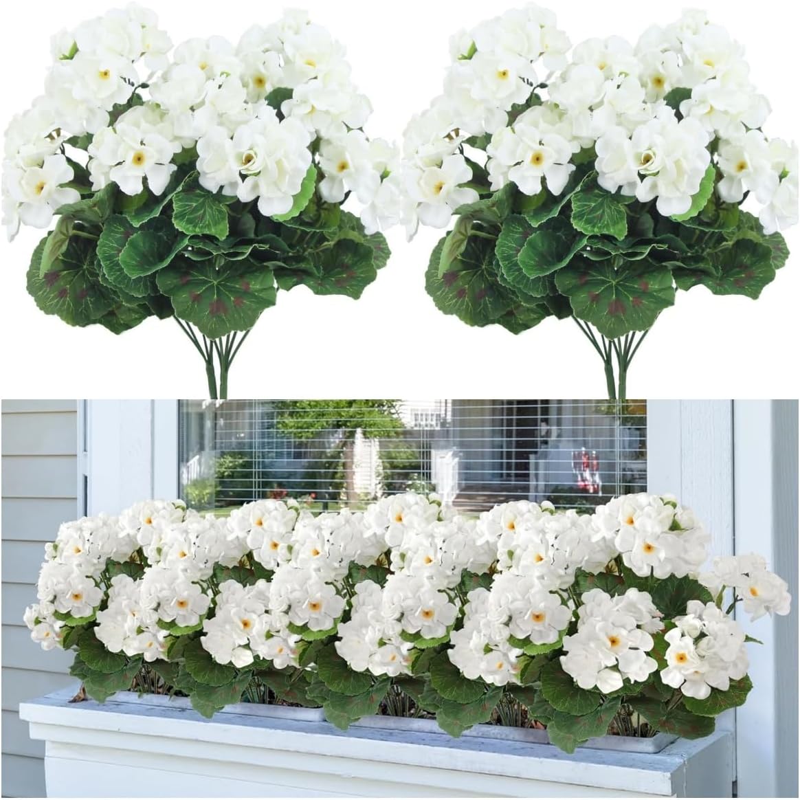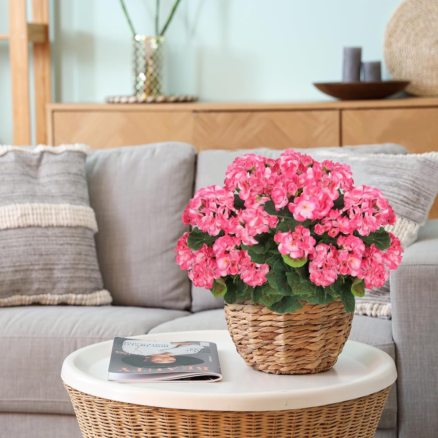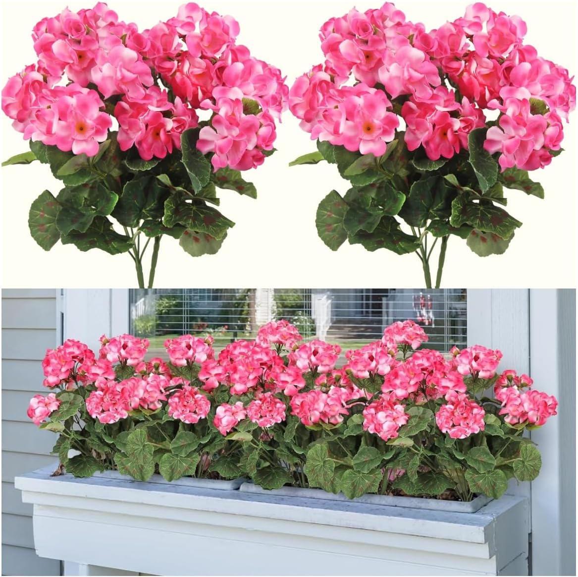 Laelfe 4 Pcs Gerani Rossi Finti da Esterno, Fiori Finti Artificiali Geranio per Esterno Balcone Patio Cimitero Sospensione di Fioriere Decorazione per Tavolo (Rosso-4 Pcs)