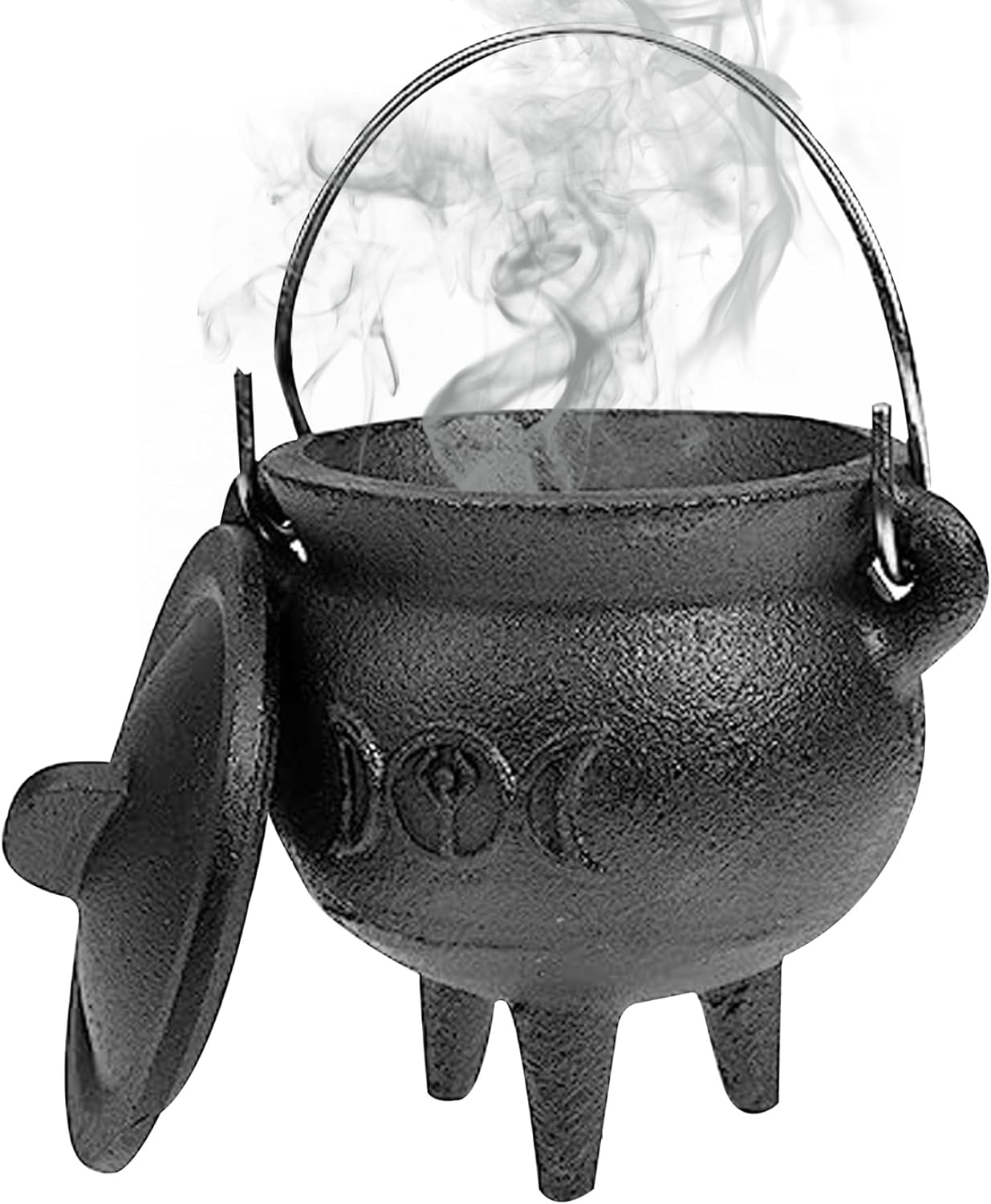 Jorzer Ornamenti di Halloween Stretche Cauldron Cast Iron Cauldron con Coperchio e maneggevano Halloween 3.94x2.95x2.95 Pollice Cauldone Candela Decorativa incenso Burning Witchcraft Pot,
