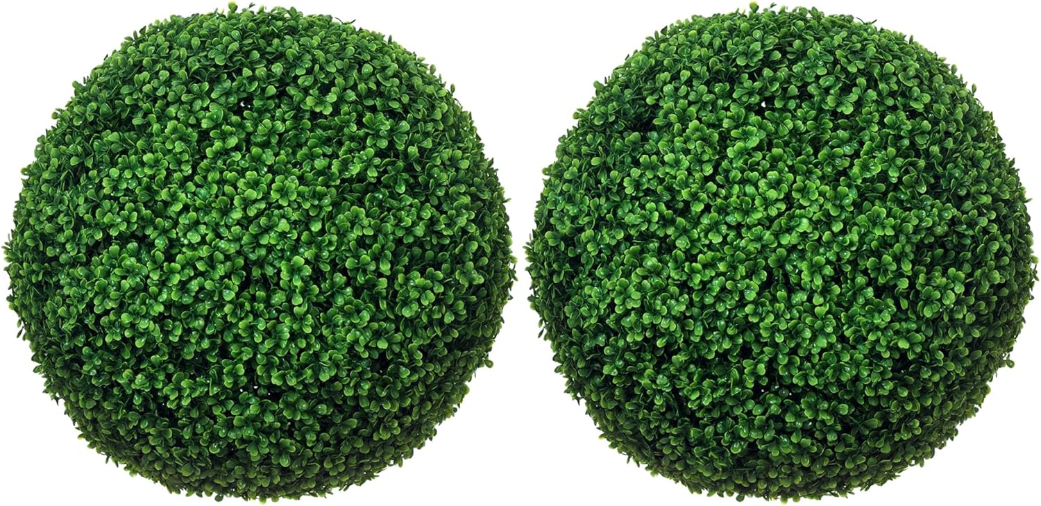 HOMCOM Set di 2 Piante Finte Sfera di Bosso ?40cm, Piante Artificiali Decorative da Interno ed Esterno, Verde