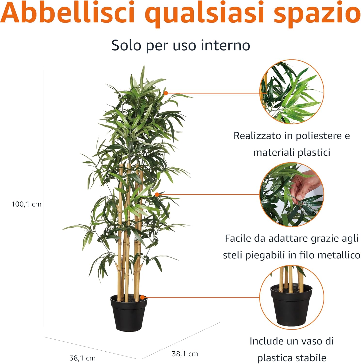 Amazon Basics Pianta di Bambou artificiale con vaso in plastica, Bamboo, 100 cm