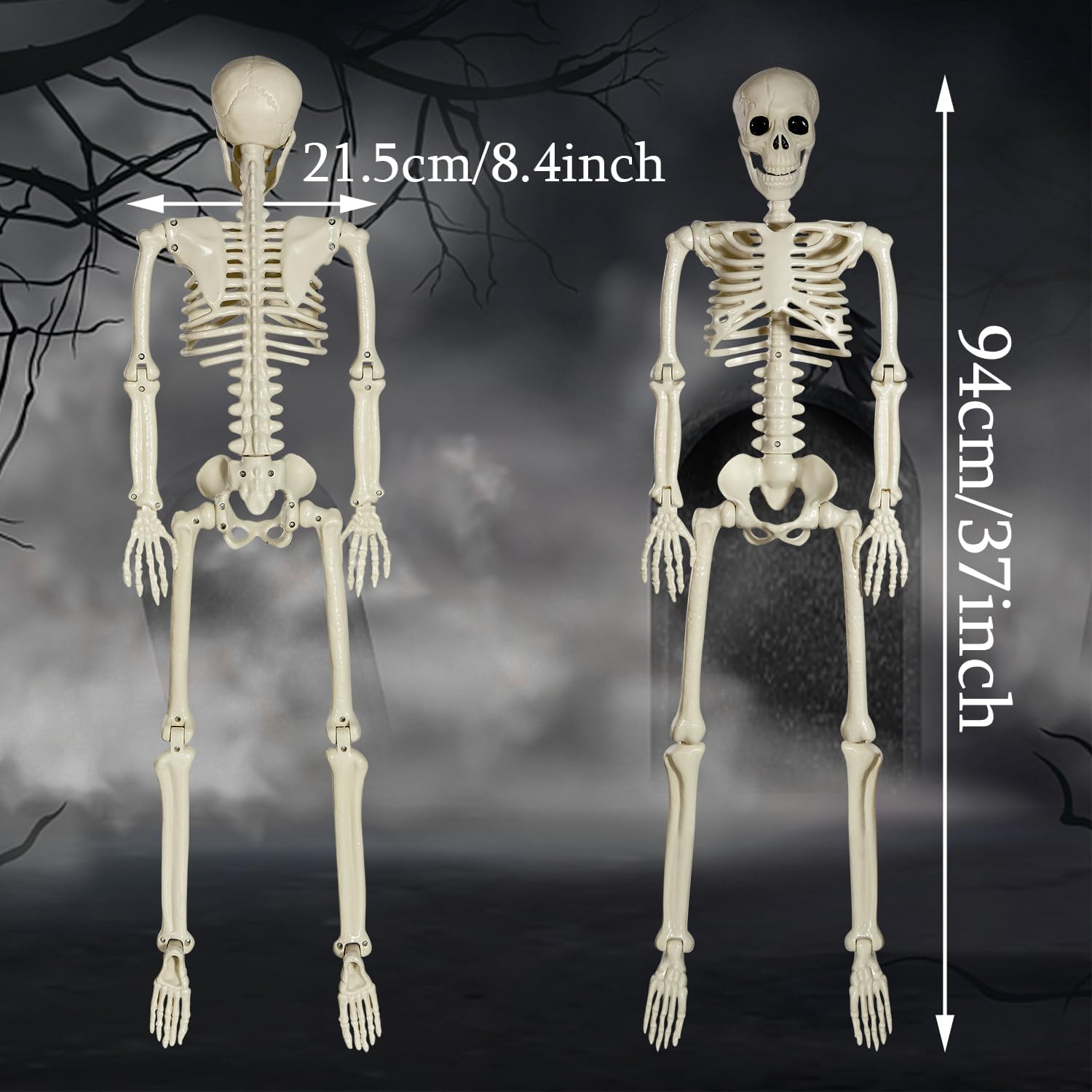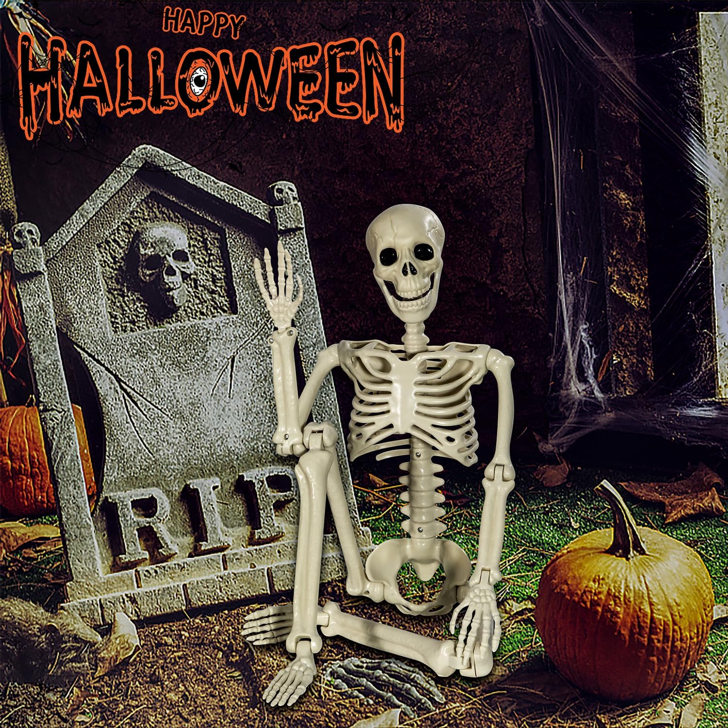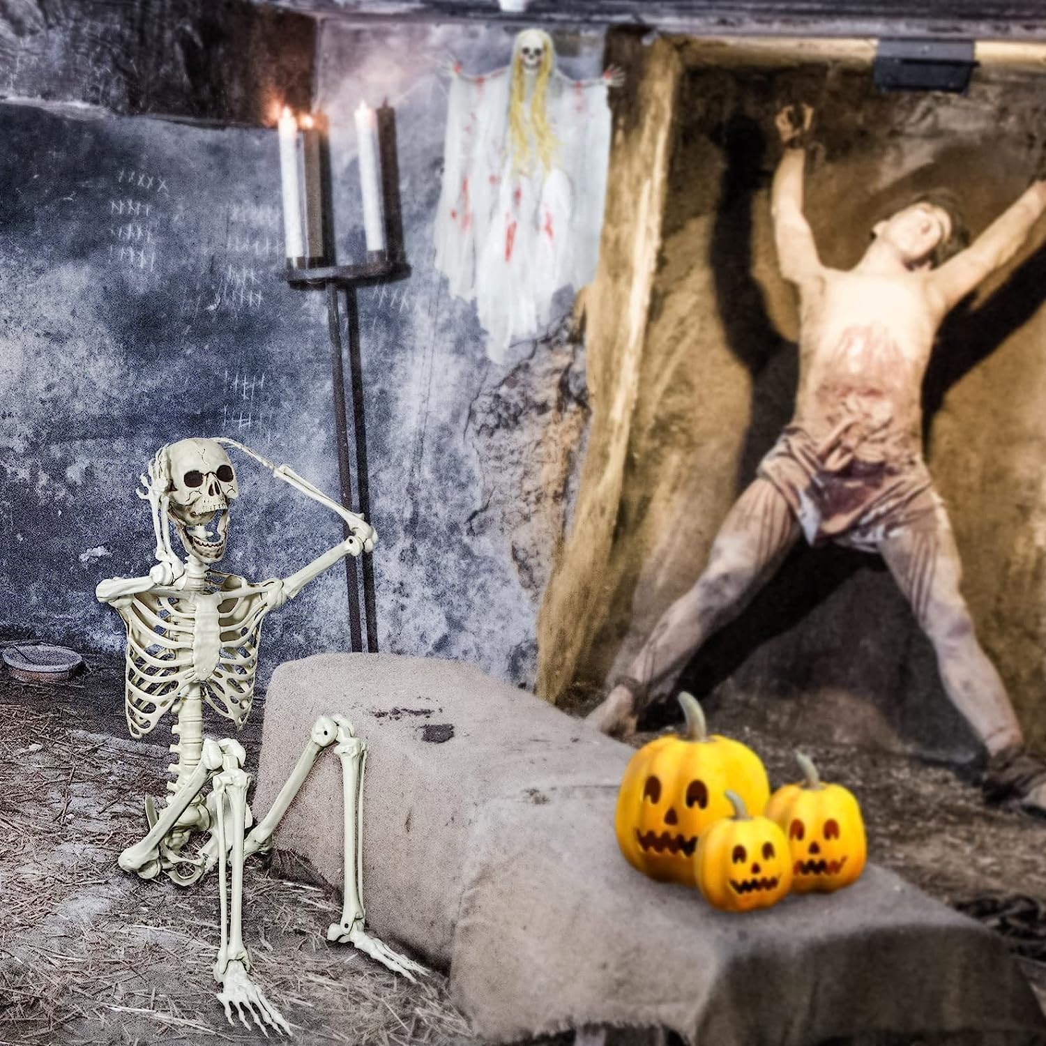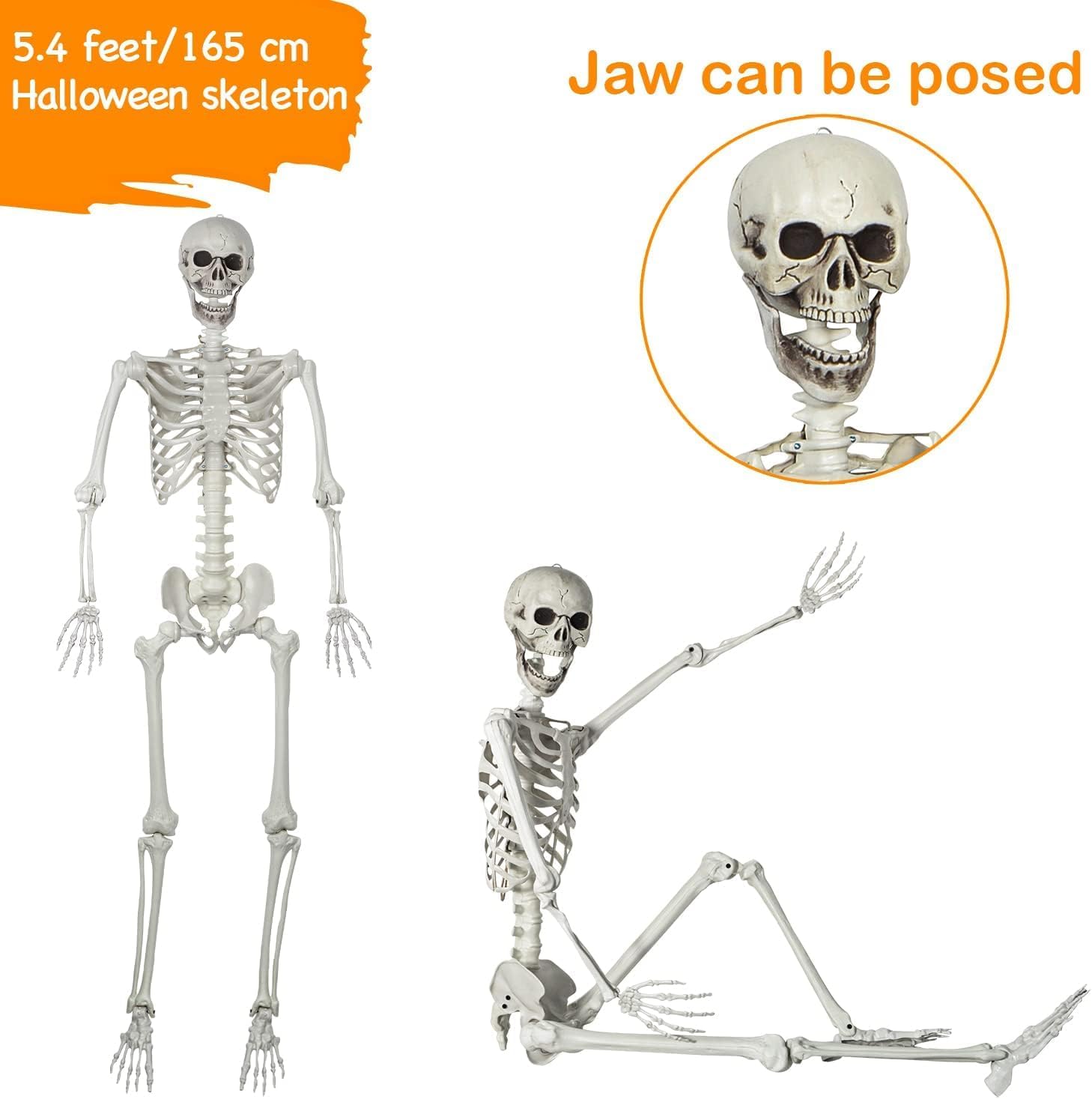 AOFOX OFOX Halloween a grandezza Naturale Scheletro Intero Corpo Umano Ossa con articolazioni mobili per Il cimitero Spaventoso della casa infestata del cimitero (90cm-White)