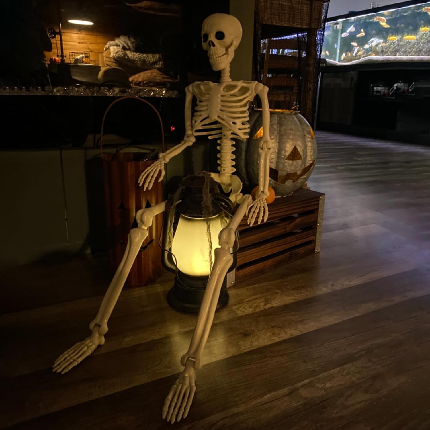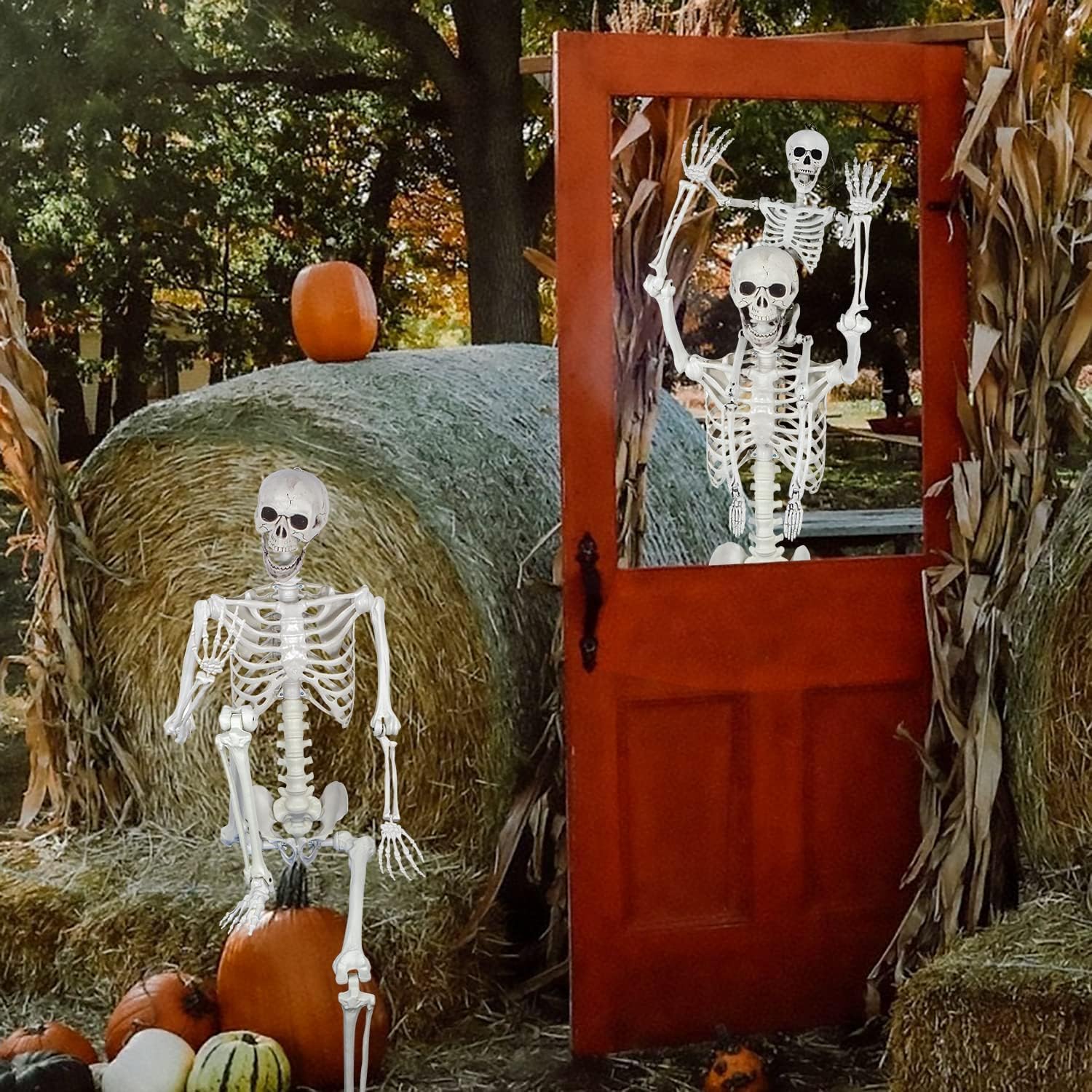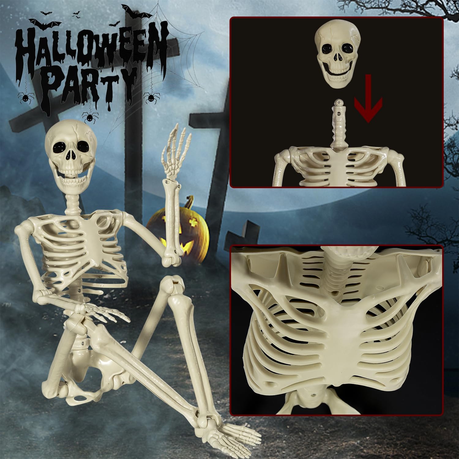 AOFOX OFOX Halloween a grandezza Naturale Scheletro Intero Corpo Umano Ossa con articolazioni mobili per Il cimitero Spaventoso della casa infestata del cimitero (90cm-White)
