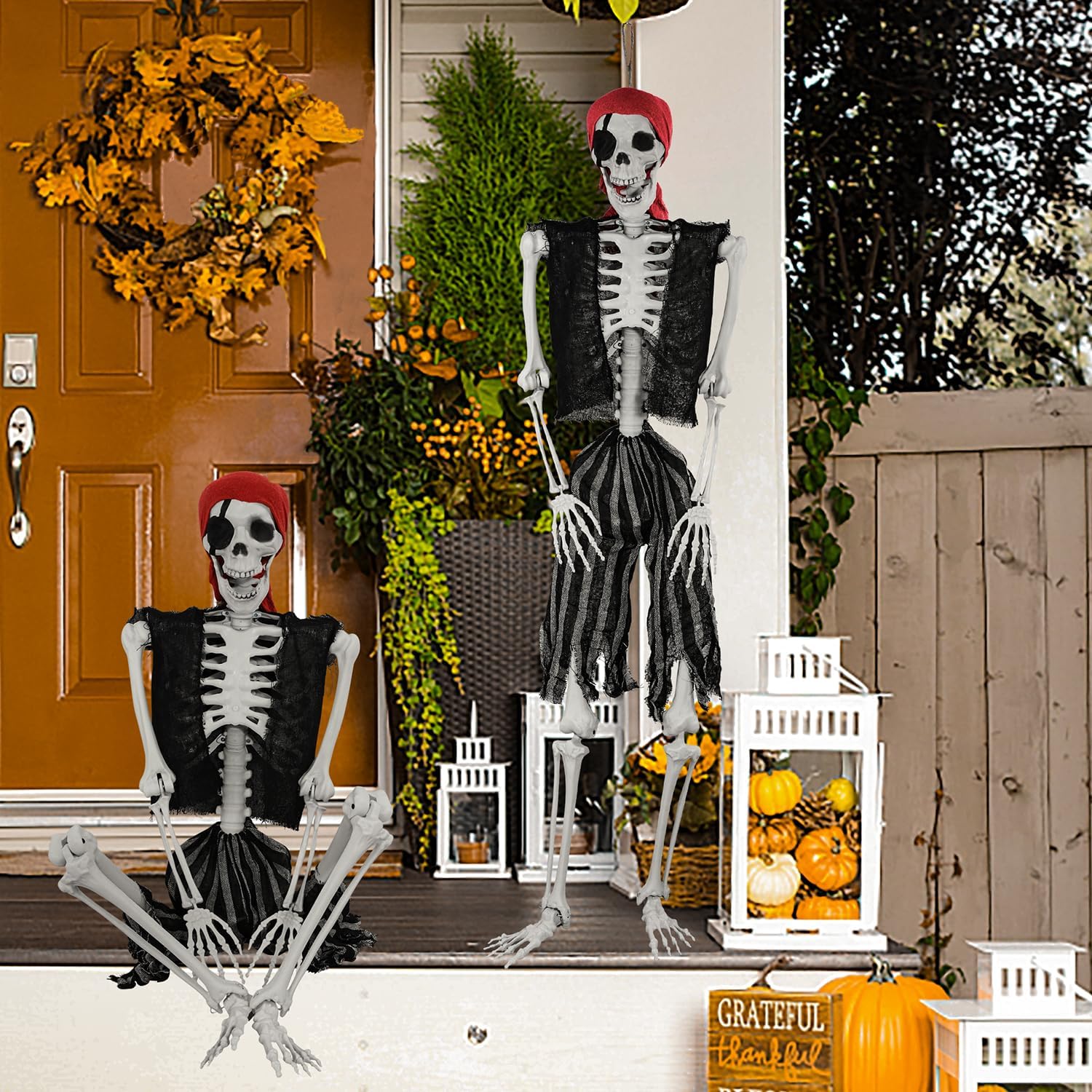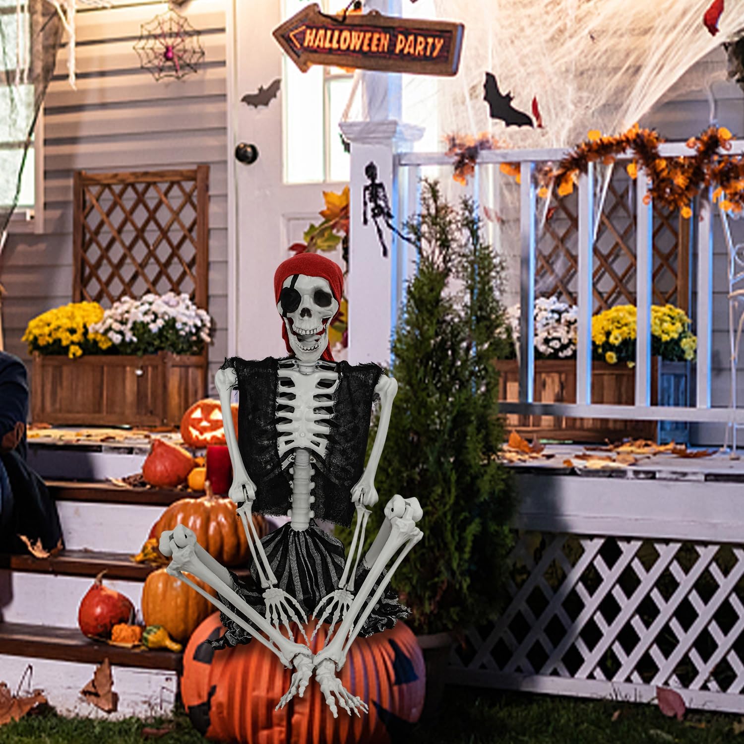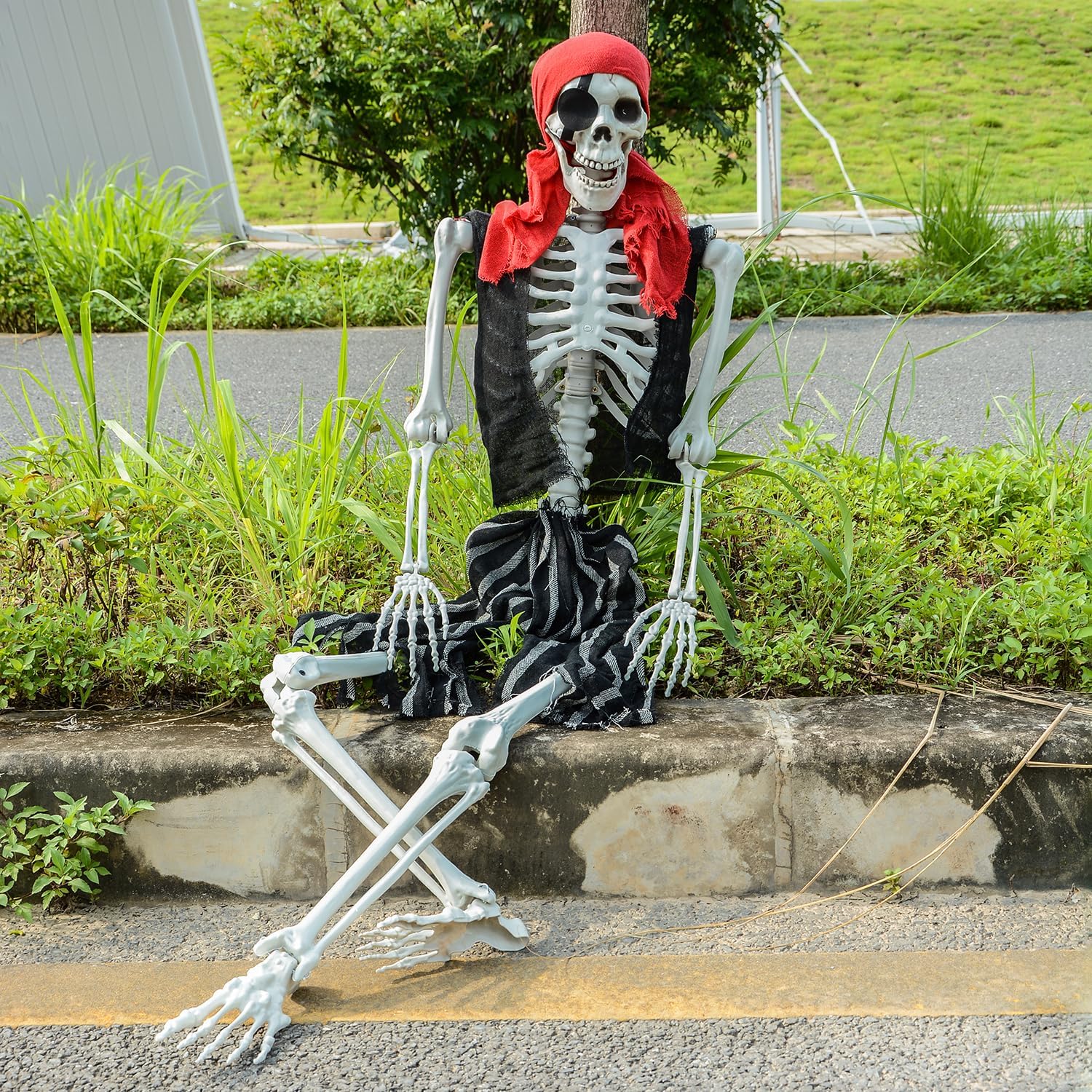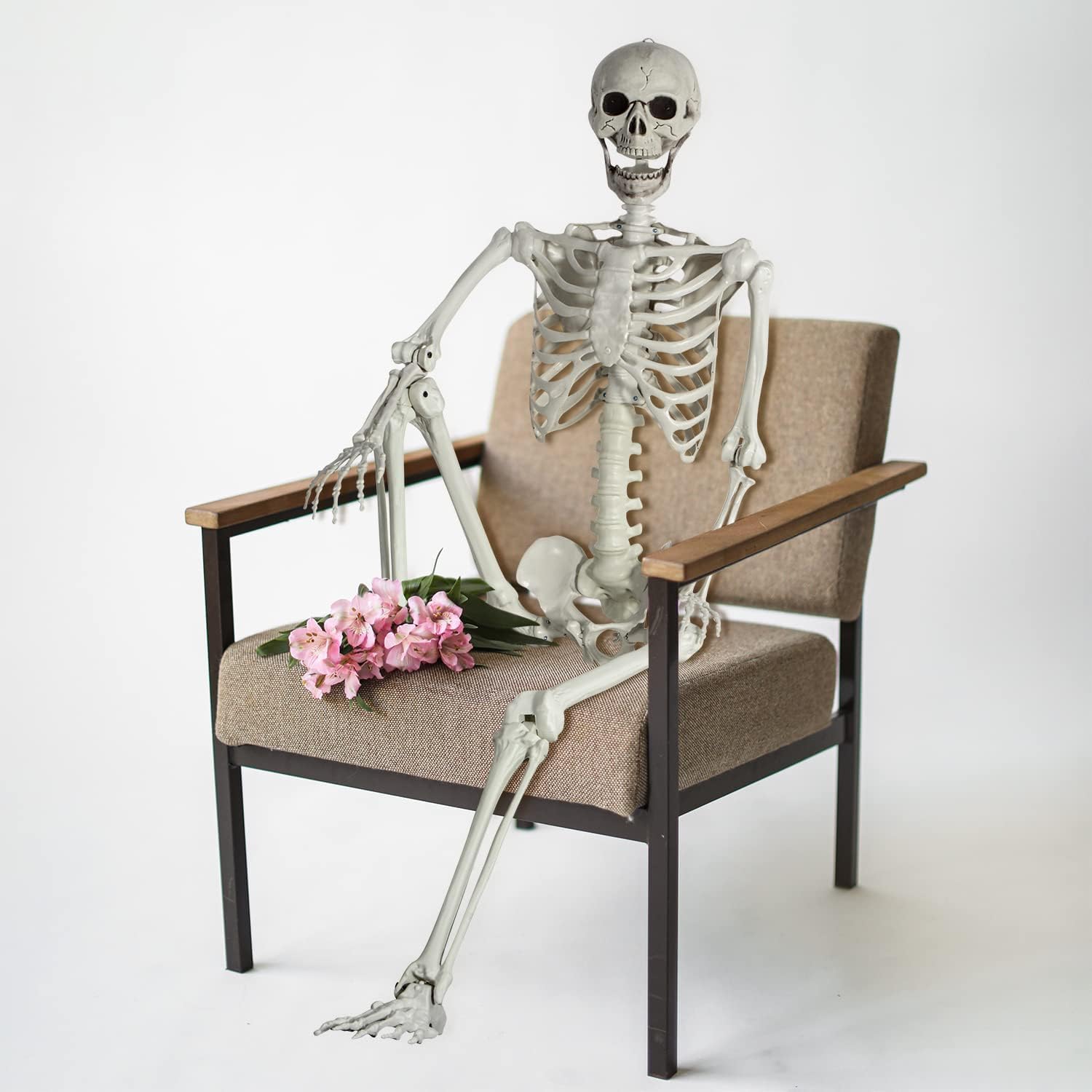 AOFOX OFOX Halloween a grandezza Naturale Scheletro Intero Corpo Umano Ossa con articolazioni mobili per Il cimitero Spaventoso della casa infestata del cimitero (90cm-White)