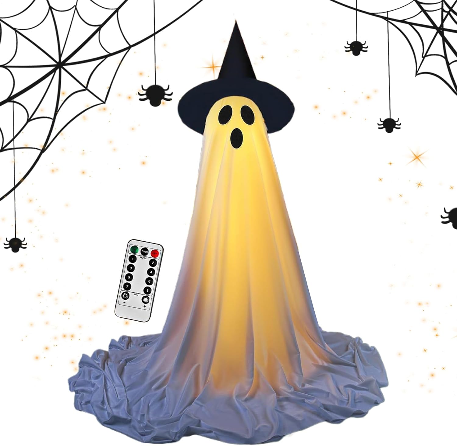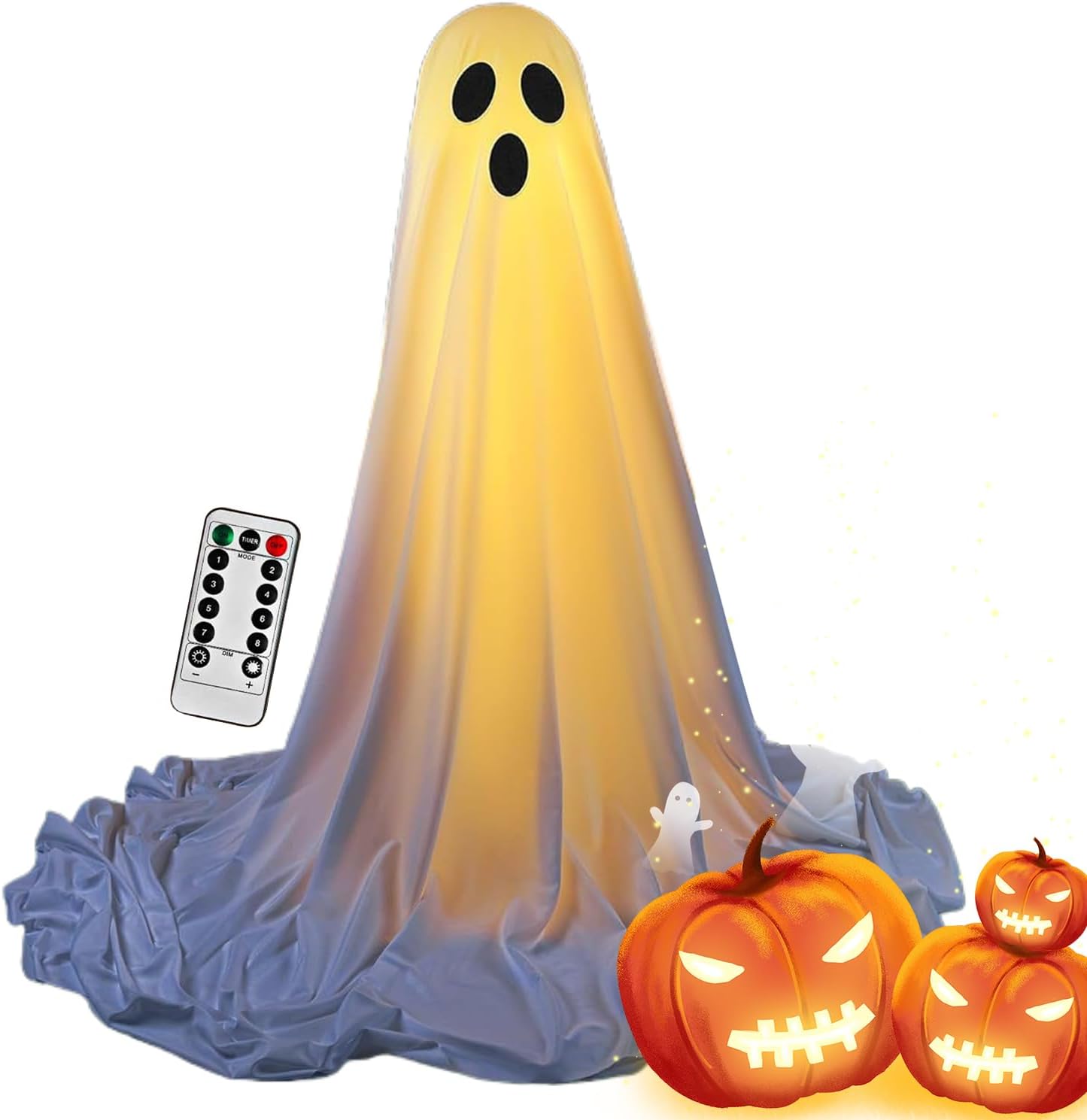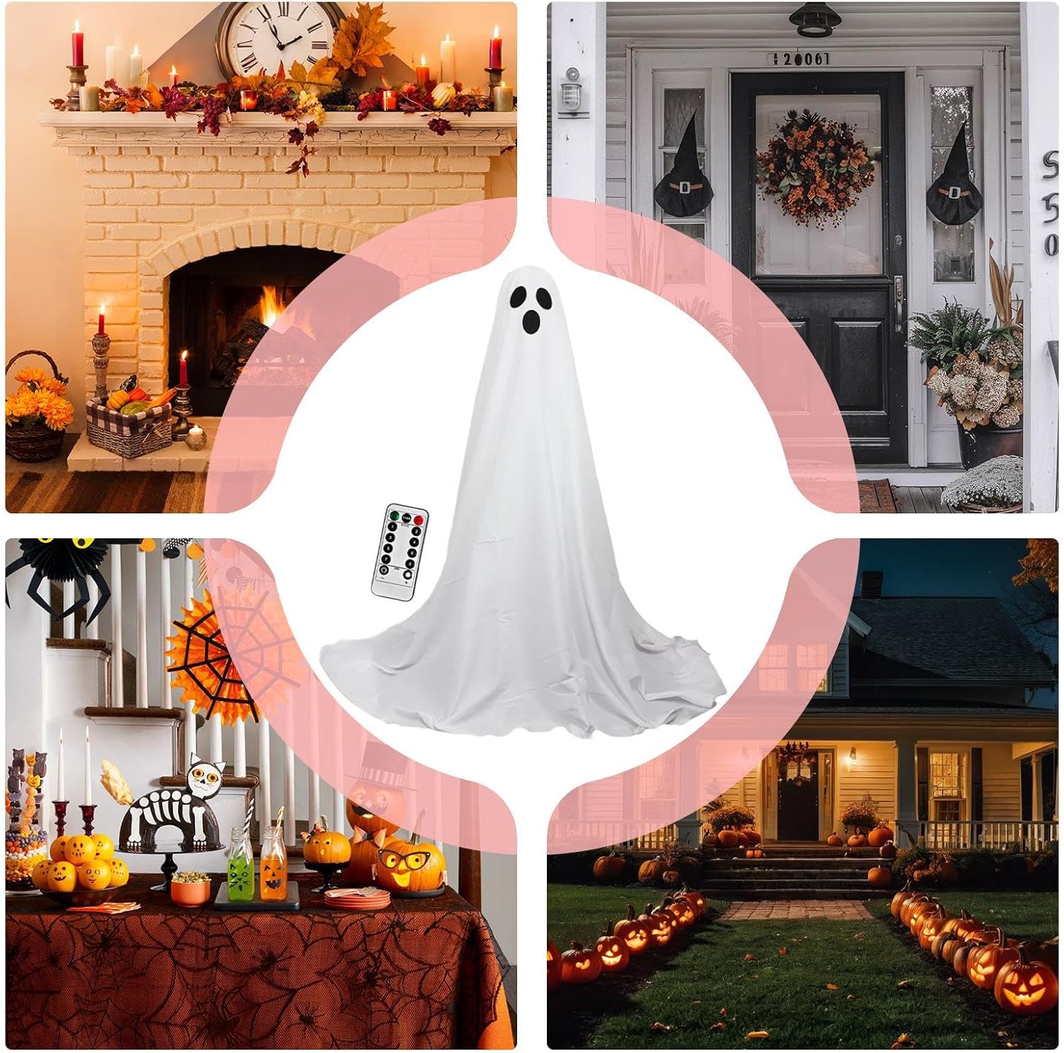 Grandi fantasmi di stoffa bianca illuminatii | Decorazioni fantasma scintillanti con luci a LED,grandi decorazioni di Halloween per esterni con telecomando, per casa, giardino, cortile