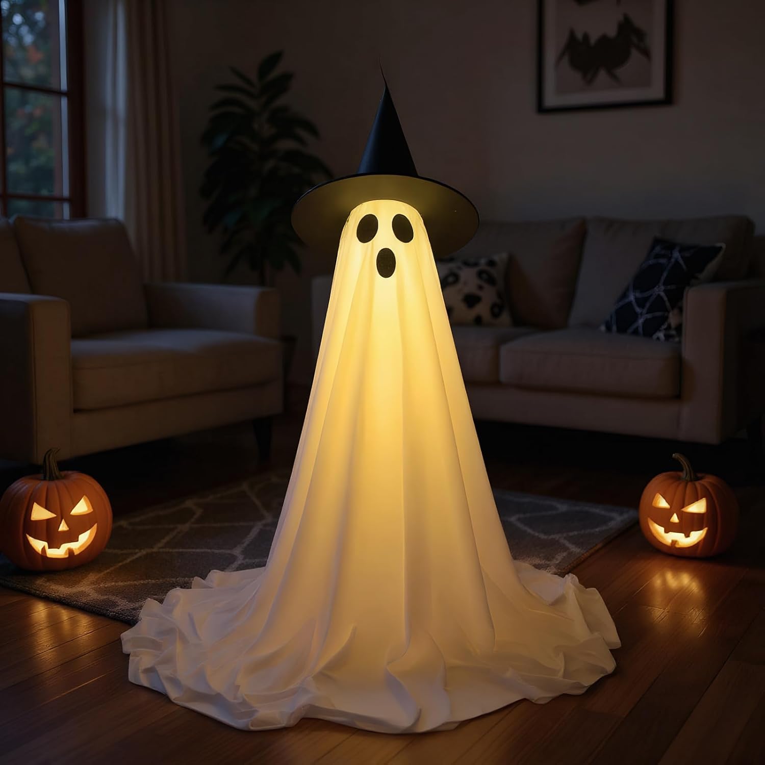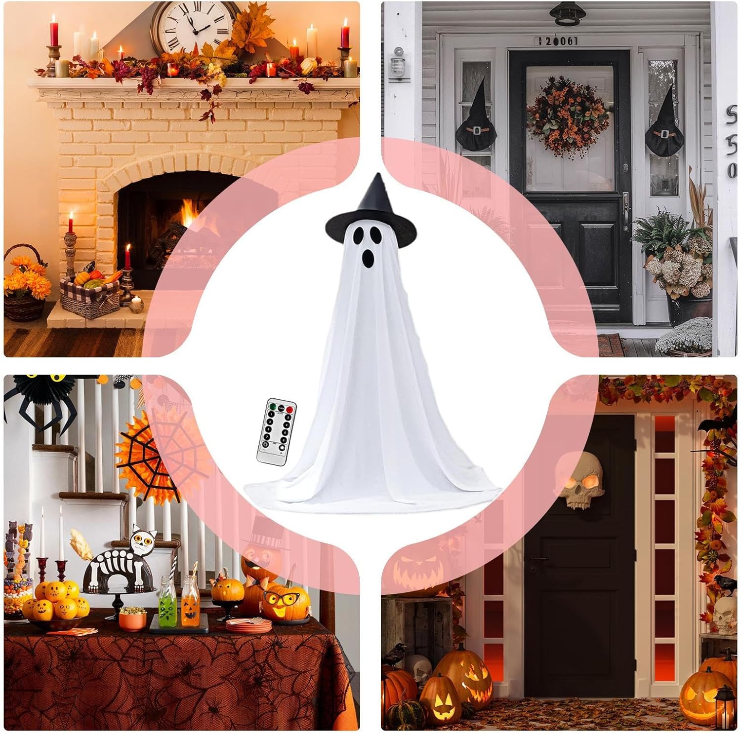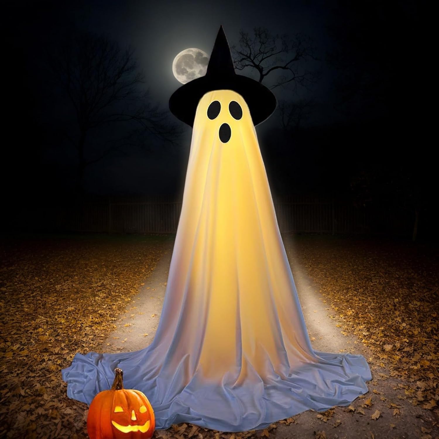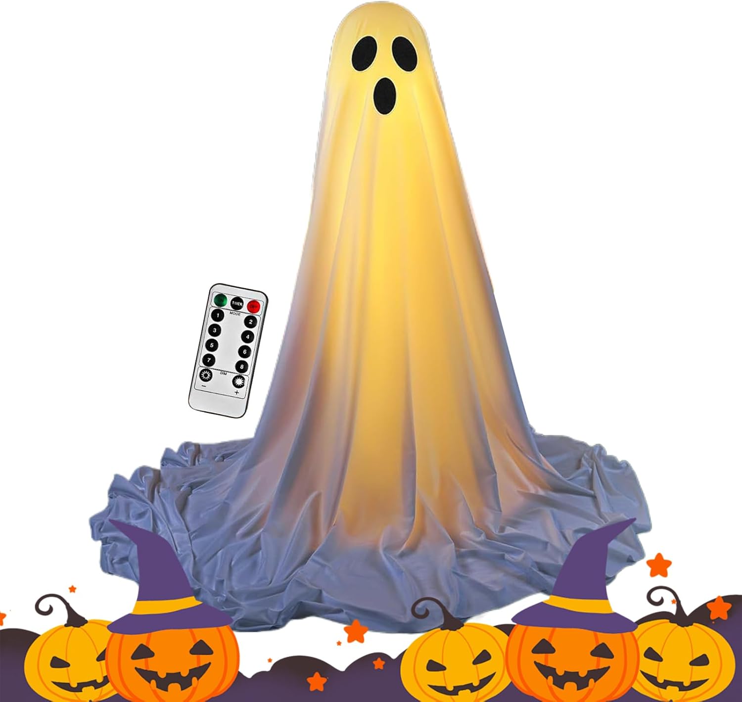 Grandi fantasmi di stoffa bianca illuminatii | Decorazioni fantasma scintillanti con luci a LED,grandi decorazioni di Halloween per esterni con telecomando, per casa, giardino, cortile