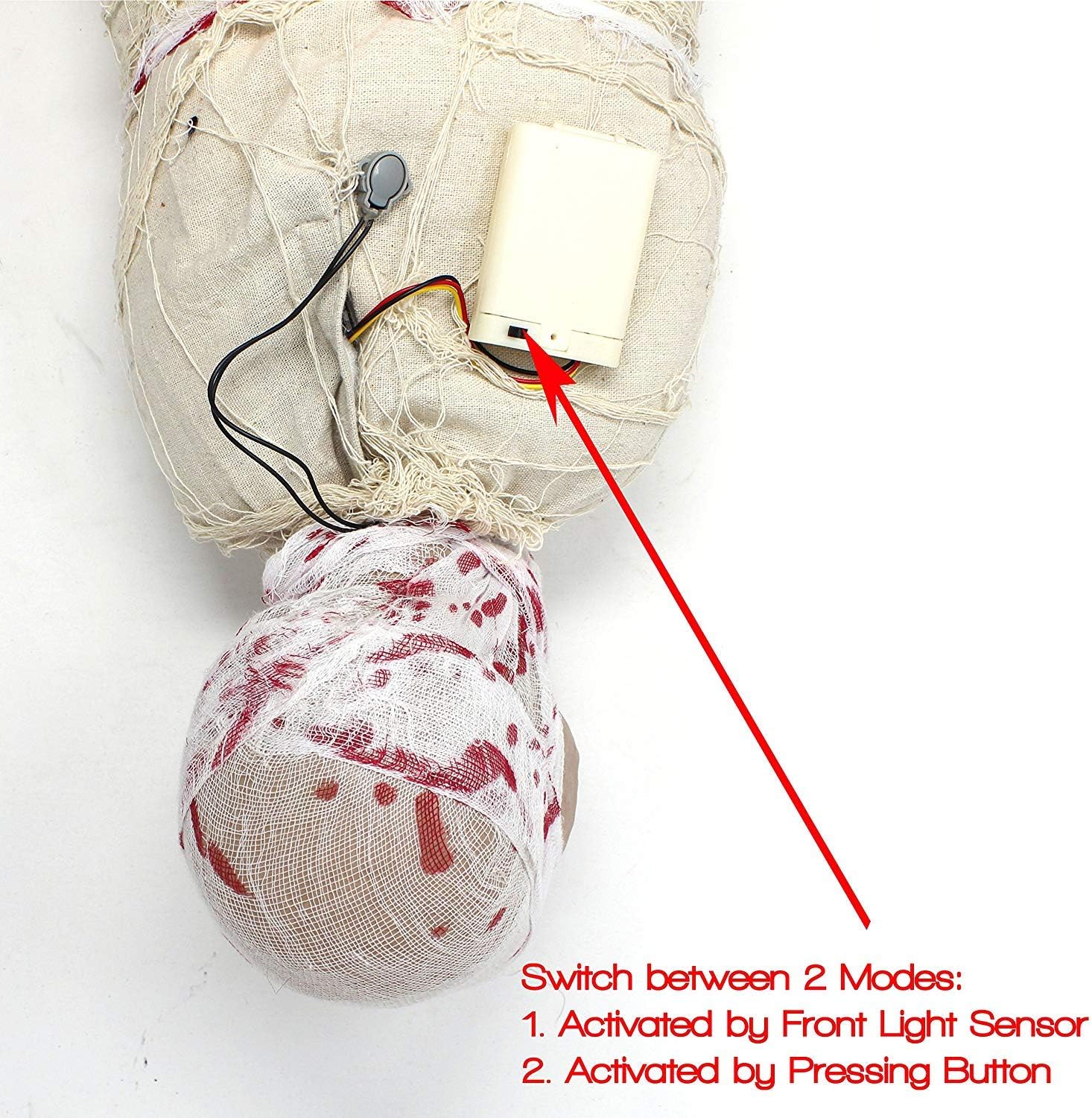 JOYIN Cadavere da appendere animato di Halloween da 88,9 cm, con occhi luminosi a LED ed effetto sonoro, per decorazioni interne ed esterne