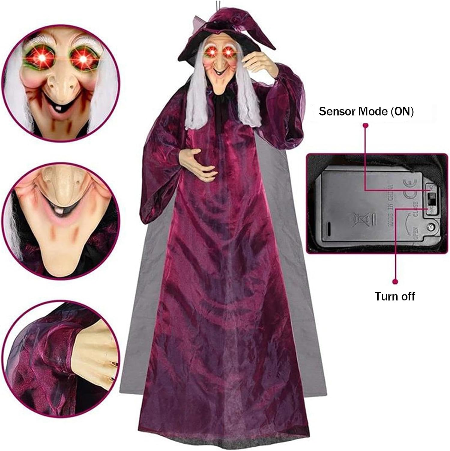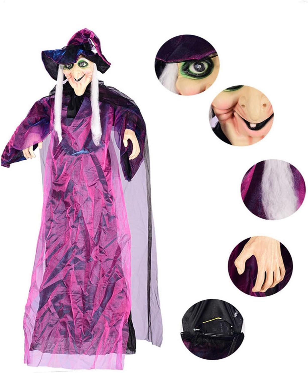 Perfeclan Strega Animata sospesa Decorazione di Halloween Suoni spettrali 70 Pollici a grandezza Naturale Multiuso Casa stregata Prop per labirinti Spaventosi,