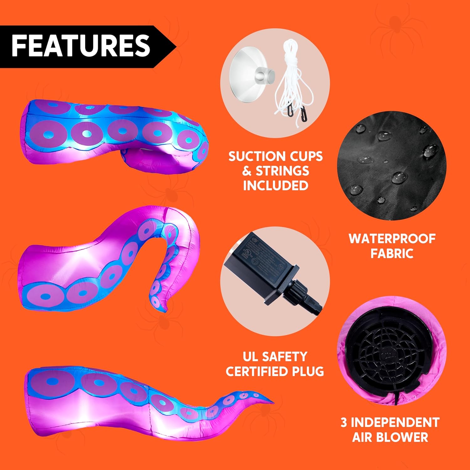 Joiedomi 3 Pezzi Tentacolo di Polpo Gigante Gonfiabile di Halloween con LED Incorporati Scoppiò dalla Finestra, Gonfiabile per la Decorazione della Finestra di Halloween