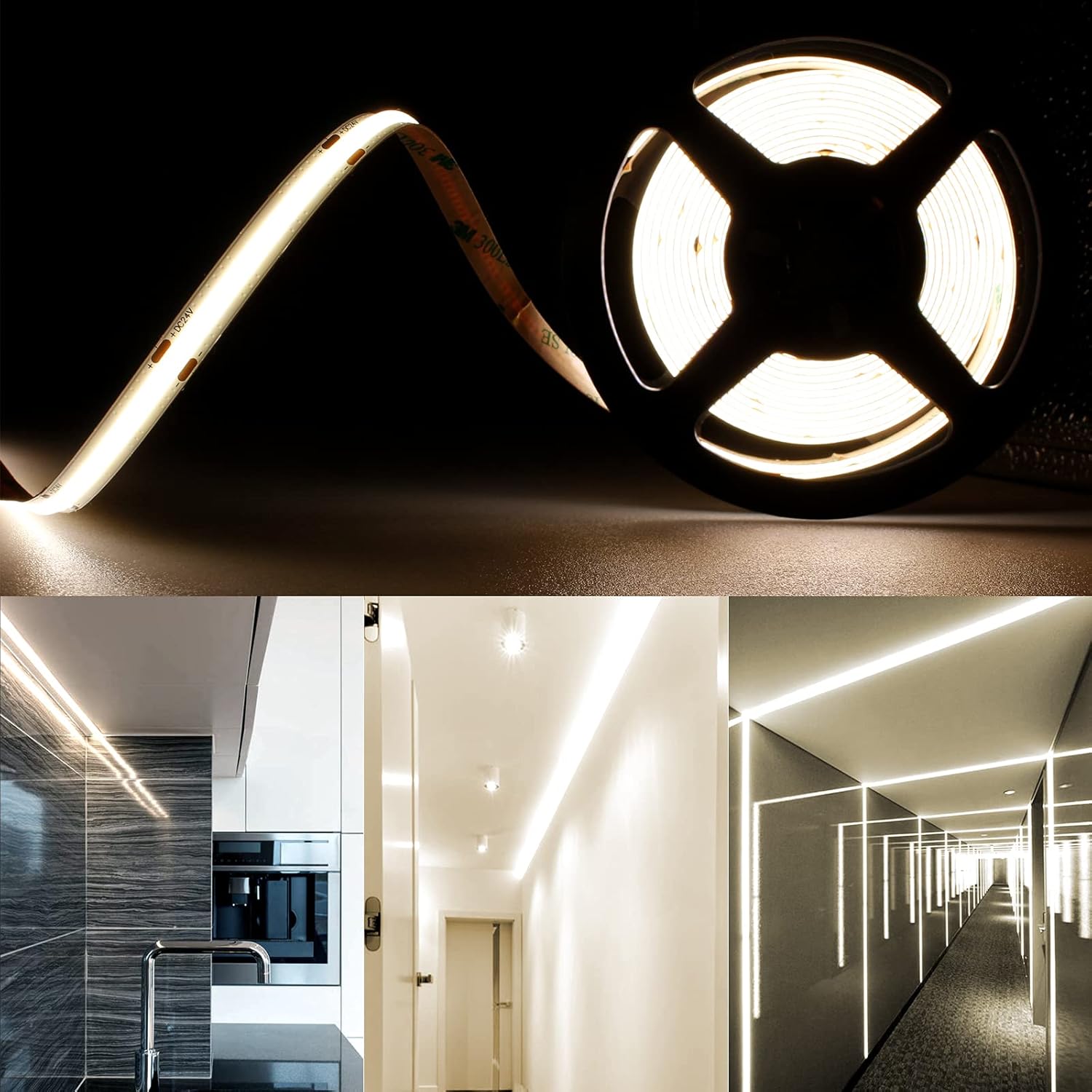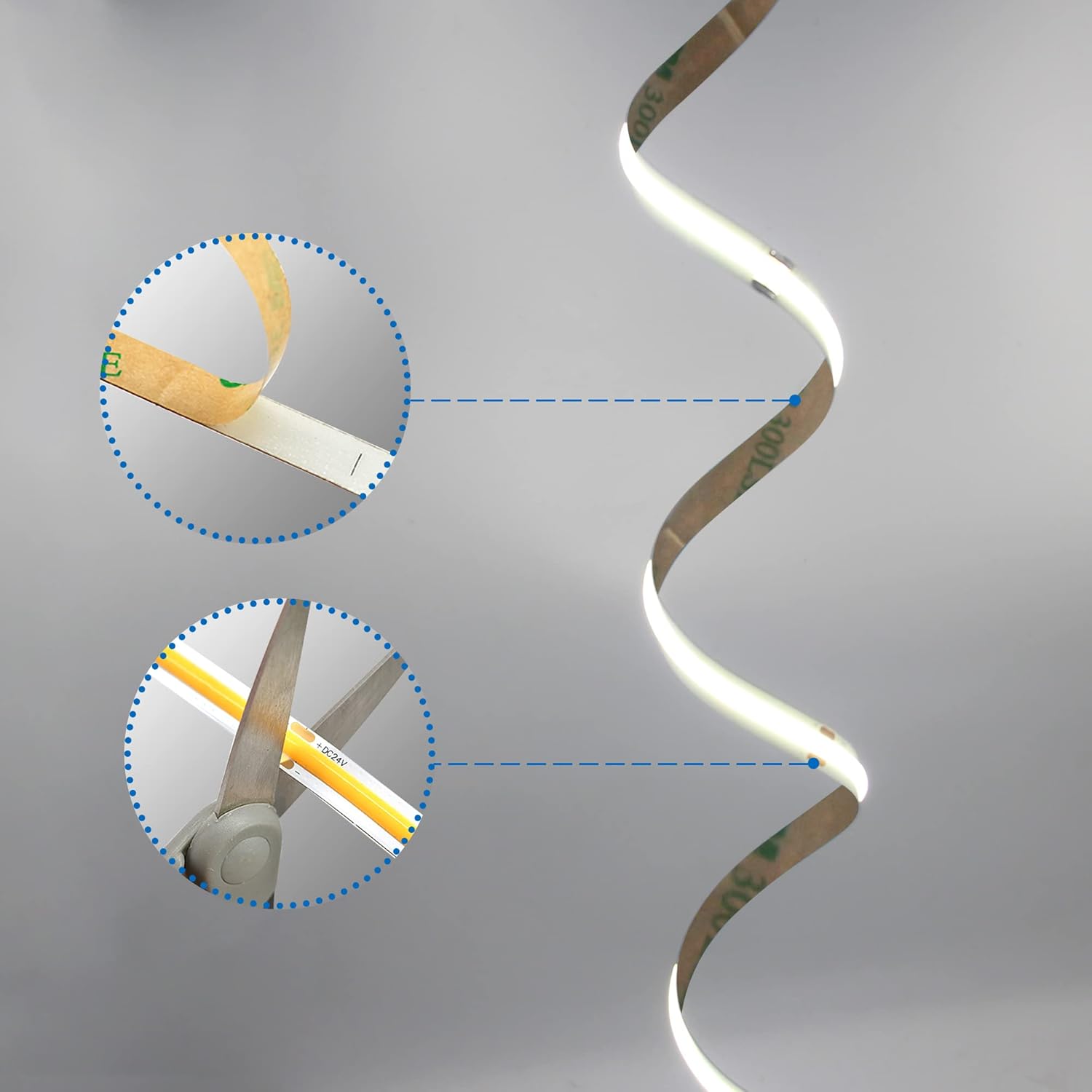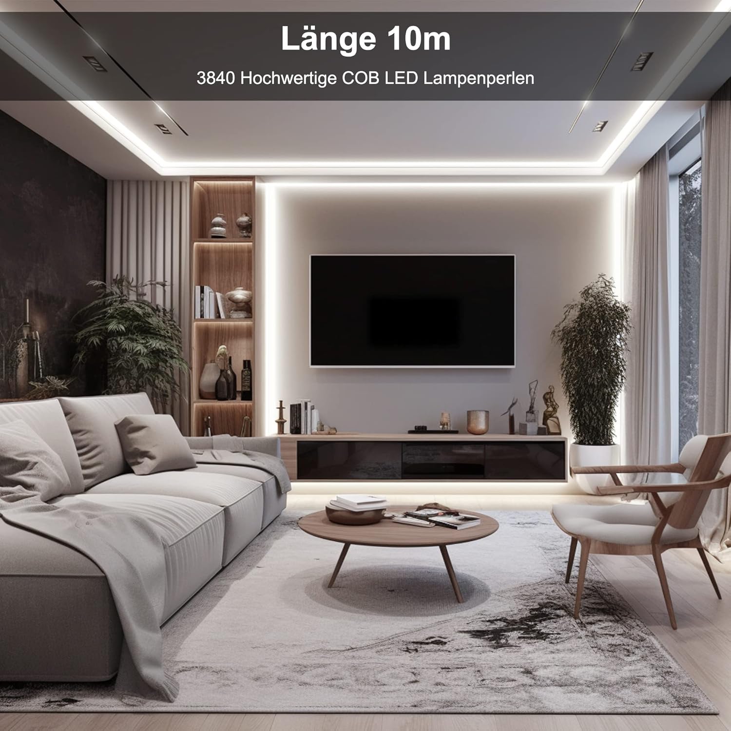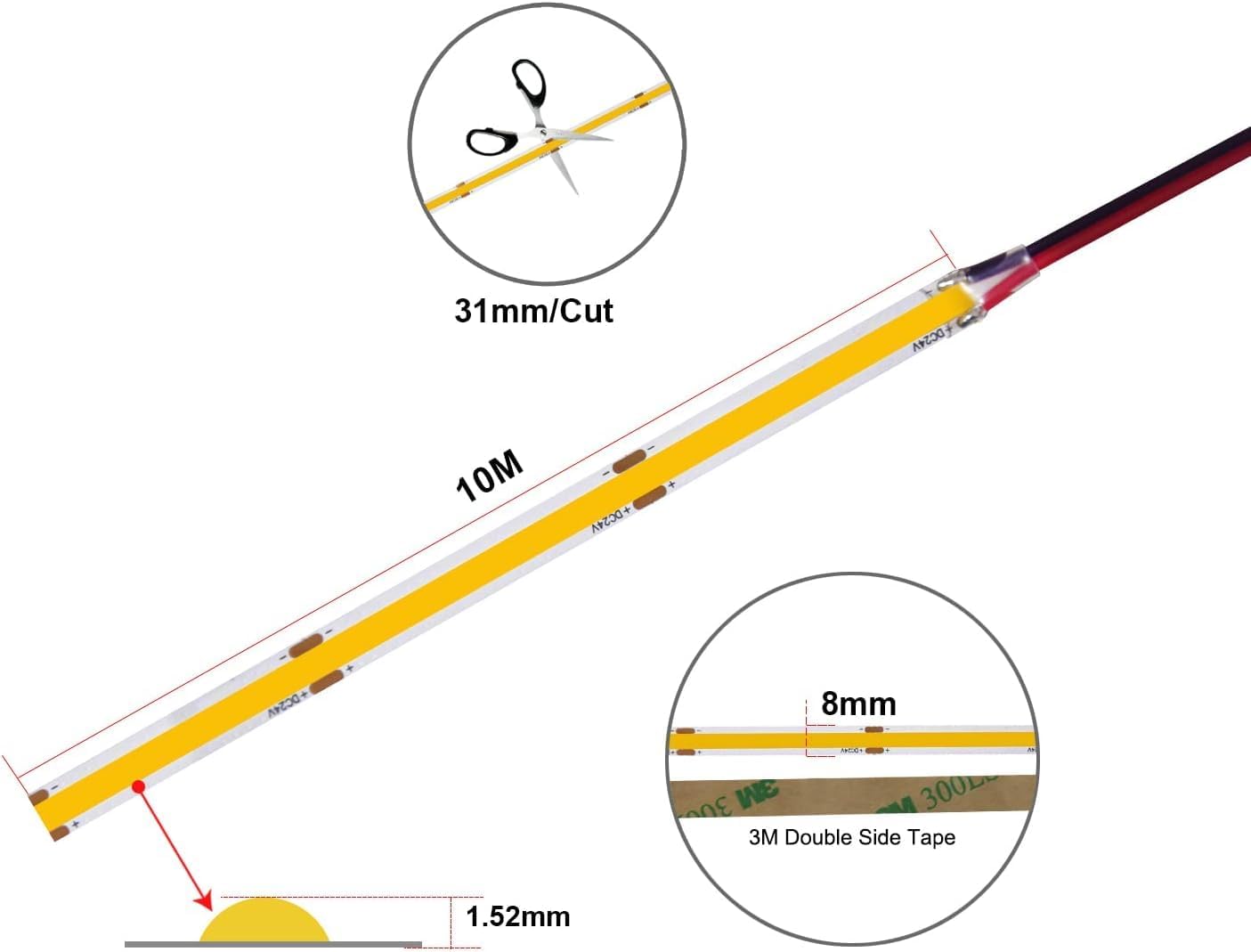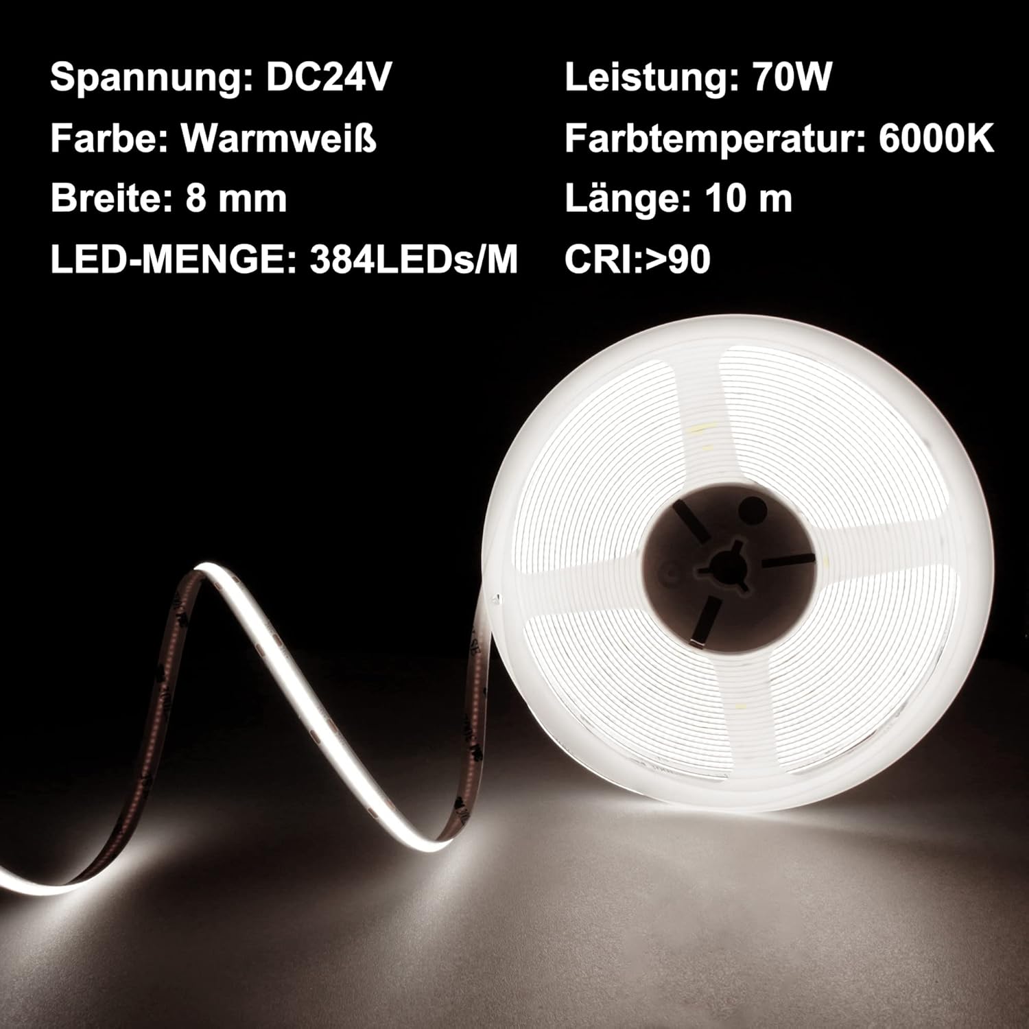 Strascia LED COB 10 Metri, Striscia LED Bianco Naturale con 384LEDs/m, Larghezza 8mm, CRI 90+, Striscia Dimmerabile DC24V per Camera da Letto, Cucina, Specchio (senza alimentazione), 4000K
