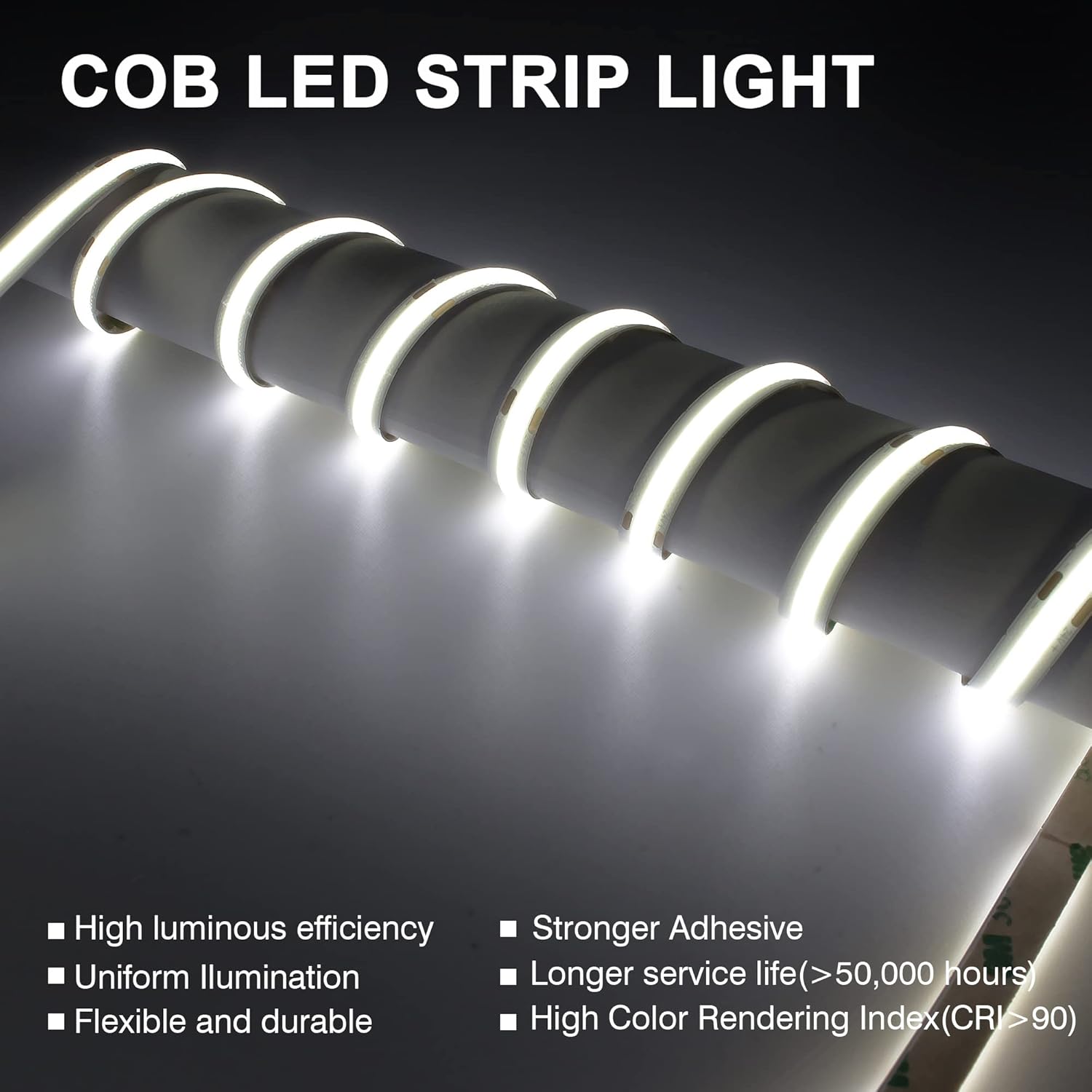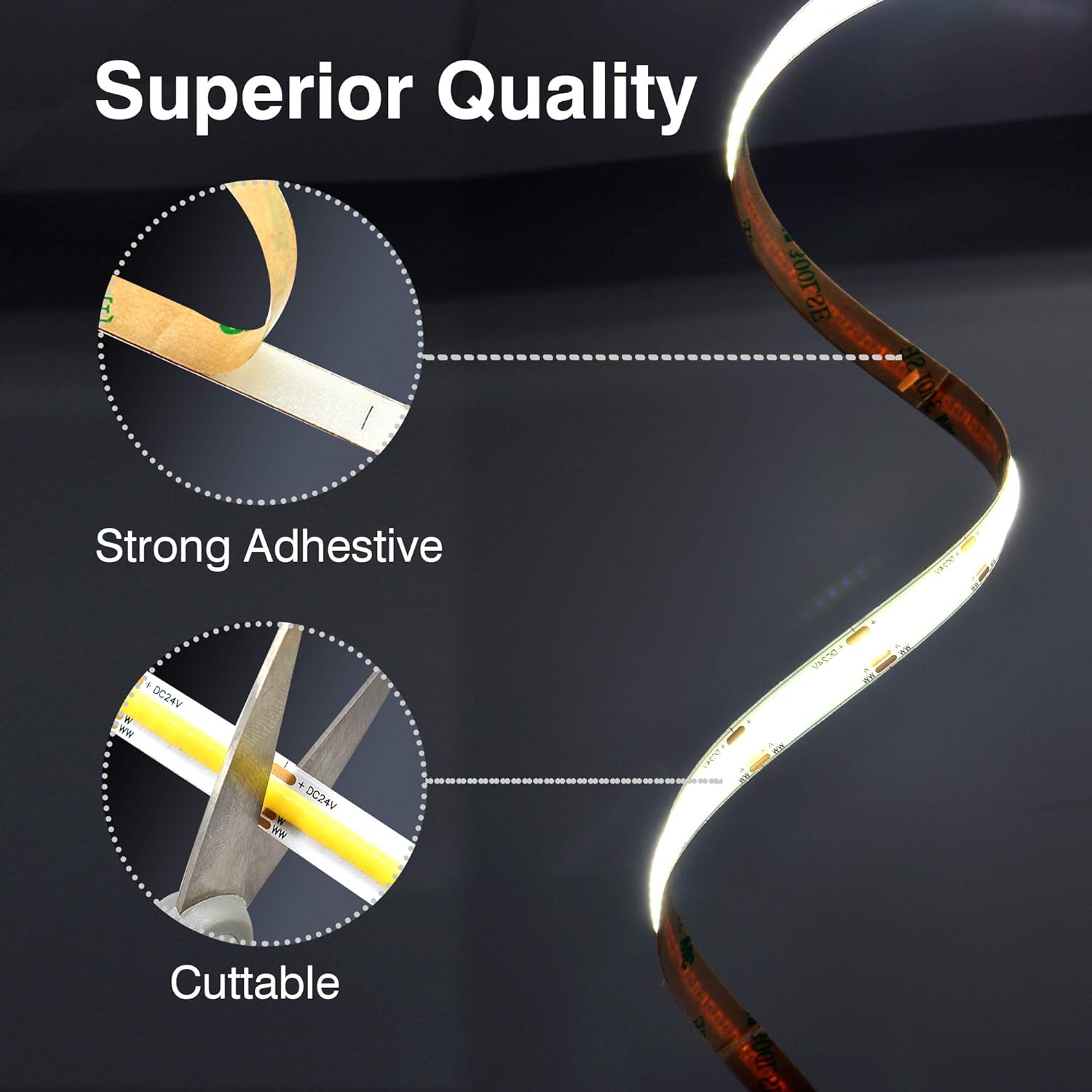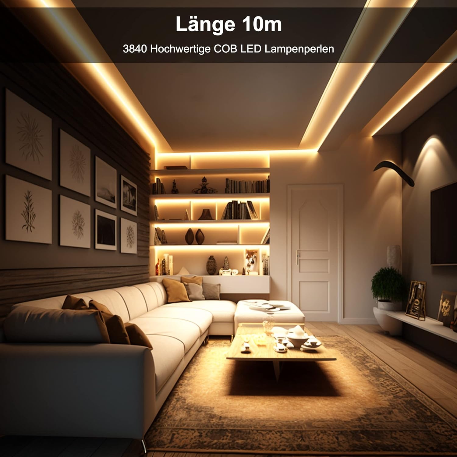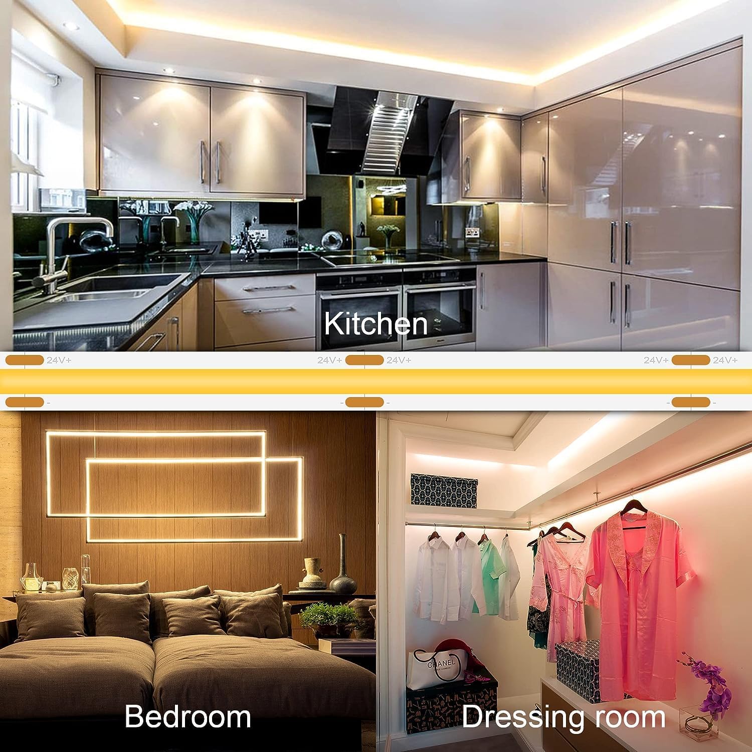 Strascia LED COB 10 Metri, Striscia LED Bianco Naturale con 384LEDs/m, Larghezza 8mm, CRI 90+, Striscia Dimmerabile DC24V per Camera da Letto, Cucina, Specchio (senza alimentazione), 4000K