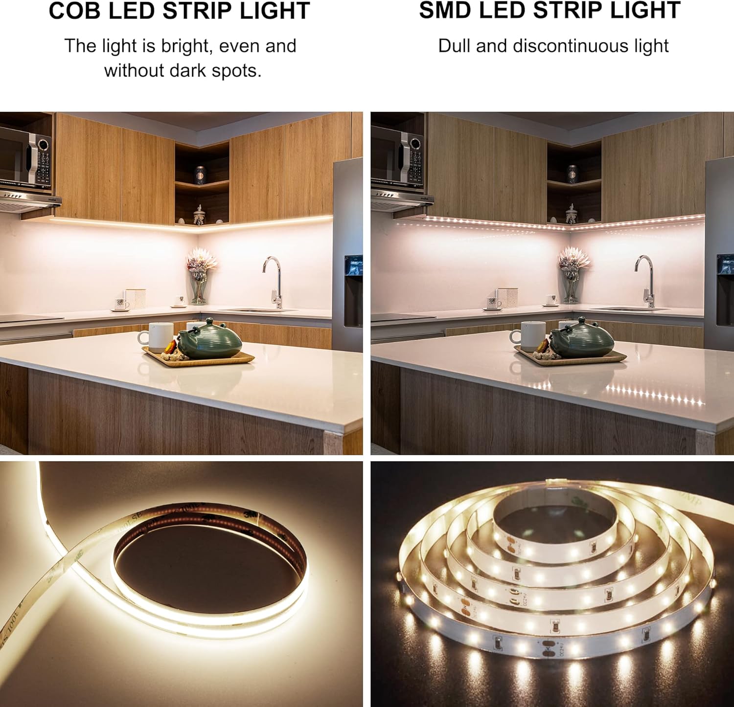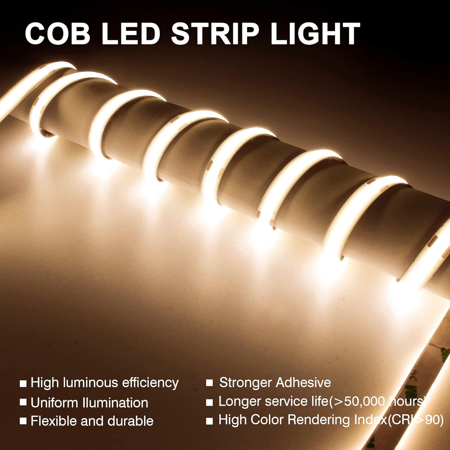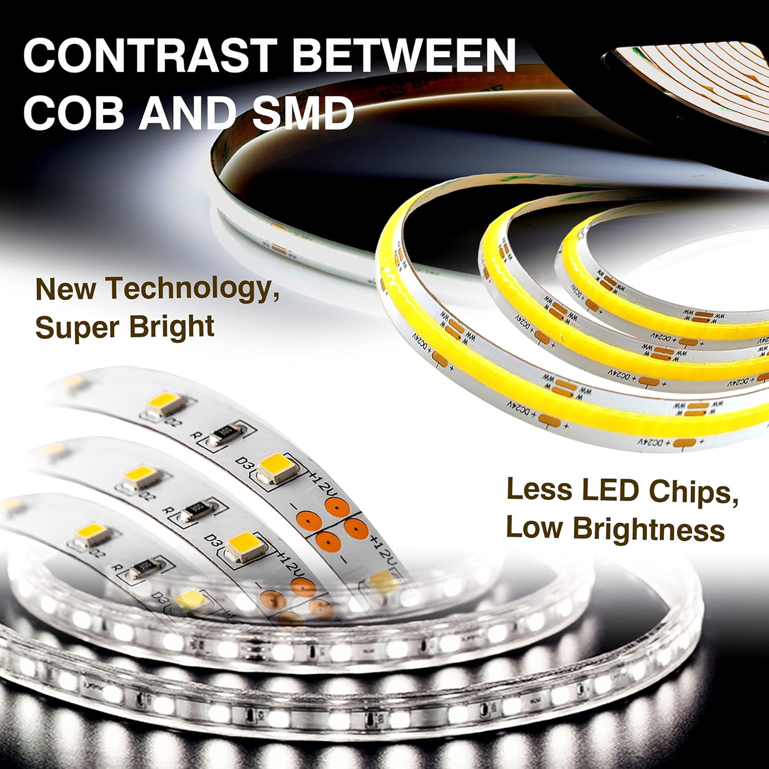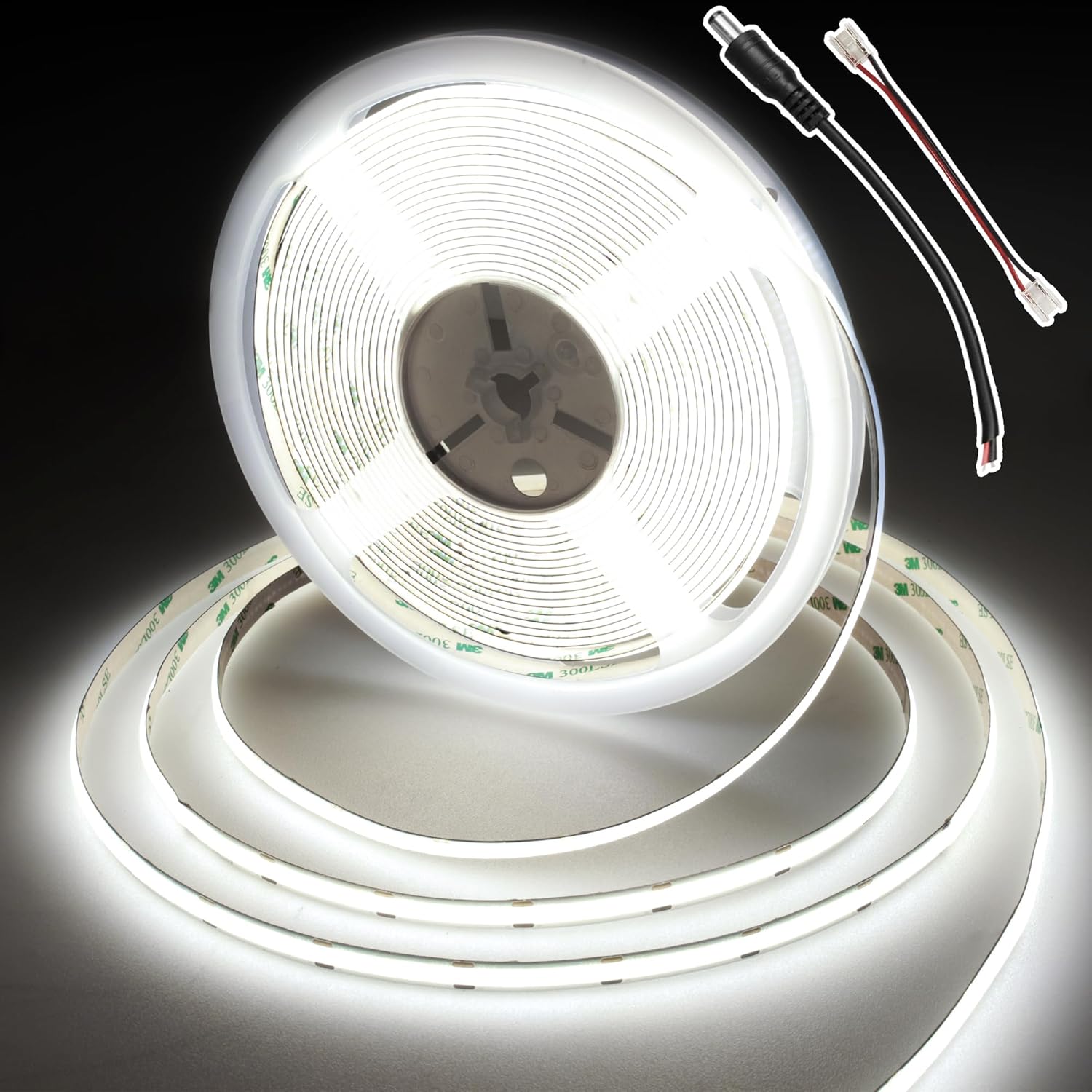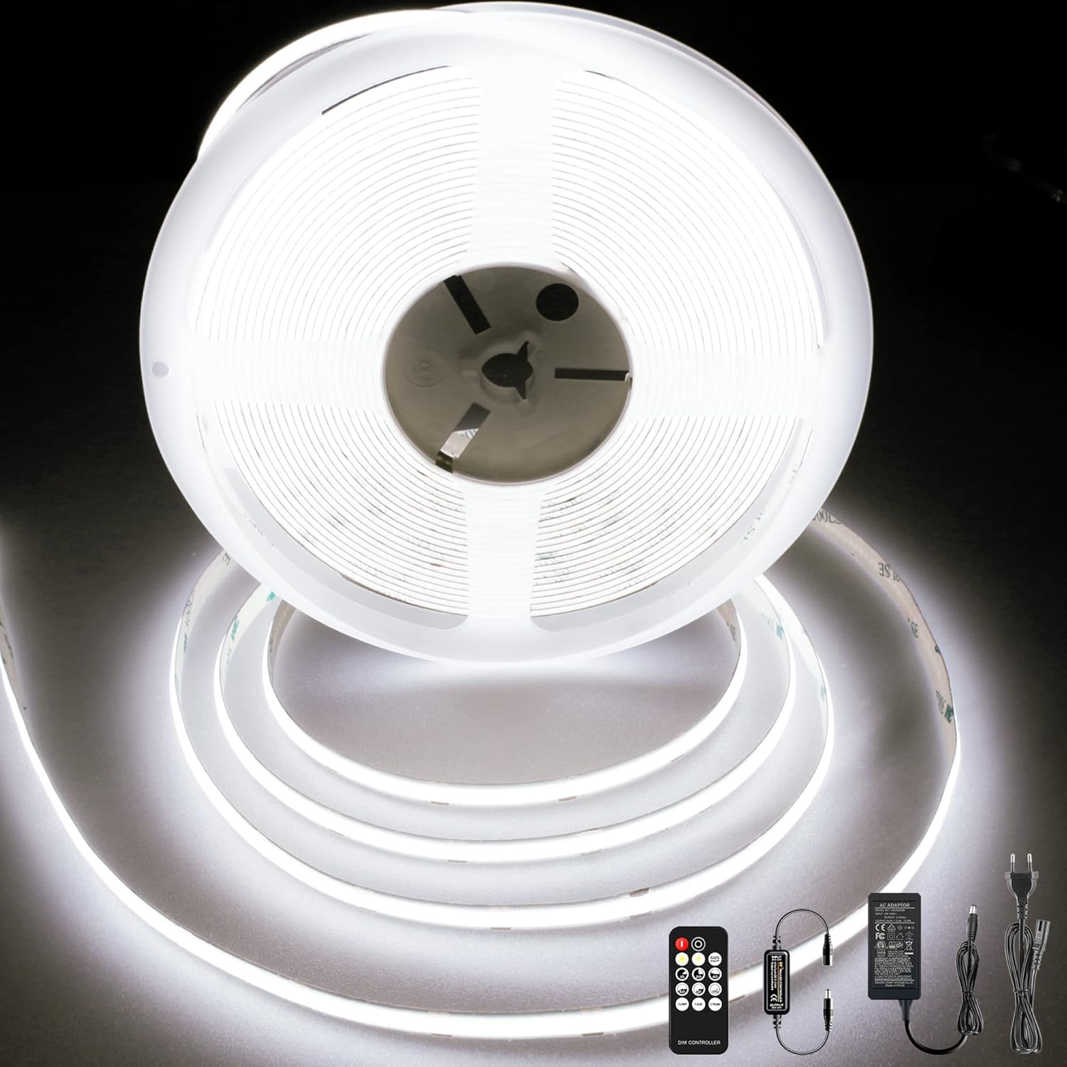Strascia LED COB 10 Metri, Striscia LED Bianco Naturale con 384LEDs/m, Larghezza 8mm, CRI 90+, Striscia Dimmerabile DC24V per Camera da Letto, Cucina, Specchio (senza alimentazione), 4000K