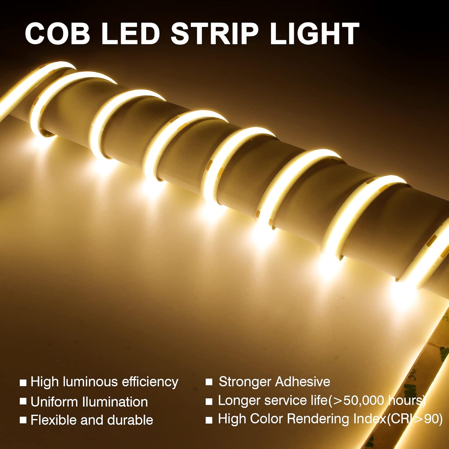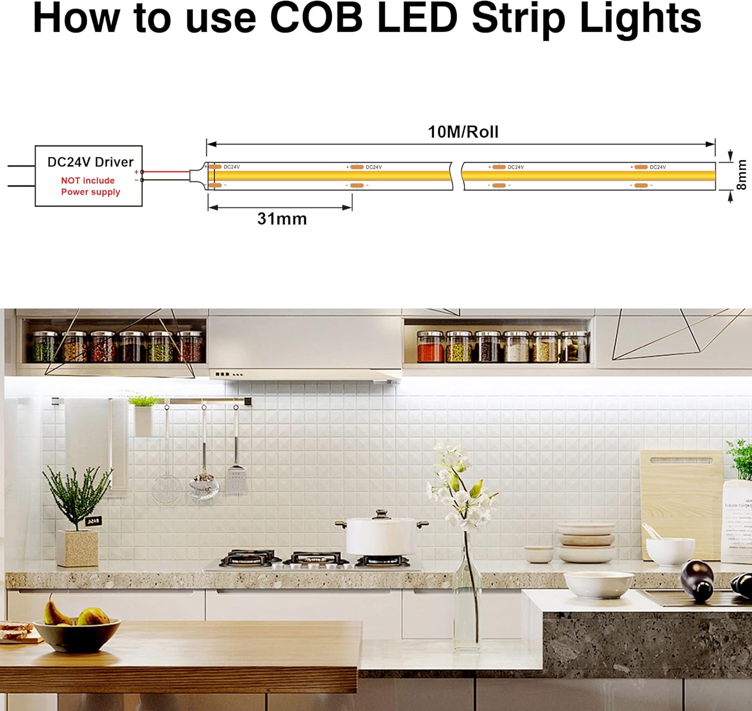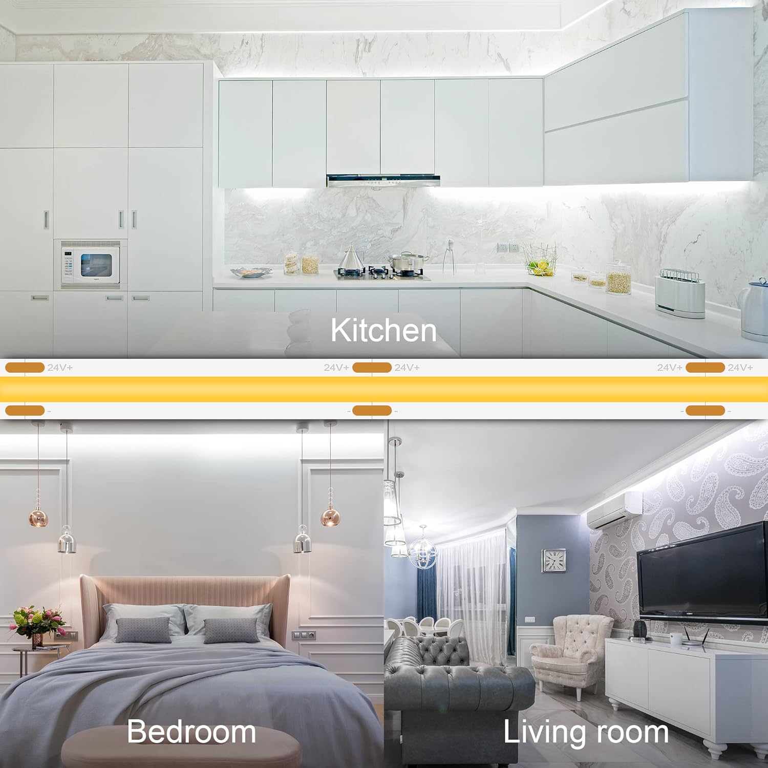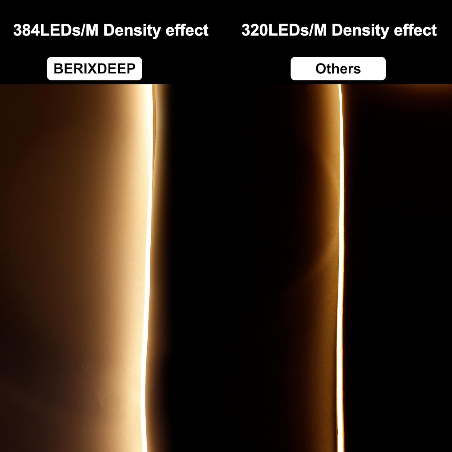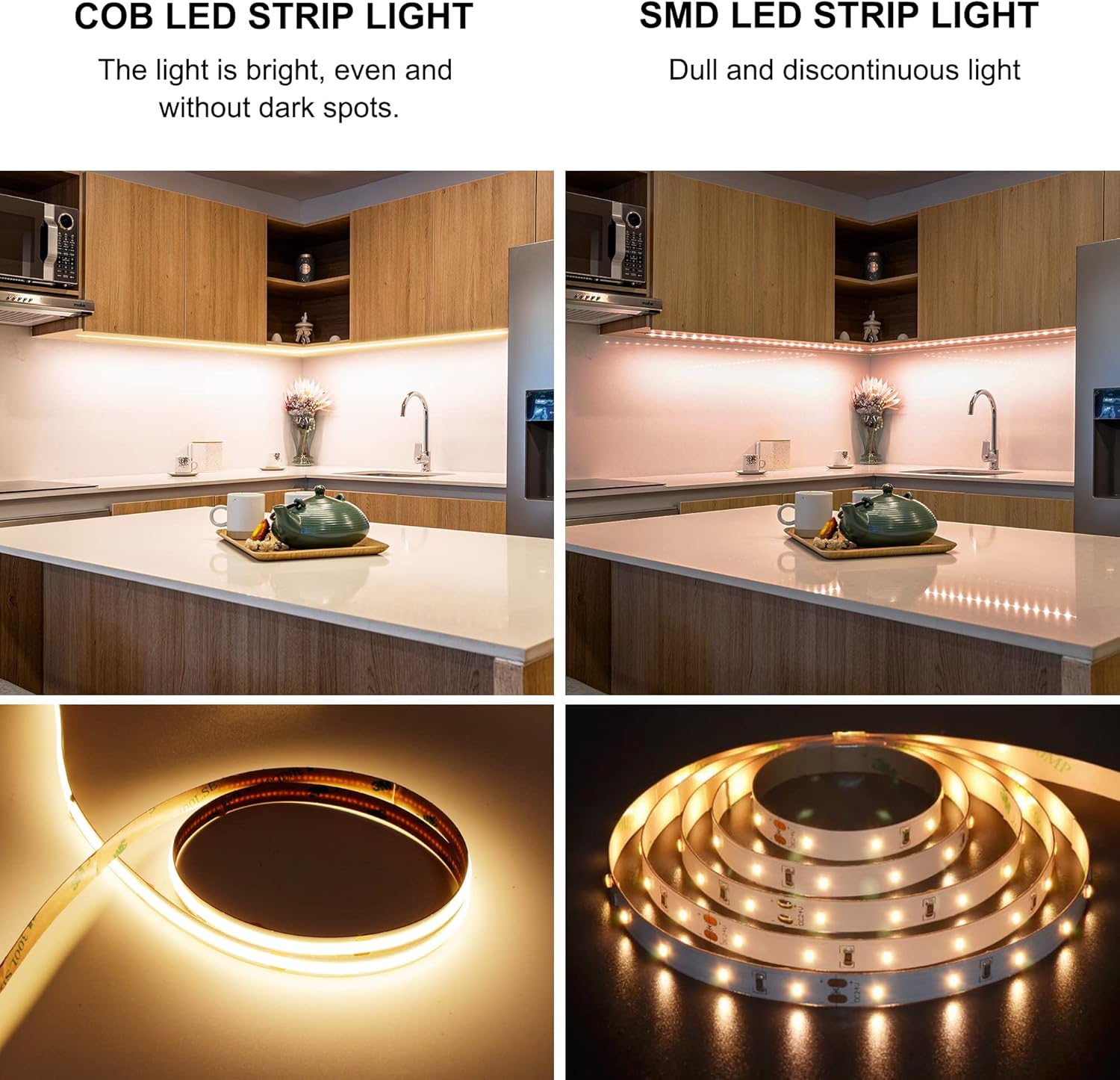 Strascia LED COB 10 Metri, Striscia LED Bianco Naturale con 384LEDs/m, Larghezza 8mm, CRI 90+, Striscia Dimmerabile DC24V per Camera da Letto, Cucina, Specchio (senza alimentazione), 4000K
