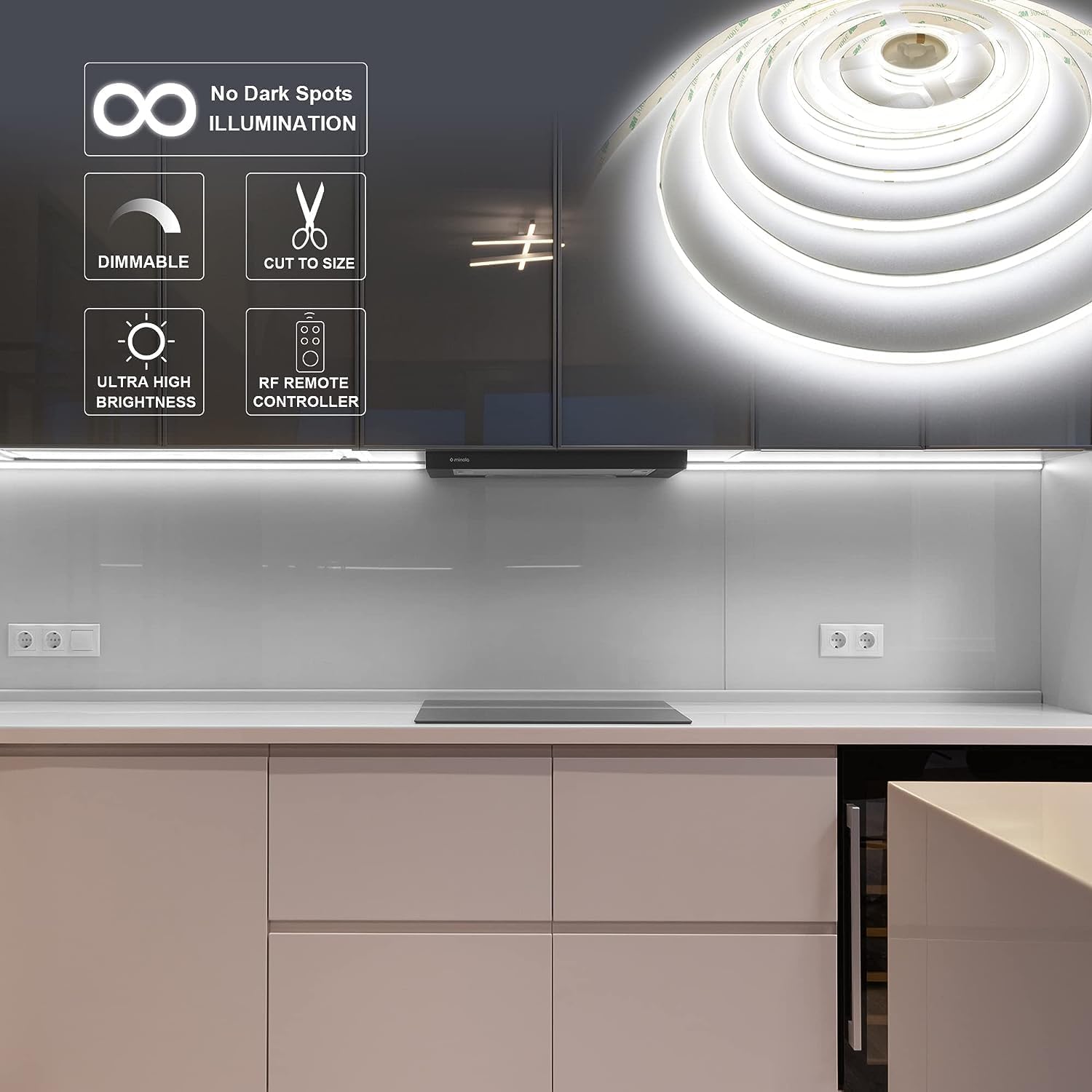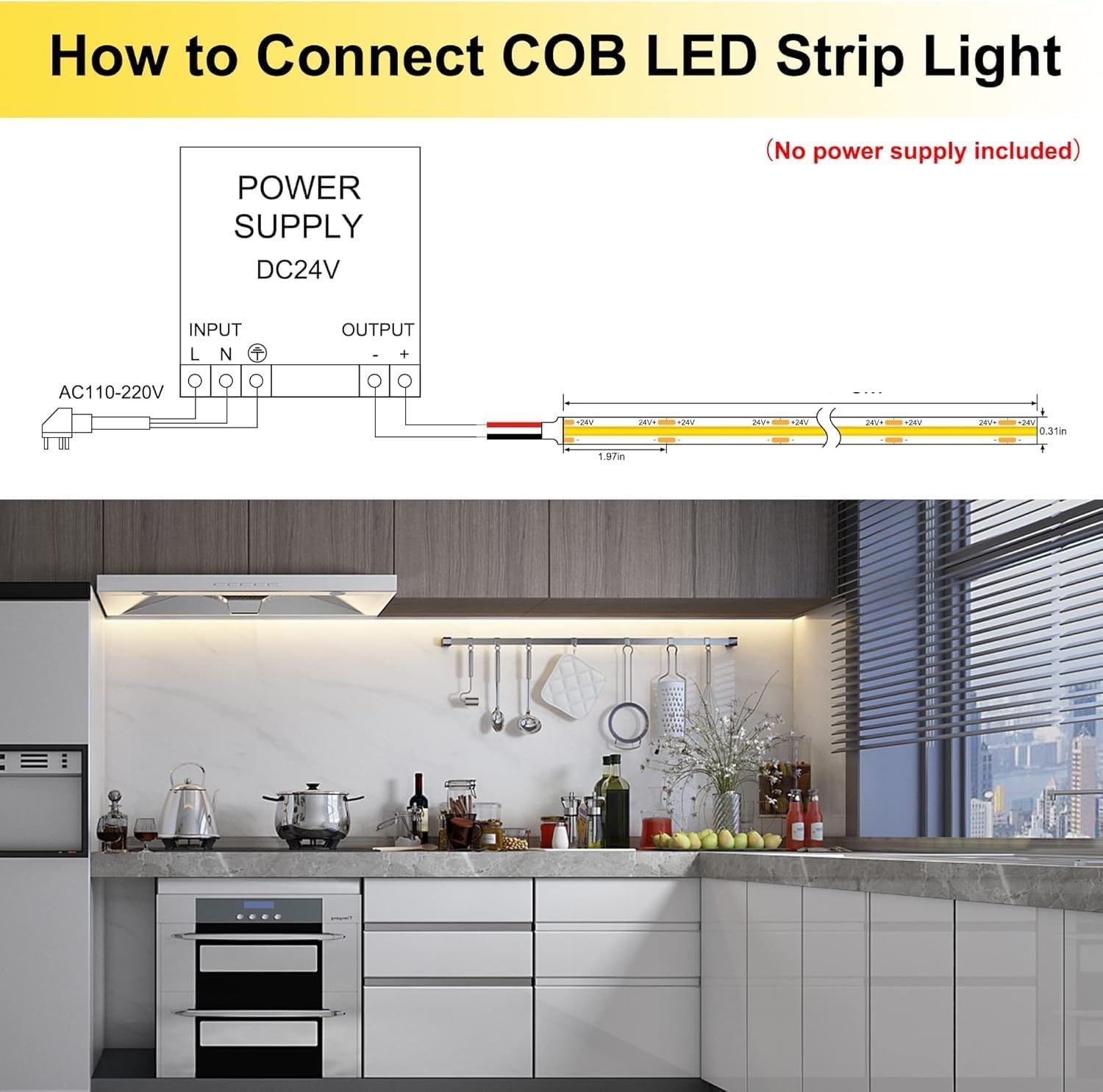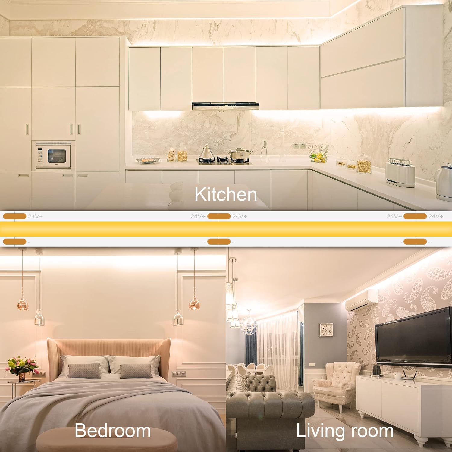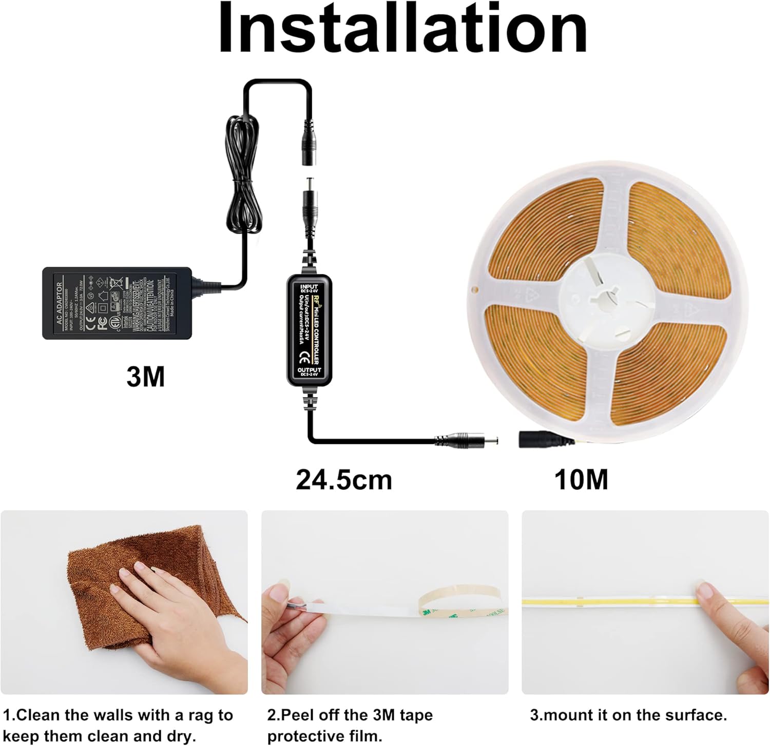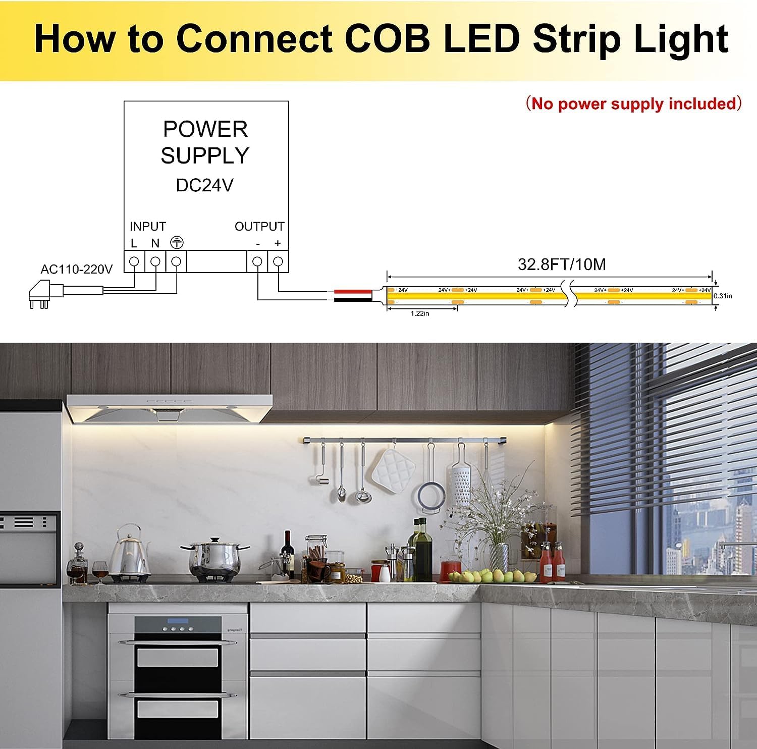 Strascia LED COB 10 Metri, Striscia LED Bianco Naturale con 384LEDs/m, Larghezza 8mm, CRI 90+, Striscia Dimmerabile DC24V per Camera da Letto, Cucina, Specchio (senza alimentazione), 4000K