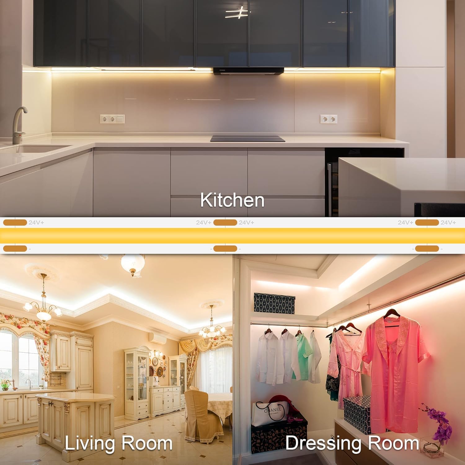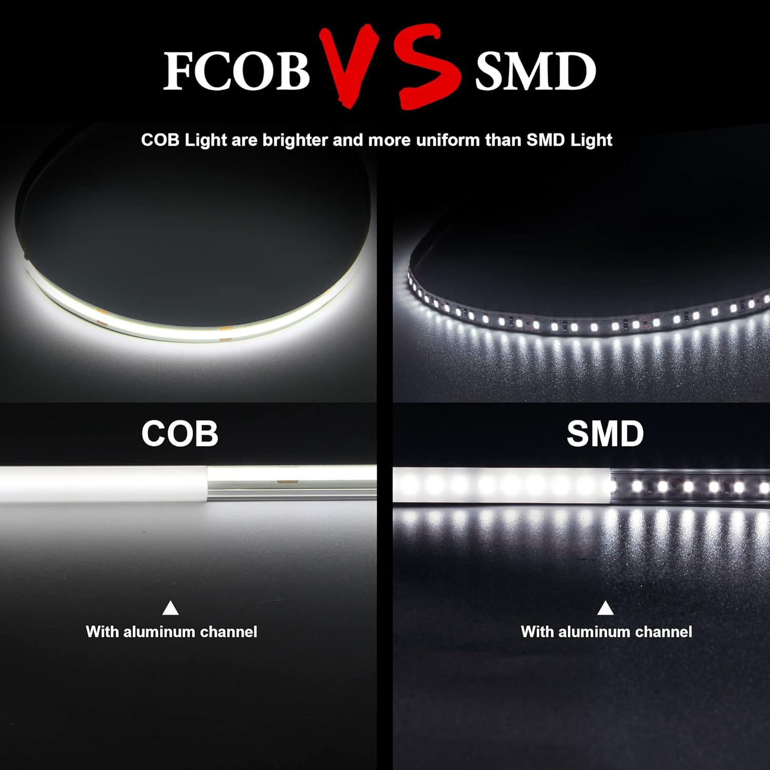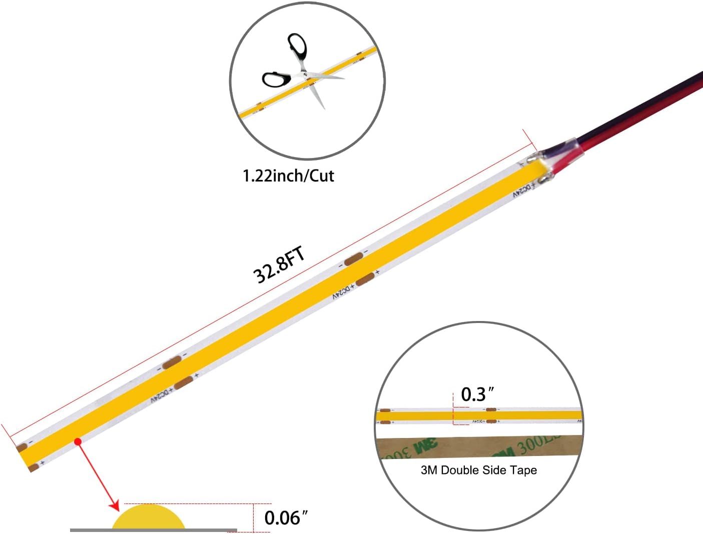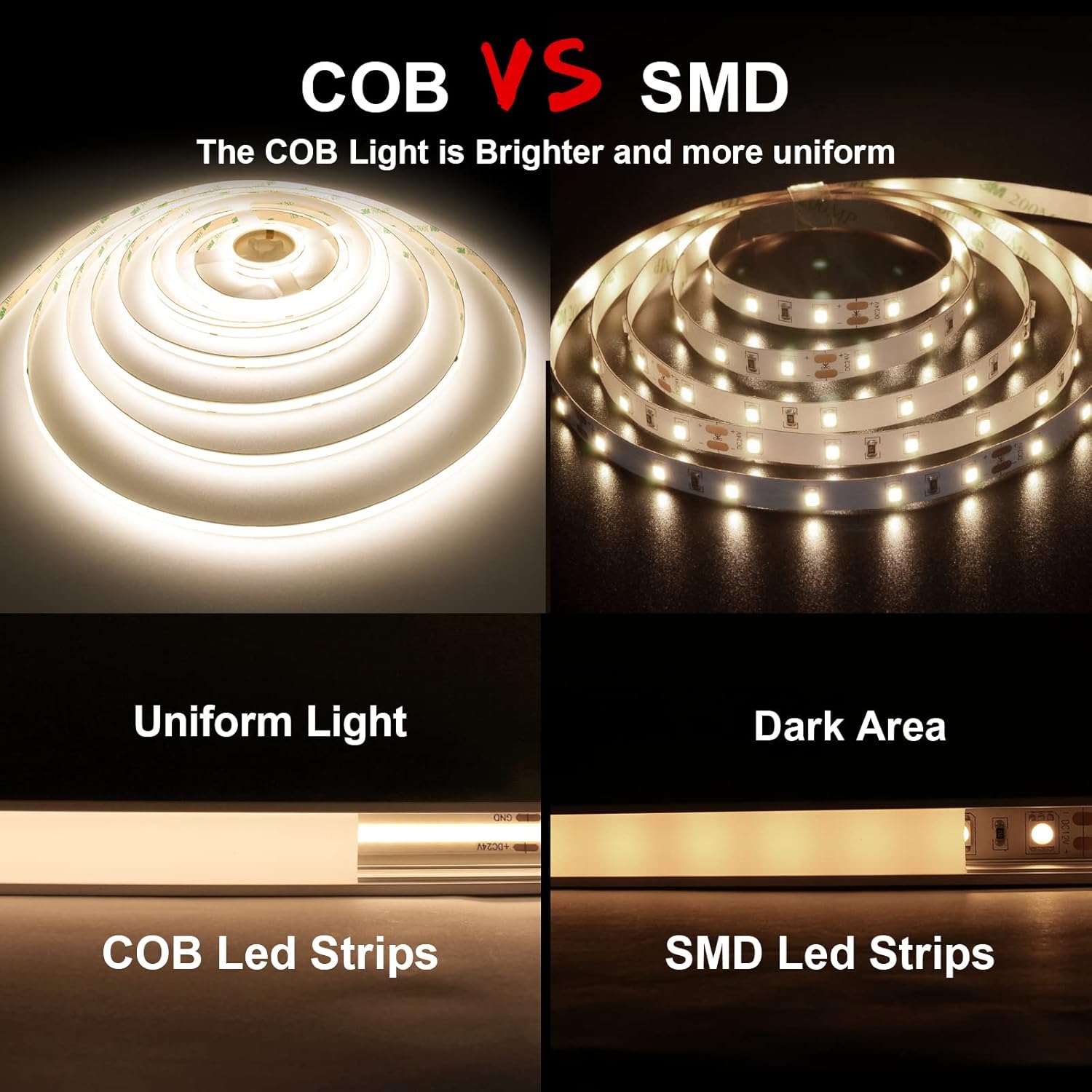 Strascia LED COB 10 Metri, Striscia LED Bianco Naturale con 384LEDs/m, Larghezza 8mm, CRI 90+, Striscia Dimmerabile DC24V per Camera da Letto, Cucina, Specchio (senza alimentazione), 4000K
