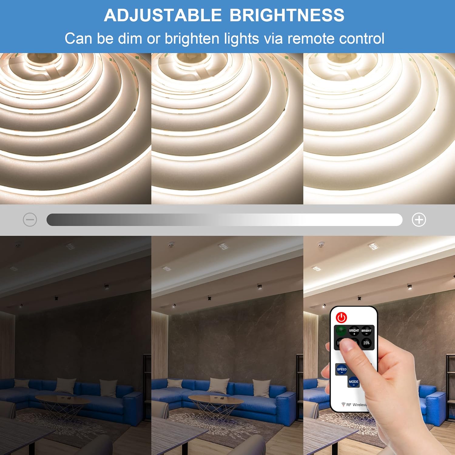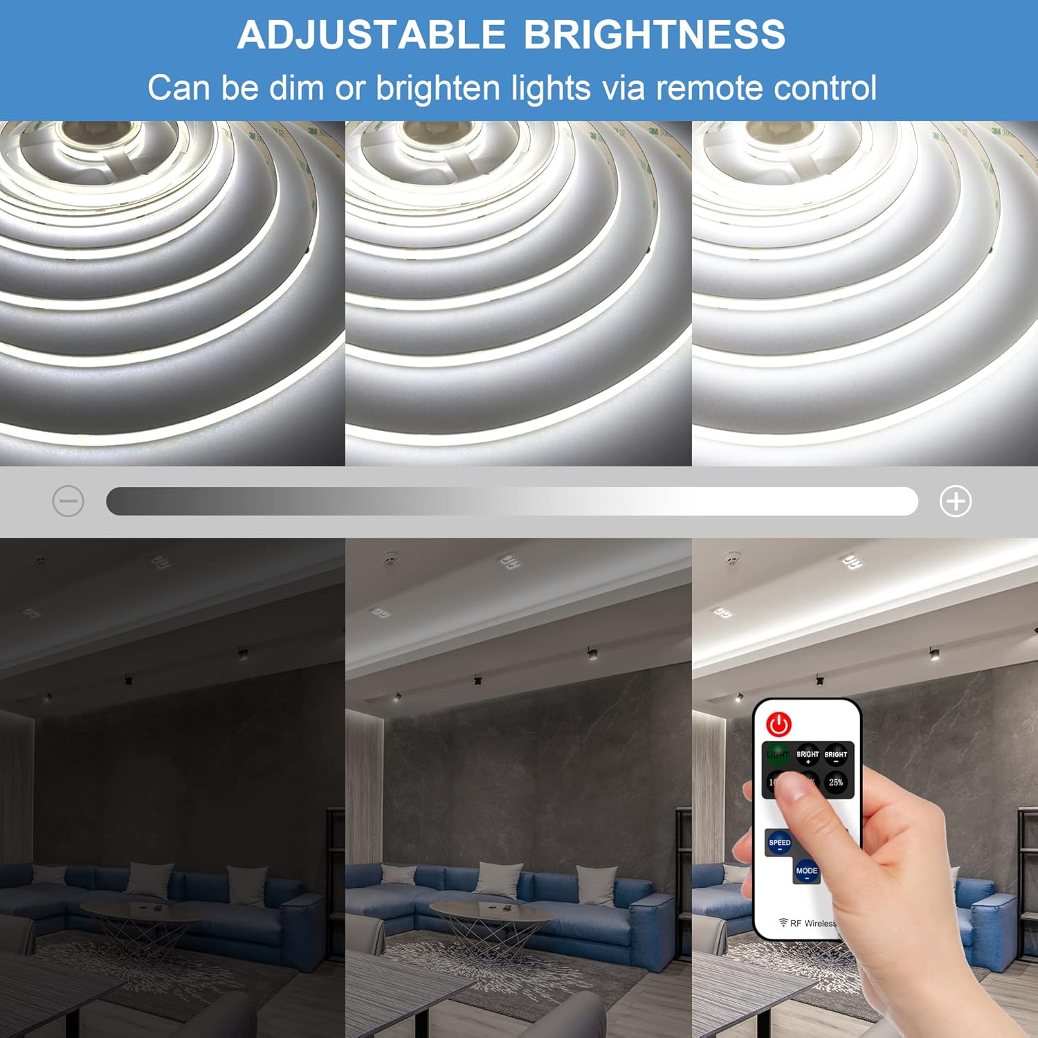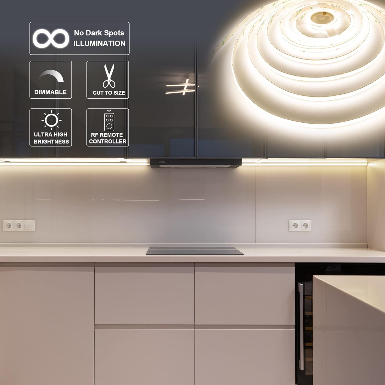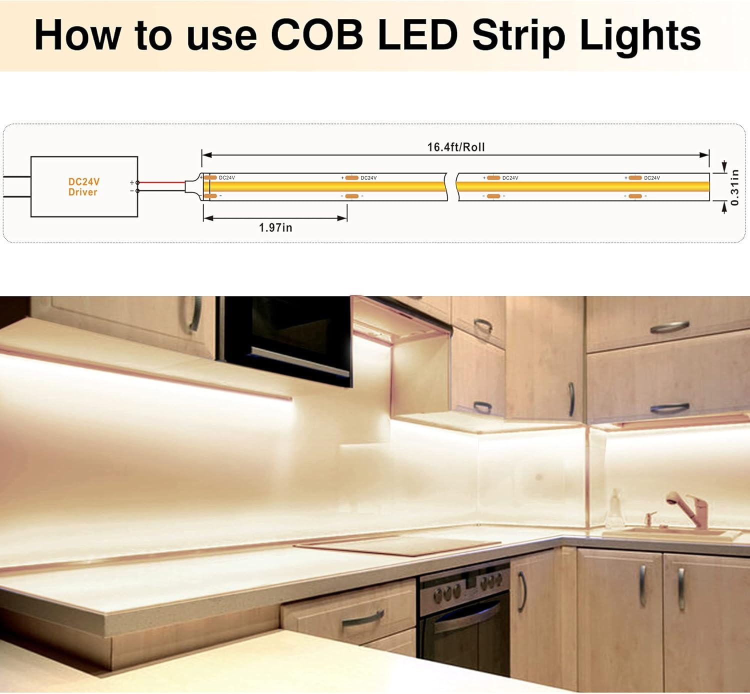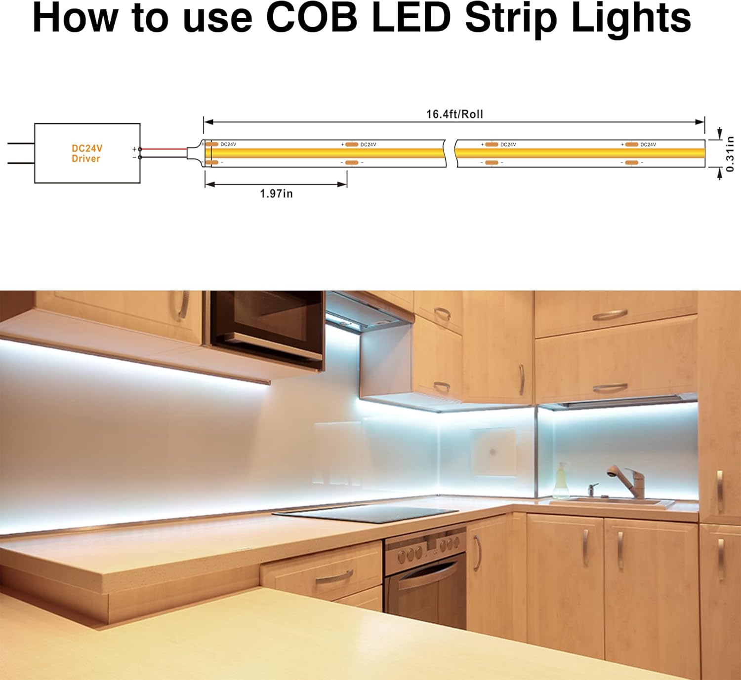Strascia LED COB 10 Metri, Striscia LED Bianco Naturale con 384LEDs/m, Larghezza 8mm, CRI 90+, Striscia Dimmerabile DC24V per Camera da Letto, Cucina, Specchio (senza alimentazione), 4000K