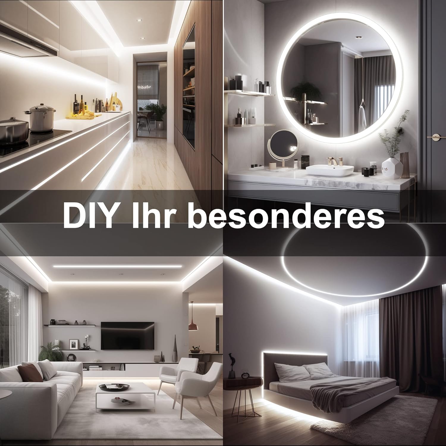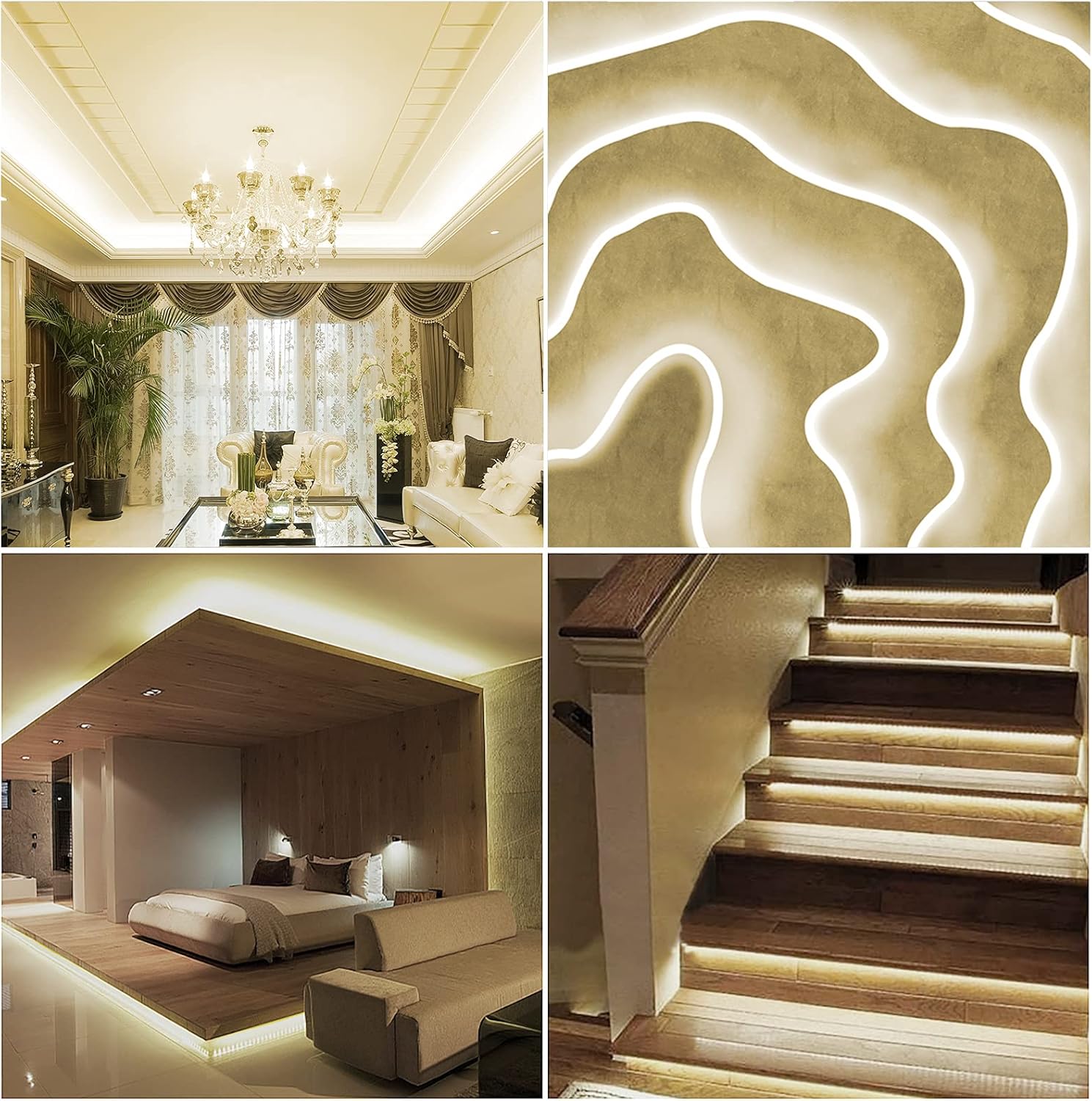 ONSSI? Strisce LED Neon 220v (Bianco Freddo,3M),12w/m Ogni Taglio 10 cm,288 Led/m COB Luce a Corda ad Alta Luminosità,Impermeabile IP65 con Interruttore e Adesivo,Nastri Led per Uso Interno ed Esterno