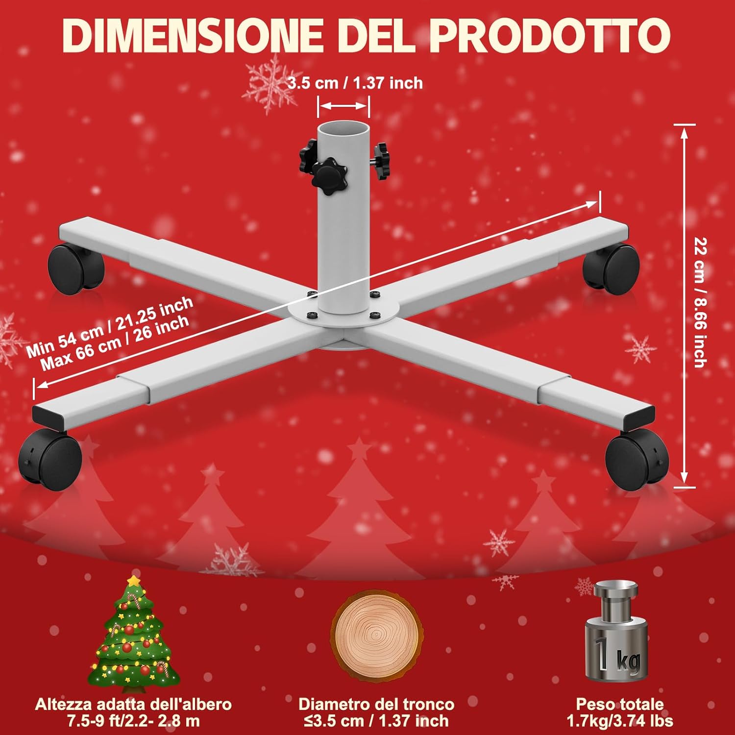 Supporto per Base Albero di Natale Artificiale, Base di Ricambio per Base per Albero di Natale con Ruota Universale per Alberi Artificiali da 2,2 m a 2,8 m, Adatto per Albero da 2-3,5 cm, Bianco