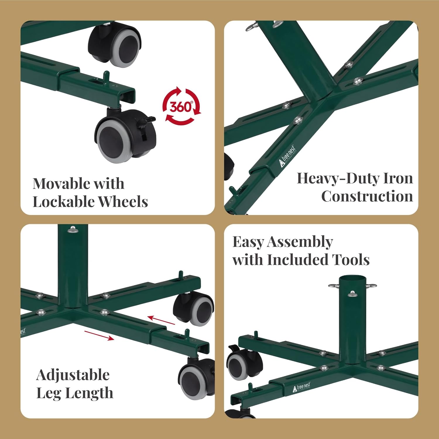 Tree Nest Base per Albero Natale Supporto Piedistallo Finto con Ruote Piede per 250 cm Artificiale Verde - Movable