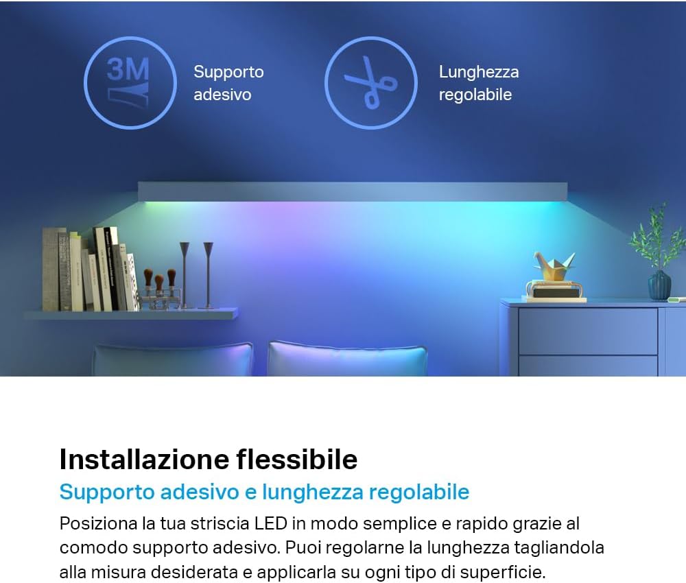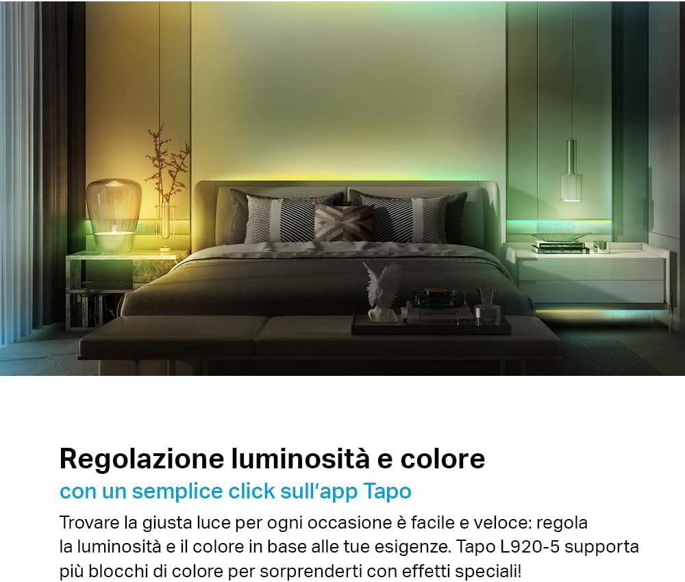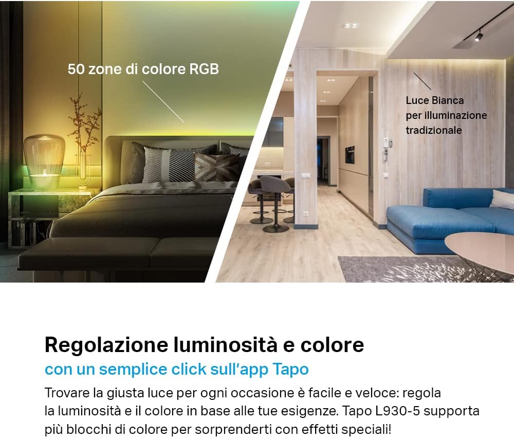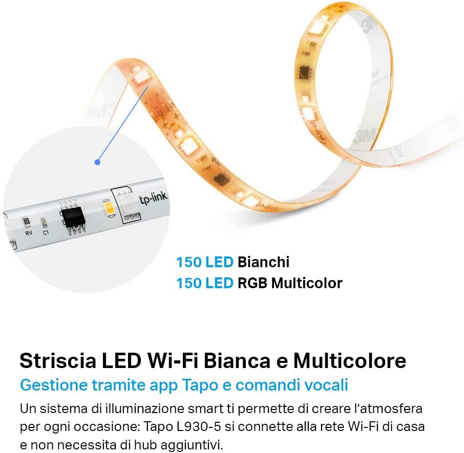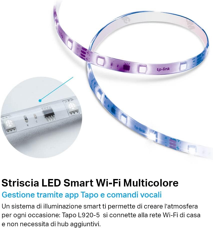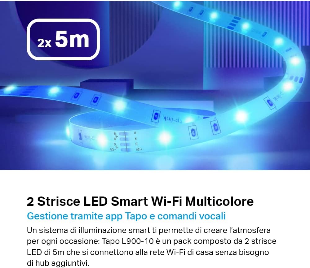 Tapo L900 Smart Wi-Fi Striscia LED, Controllo Vocale Compatibile con Alexa e Google Assistant, 2 Confezioni L900-5 con 1 Alimentatore, Sync-to-Music, Accorciabile e Controllo dall'APP