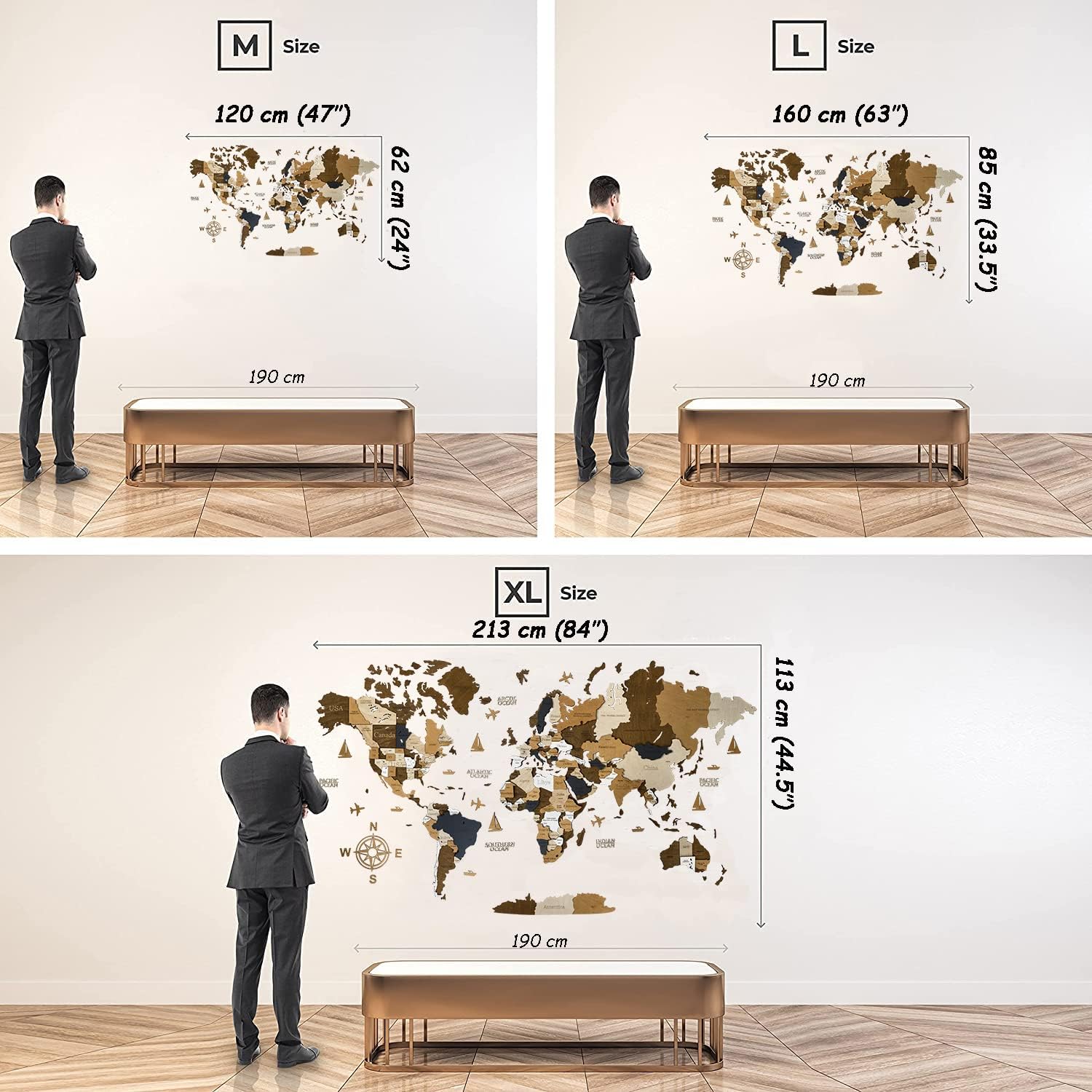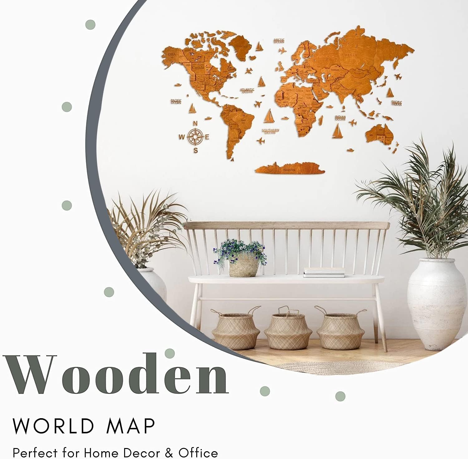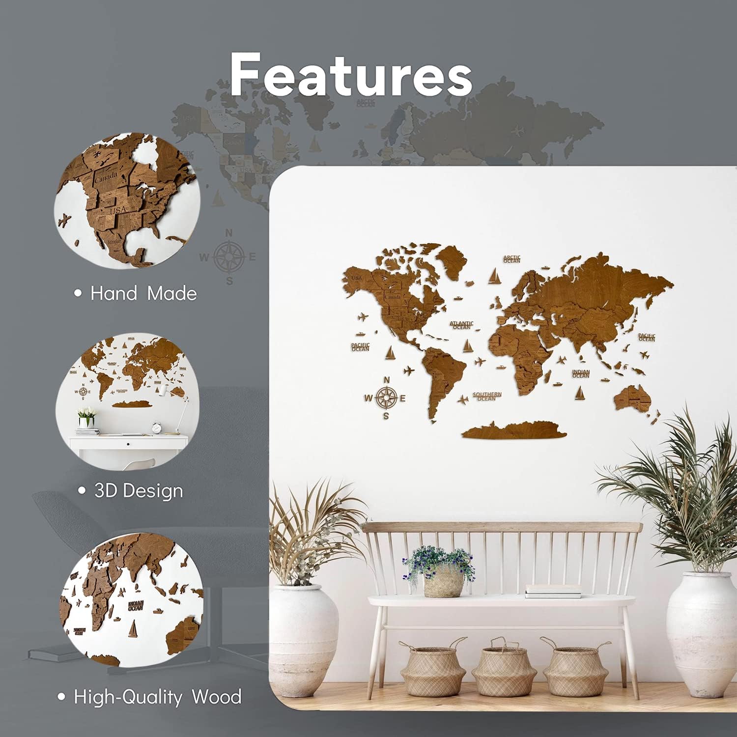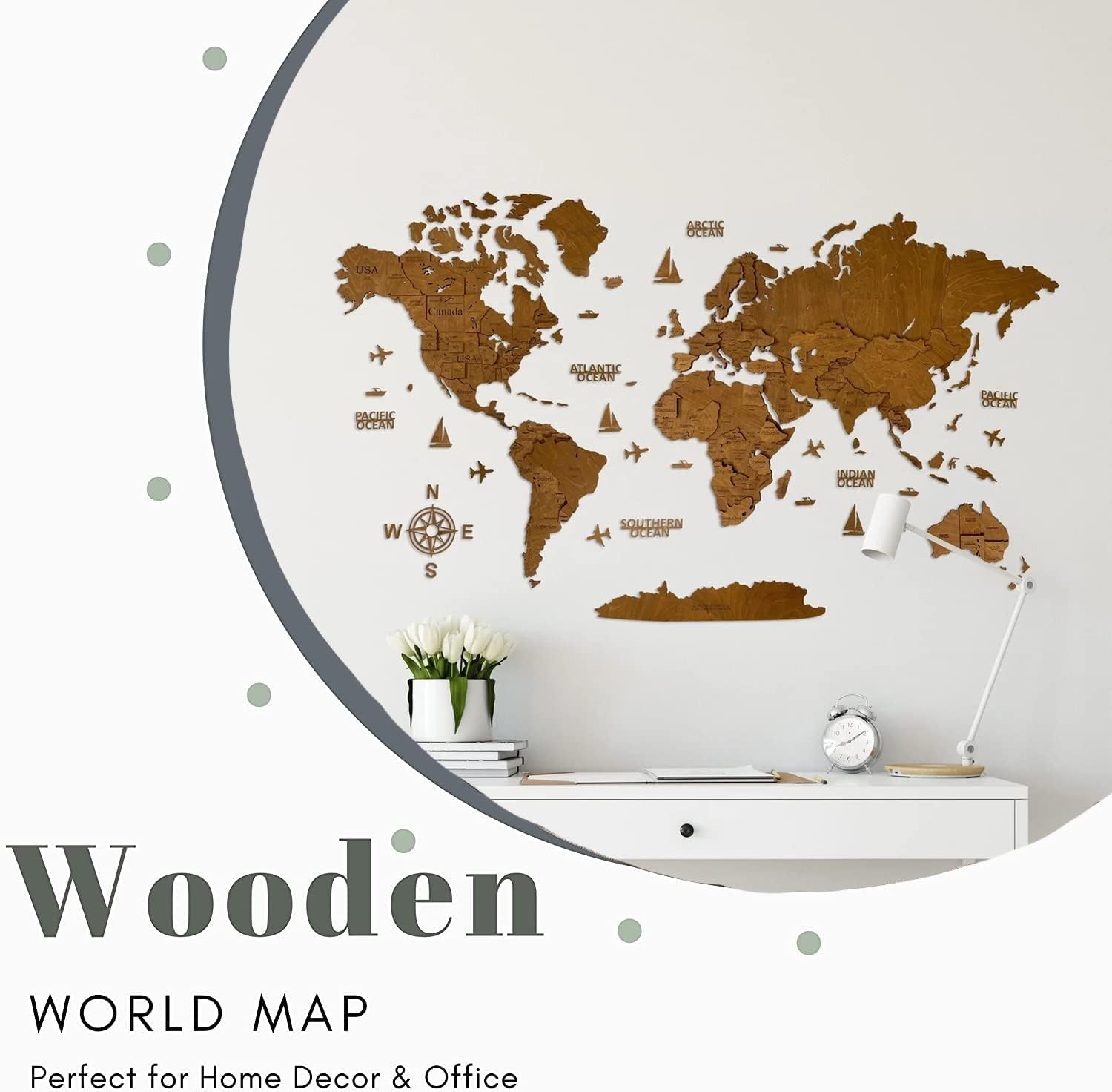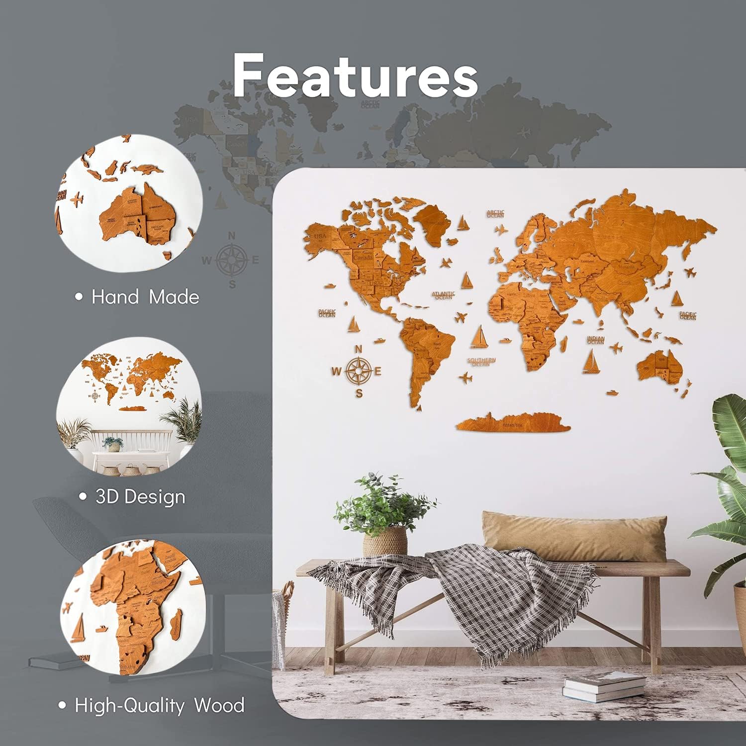 Mappa del mondo in legno,grande decorazione da parete in 3D,dimensioni (M & L & XL),idea regalo per ogni occasione,decorazione da parete per casa,cucina o ufficio
