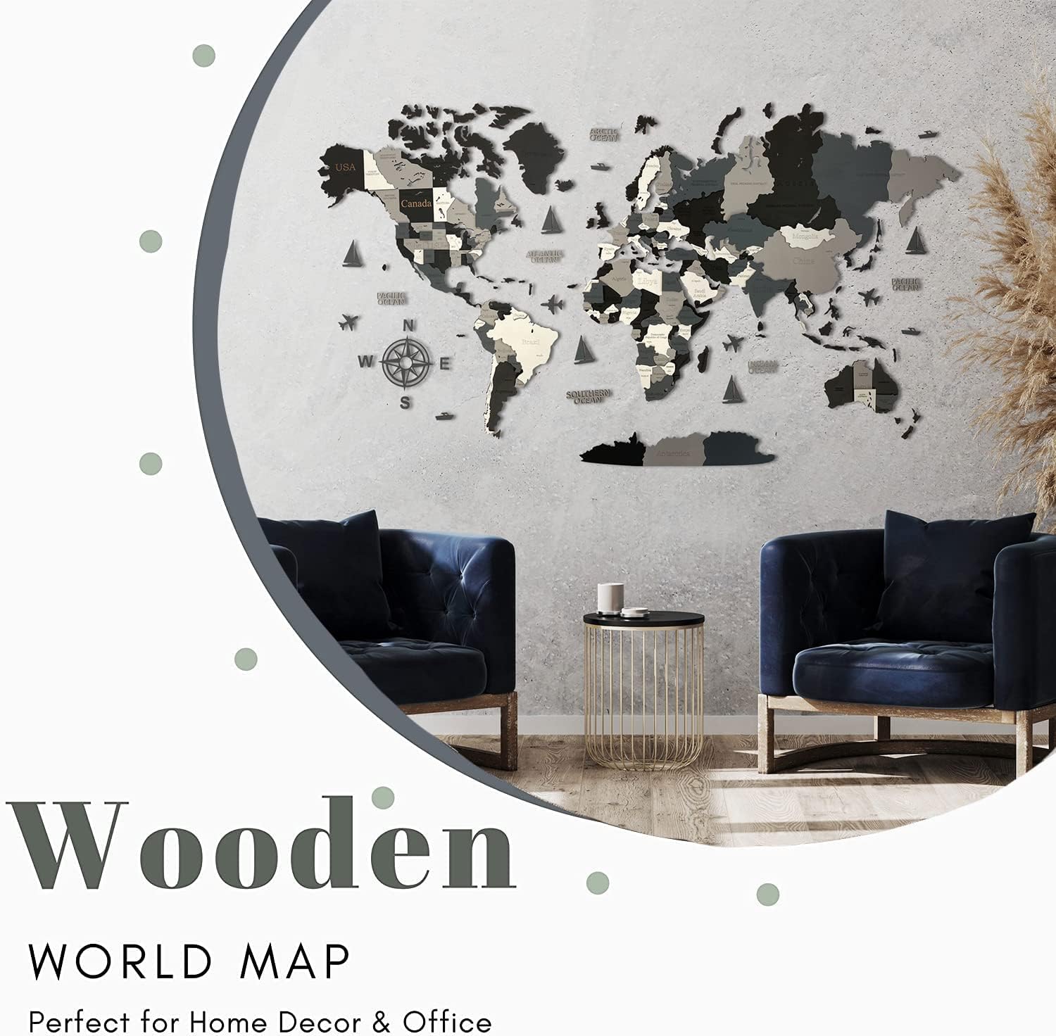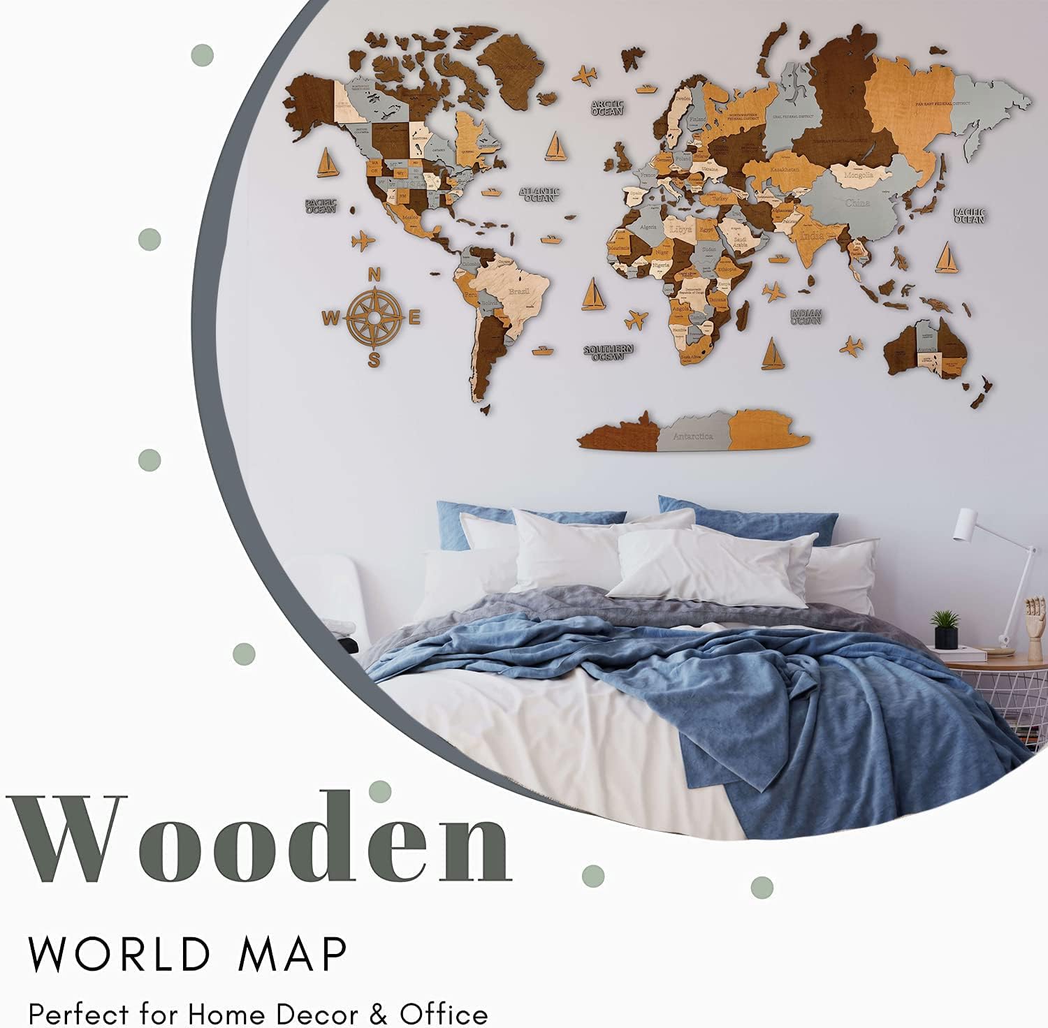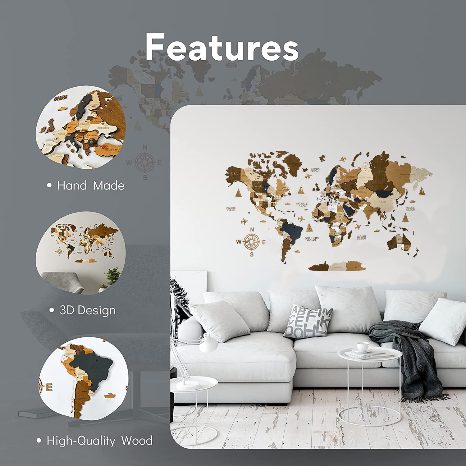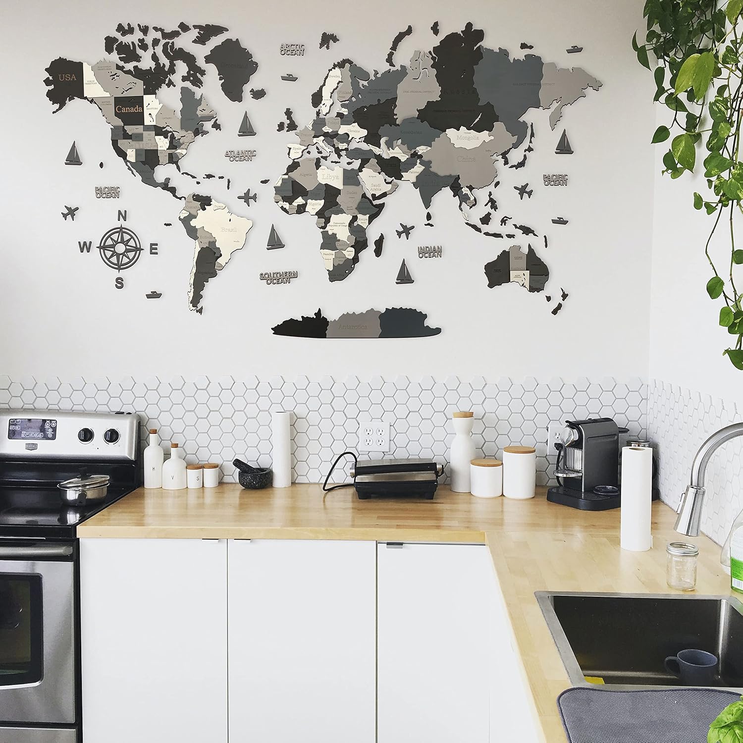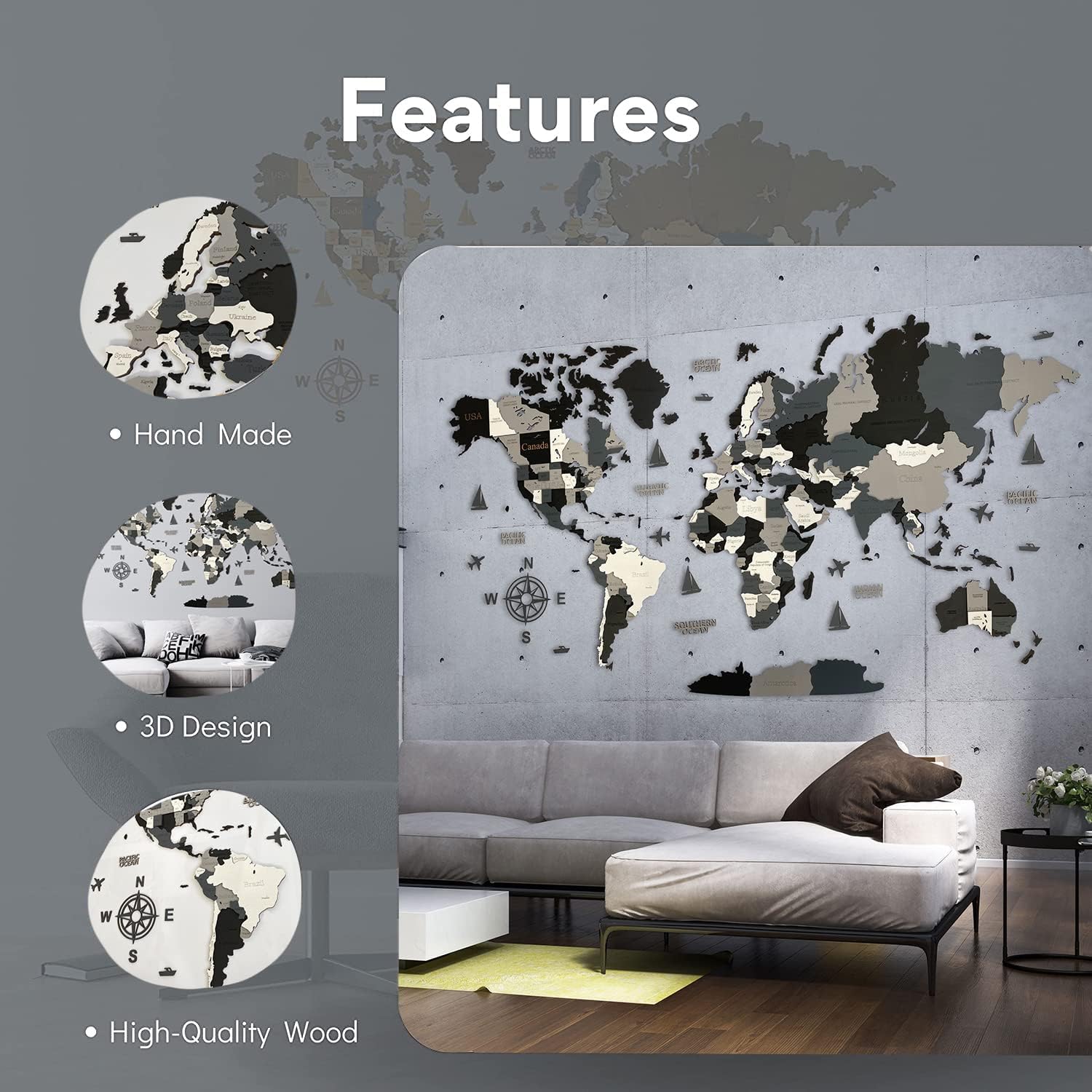 Mappa del mondo in legno,grande decorazione da parete in 3D,dimensioni (M & L & XL),idea regalo per ogni occasione,decorazione da parete per casa,cucina o ufficio