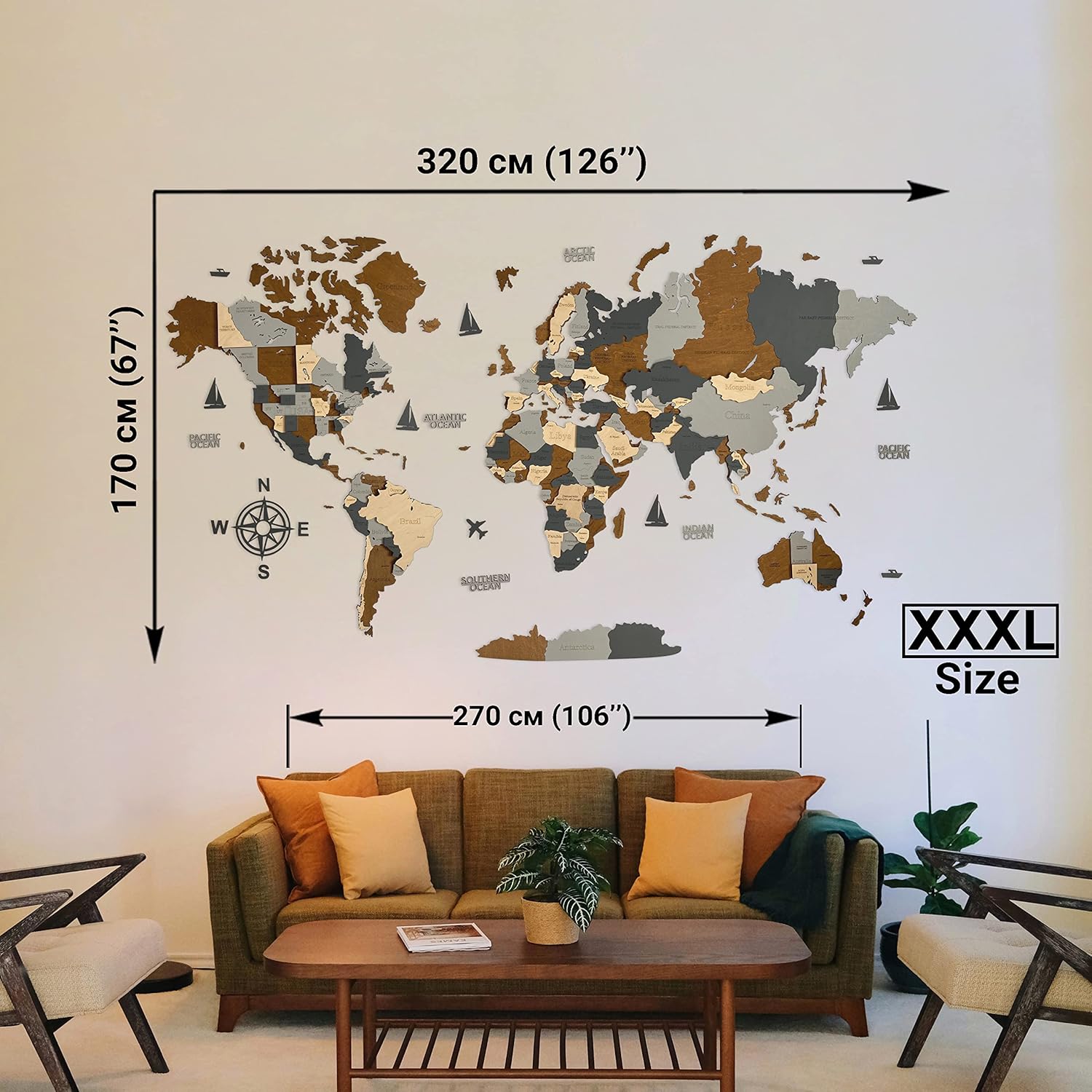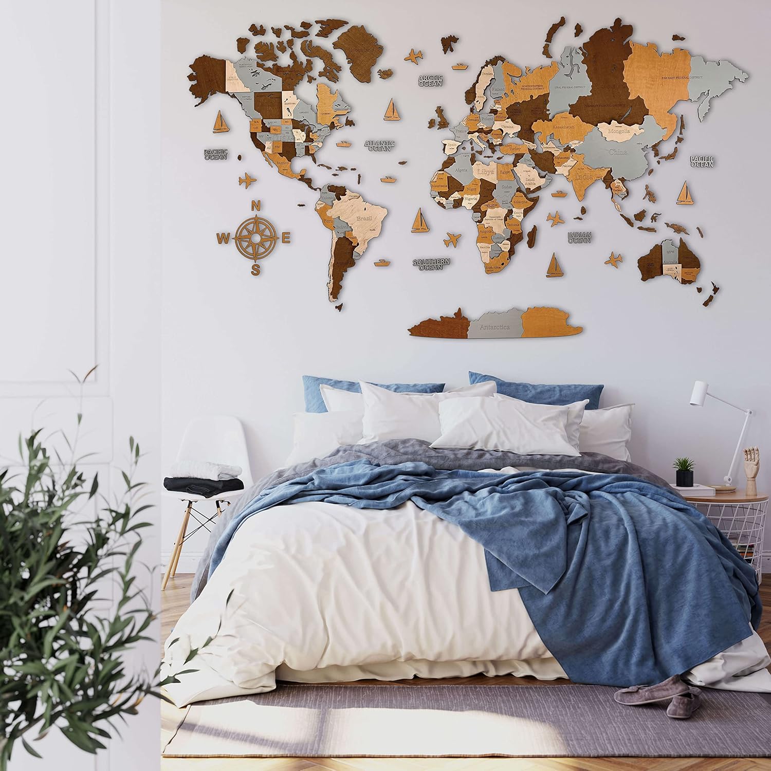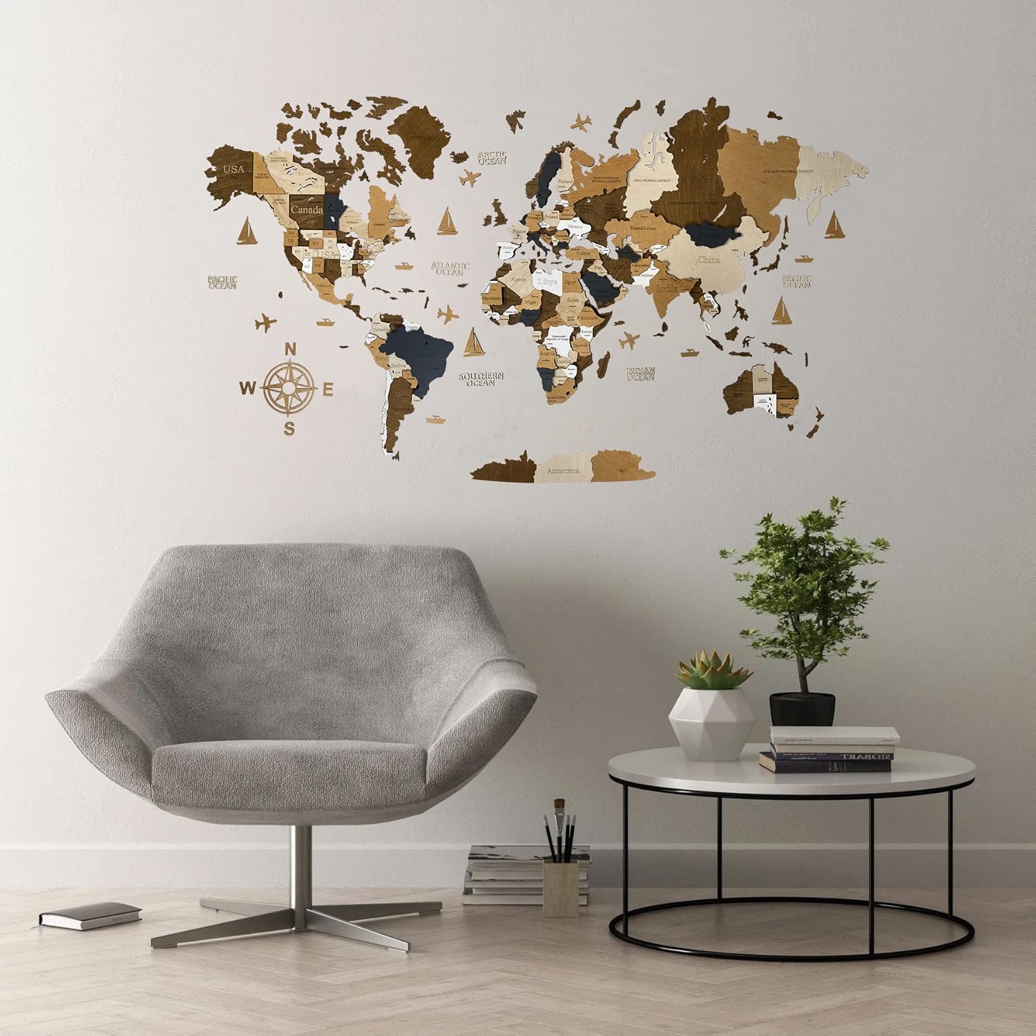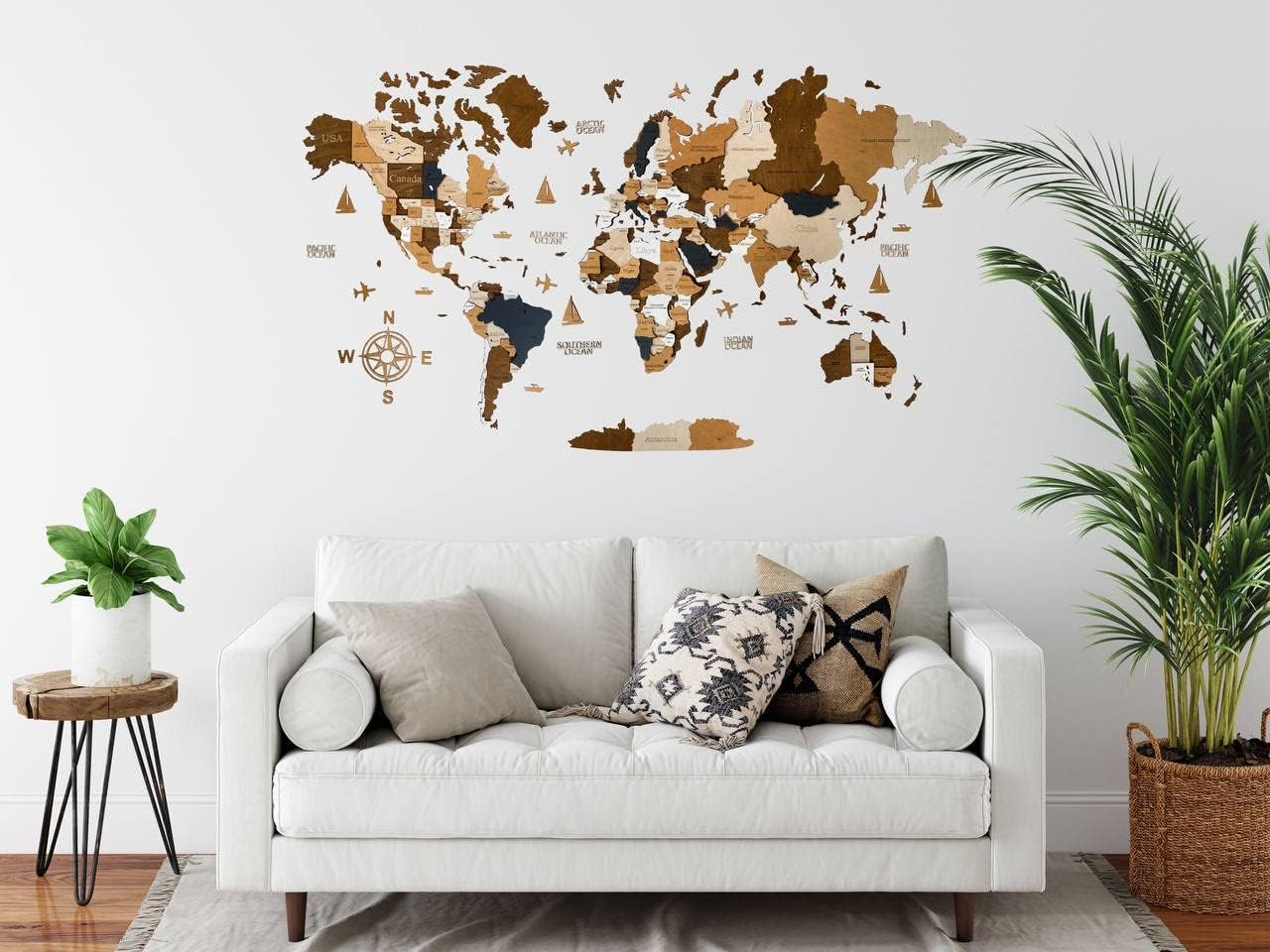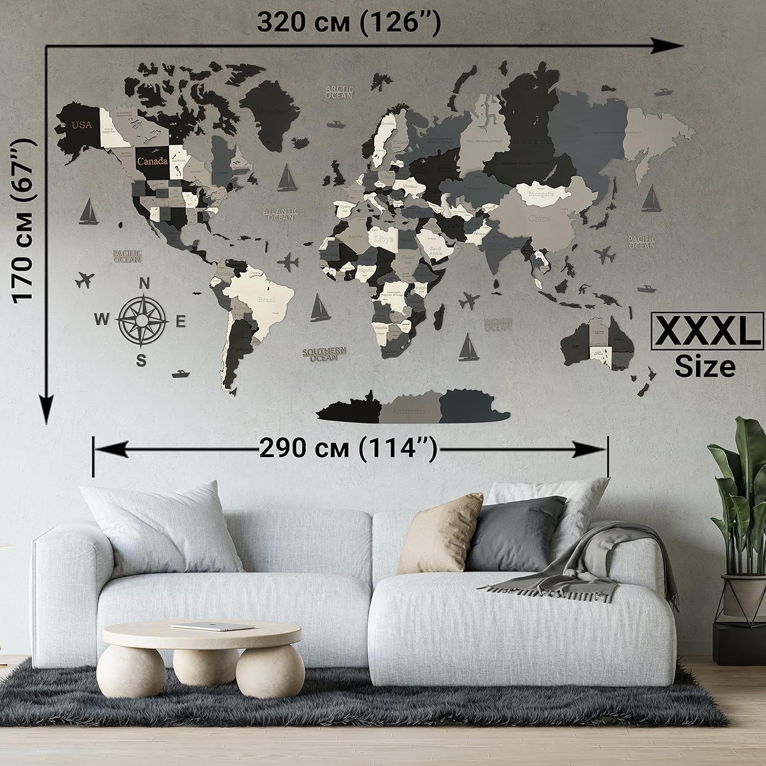 Mappa del mondo in legno,grande decorazione da parete in 3D,dimensioni (M & L & XL),idea regalo per ogni occasione,decorazione da parete per casa,cucina o ufficio