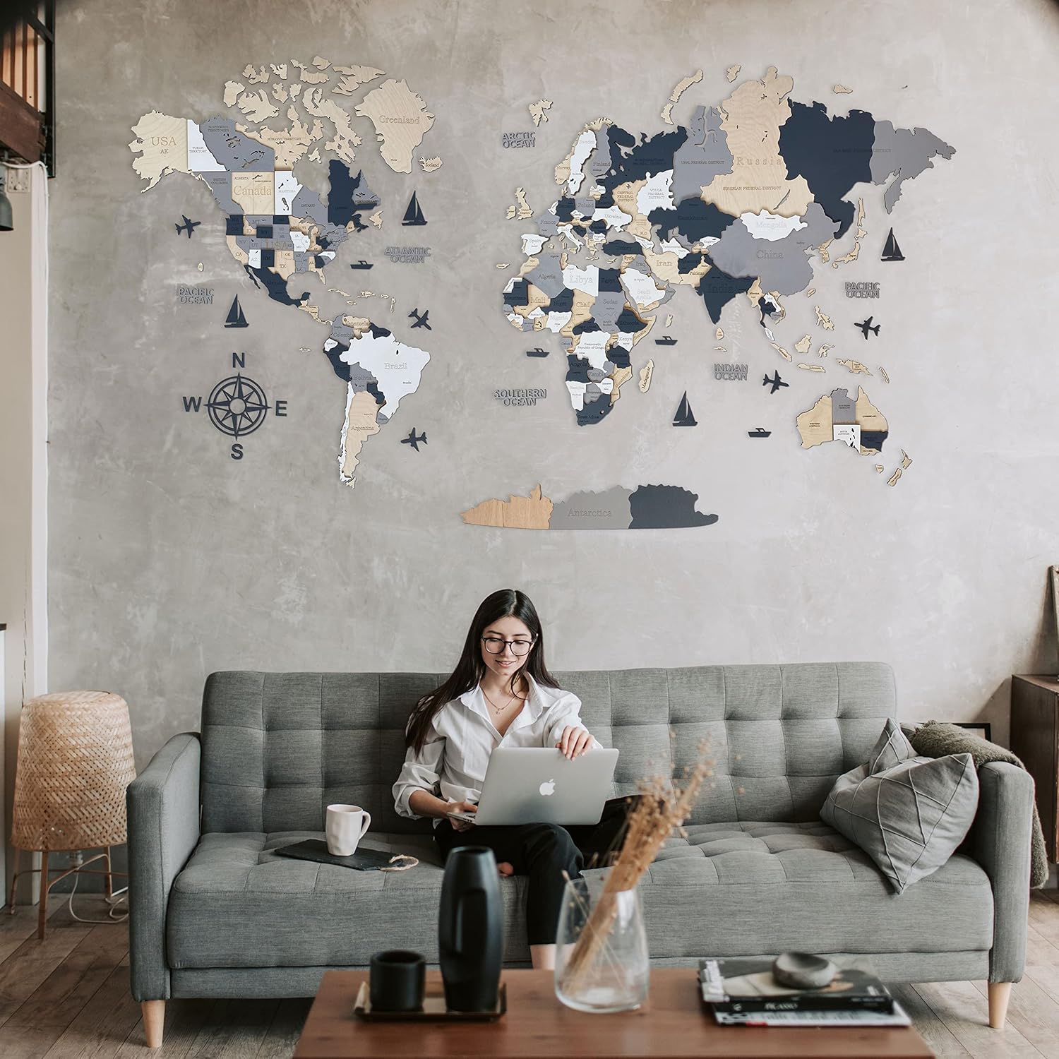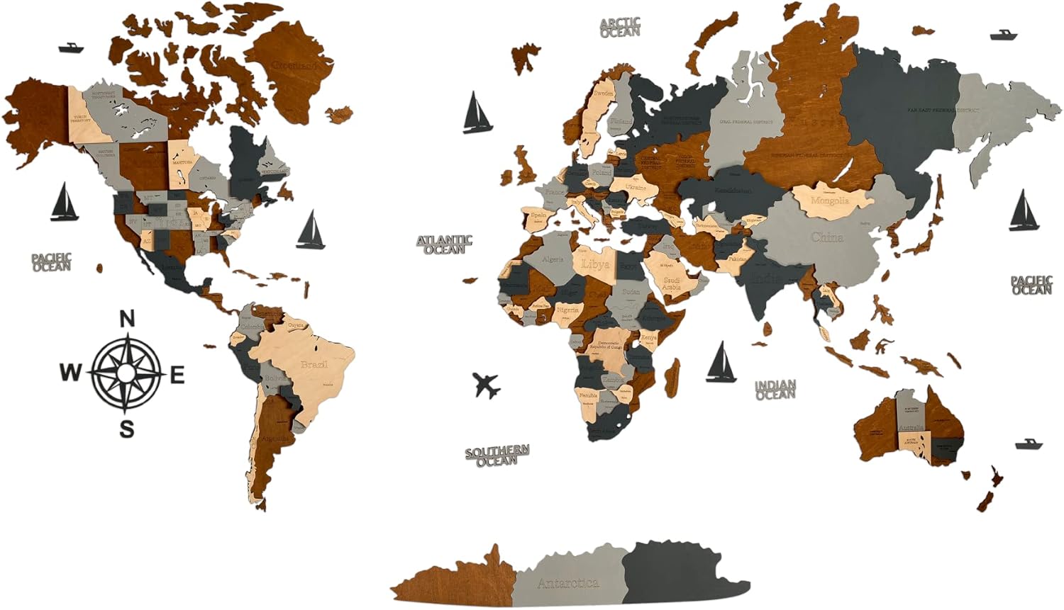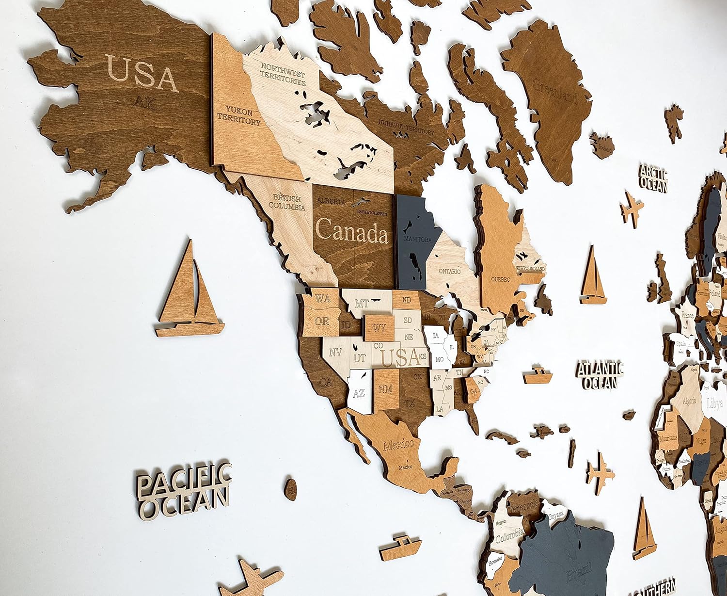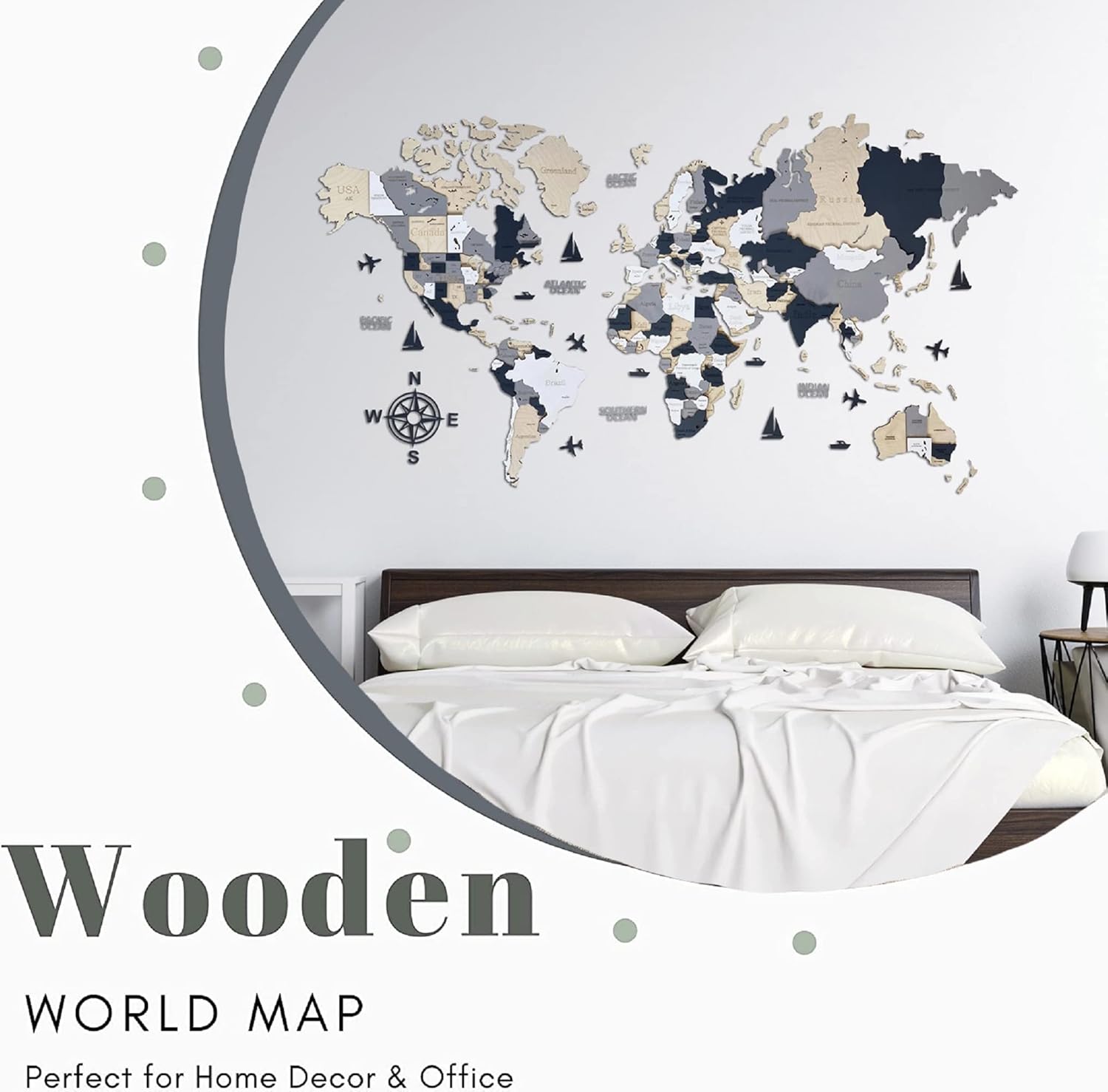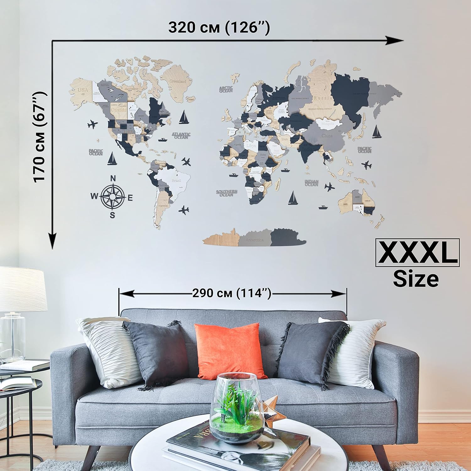 Mappa del mondo in legno,grande decorazione da parete in 3D,dimensioni (M & L & XL),idea regalo per ogni occasione,decorazione da parete per casa,cucina o ufficio