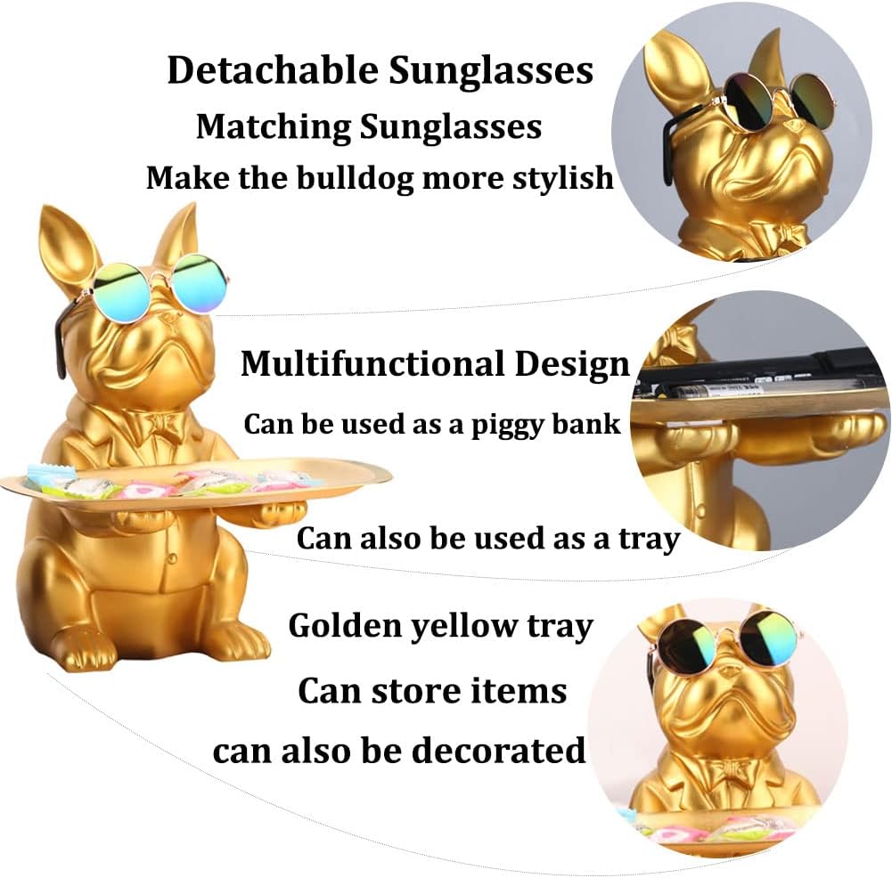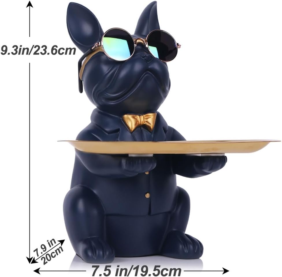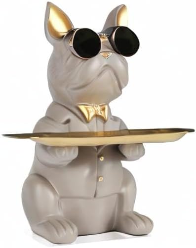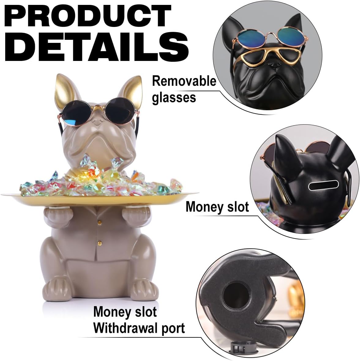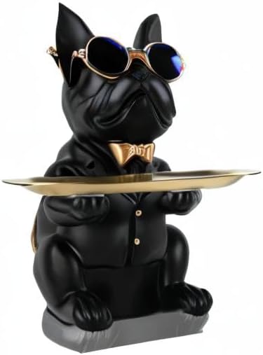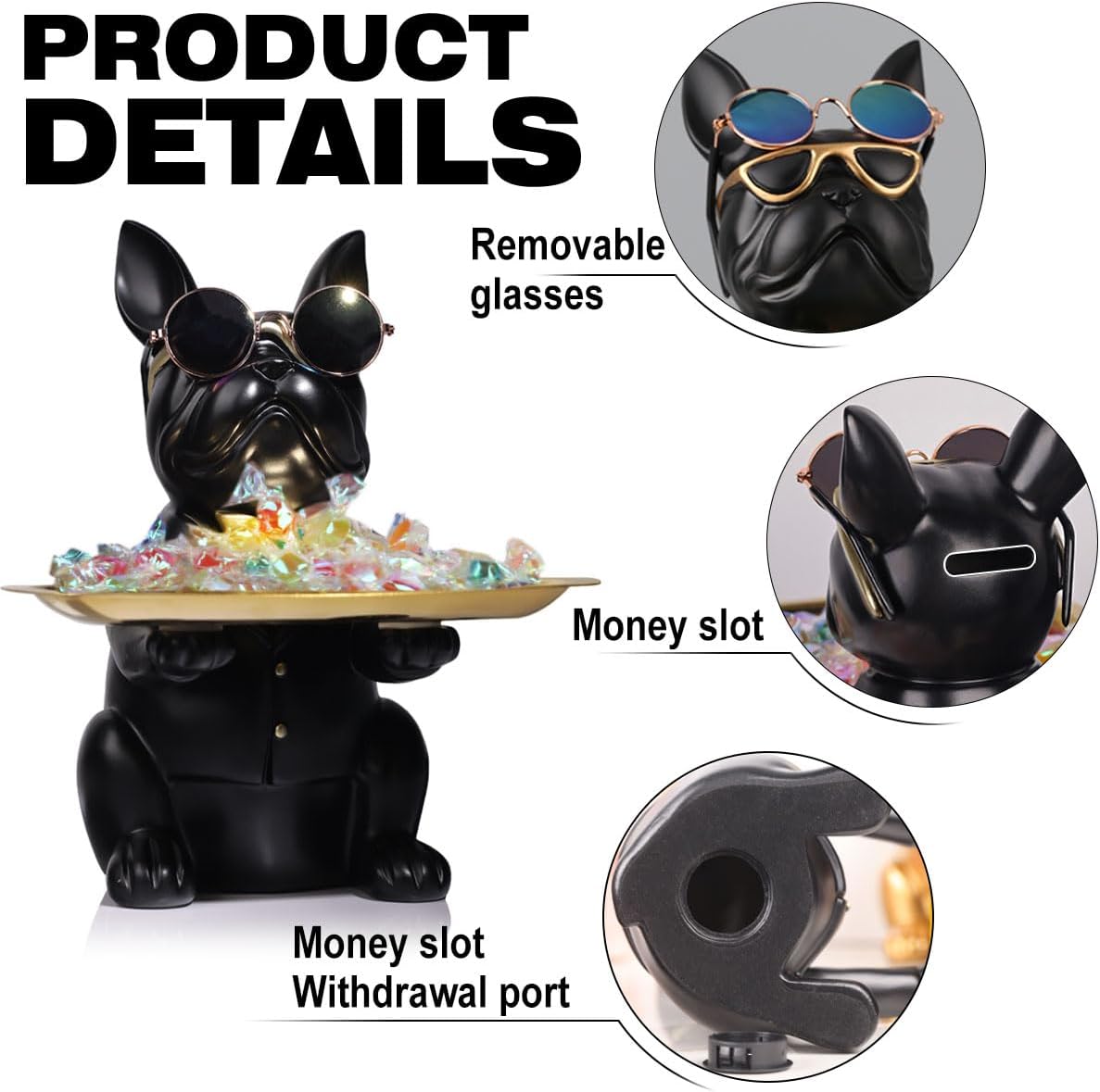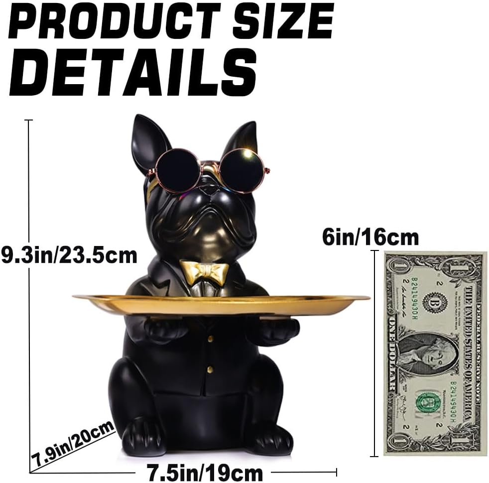 Nero Statua Del Vassoio Del Bulldog Francese - Con Vassoio in Acciaio Inossidabile, Vassoi Portaoggetti Salvadanaio Con Chiave Di Caramella