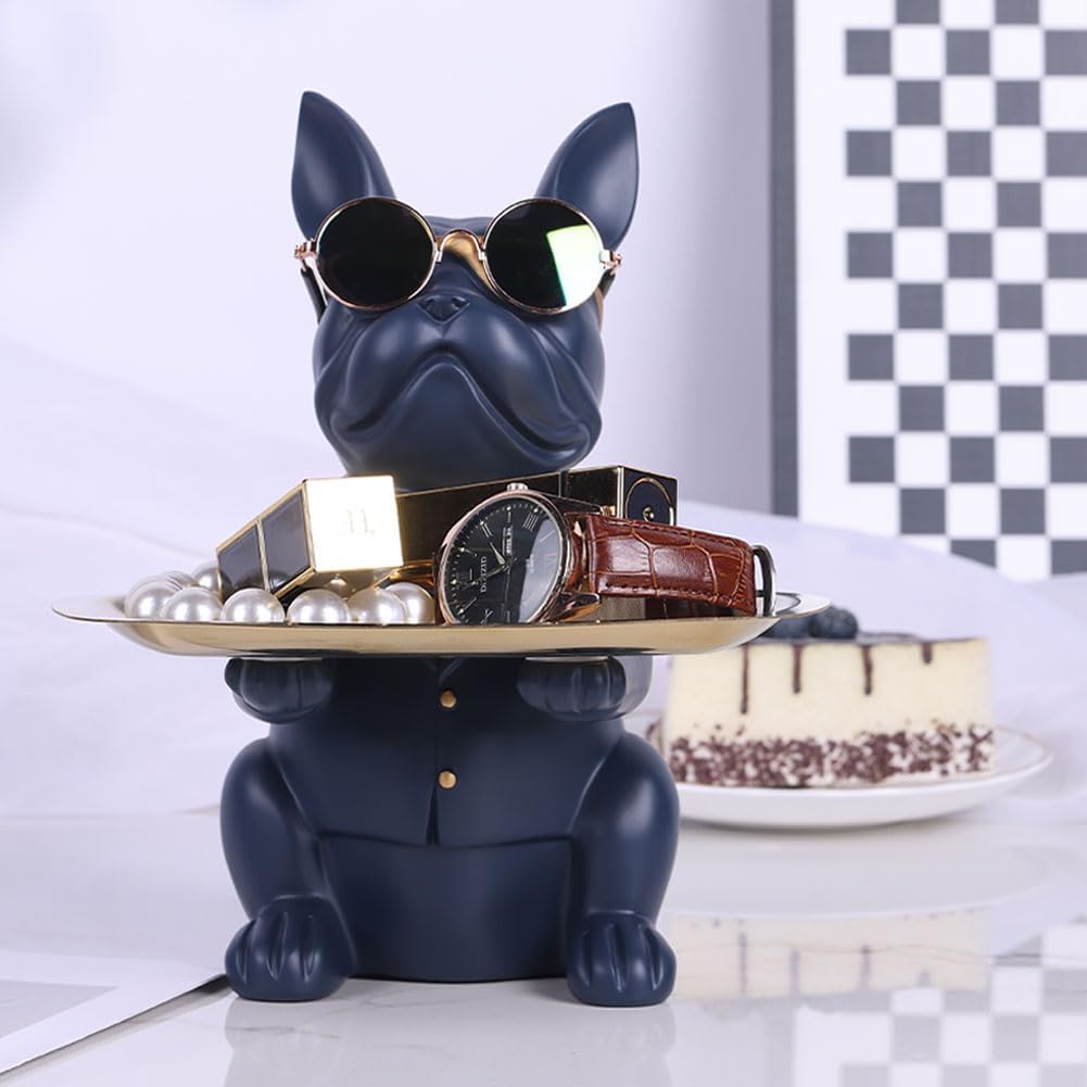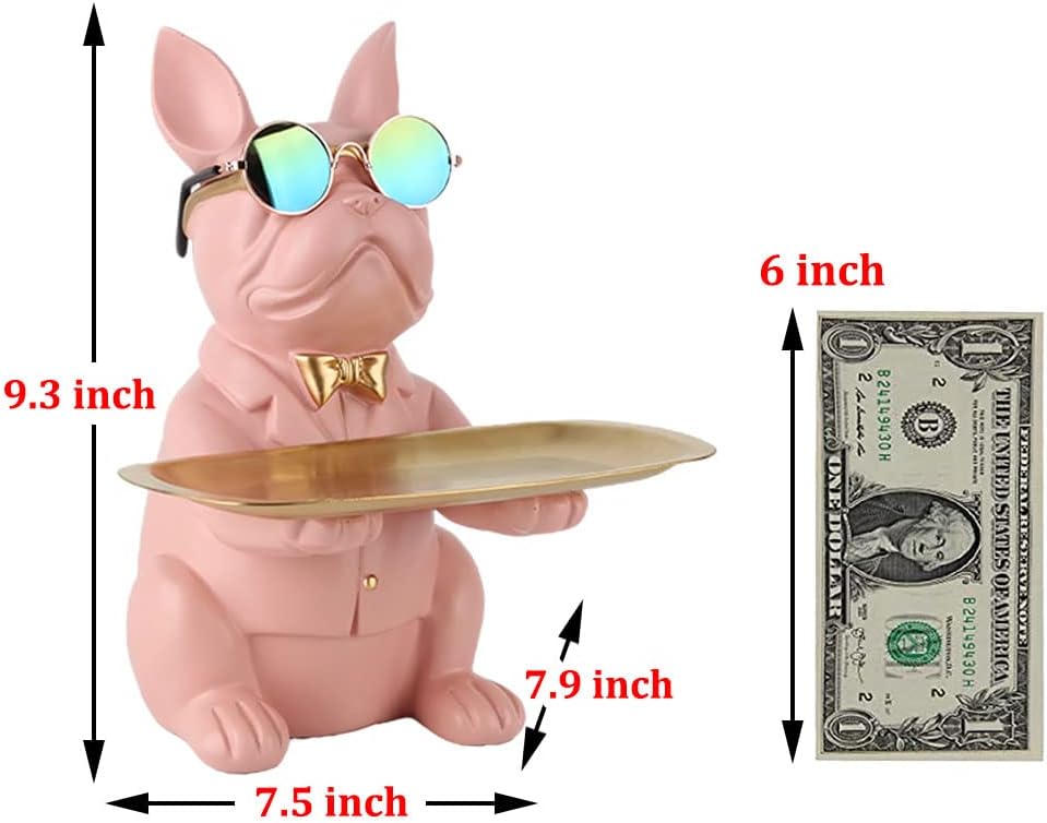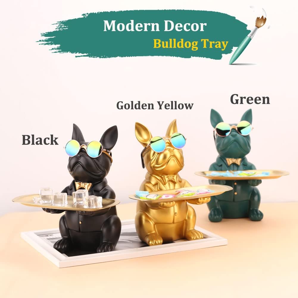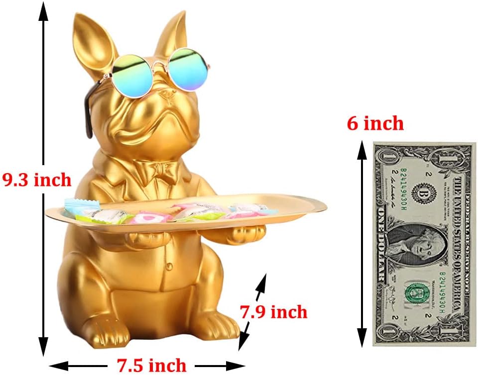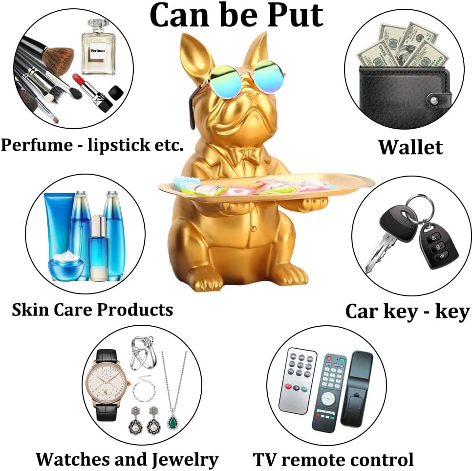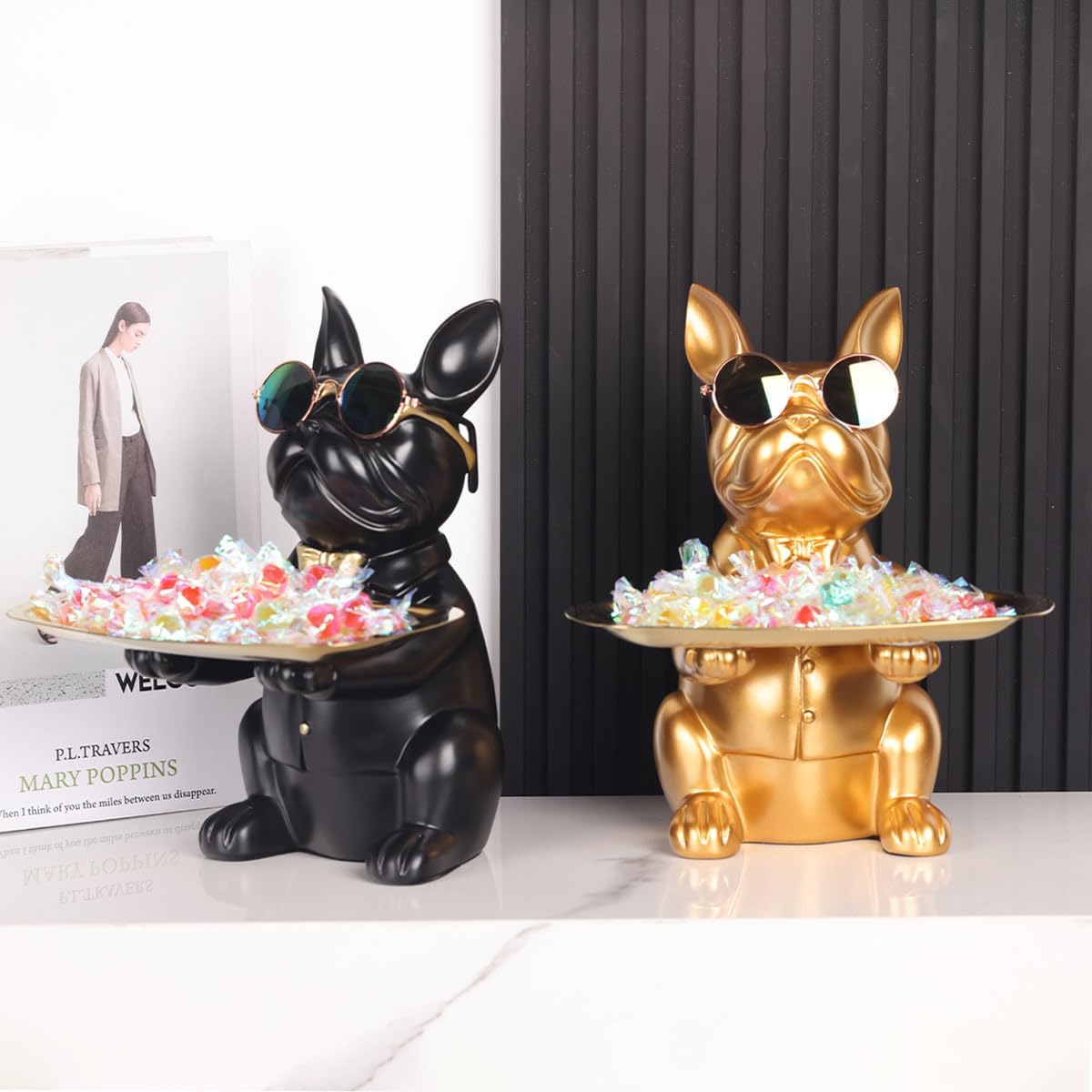 Nero Statua Del Vassoio Del Bulldog Francese - Con Vassoio in Acciaio Inossidabile, Vassoi Portaoggetti Salvadanaio Con Chiave Di Caramella