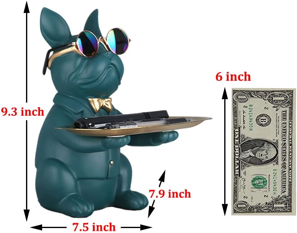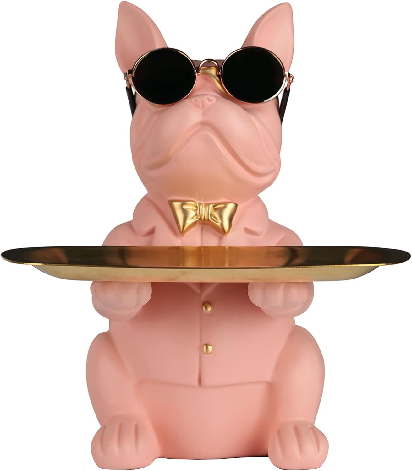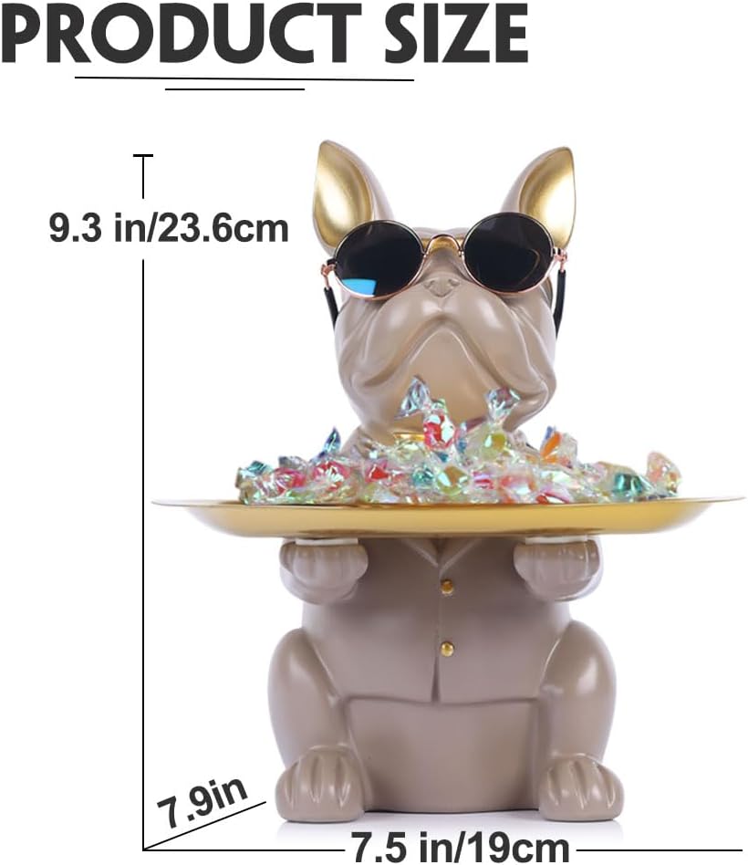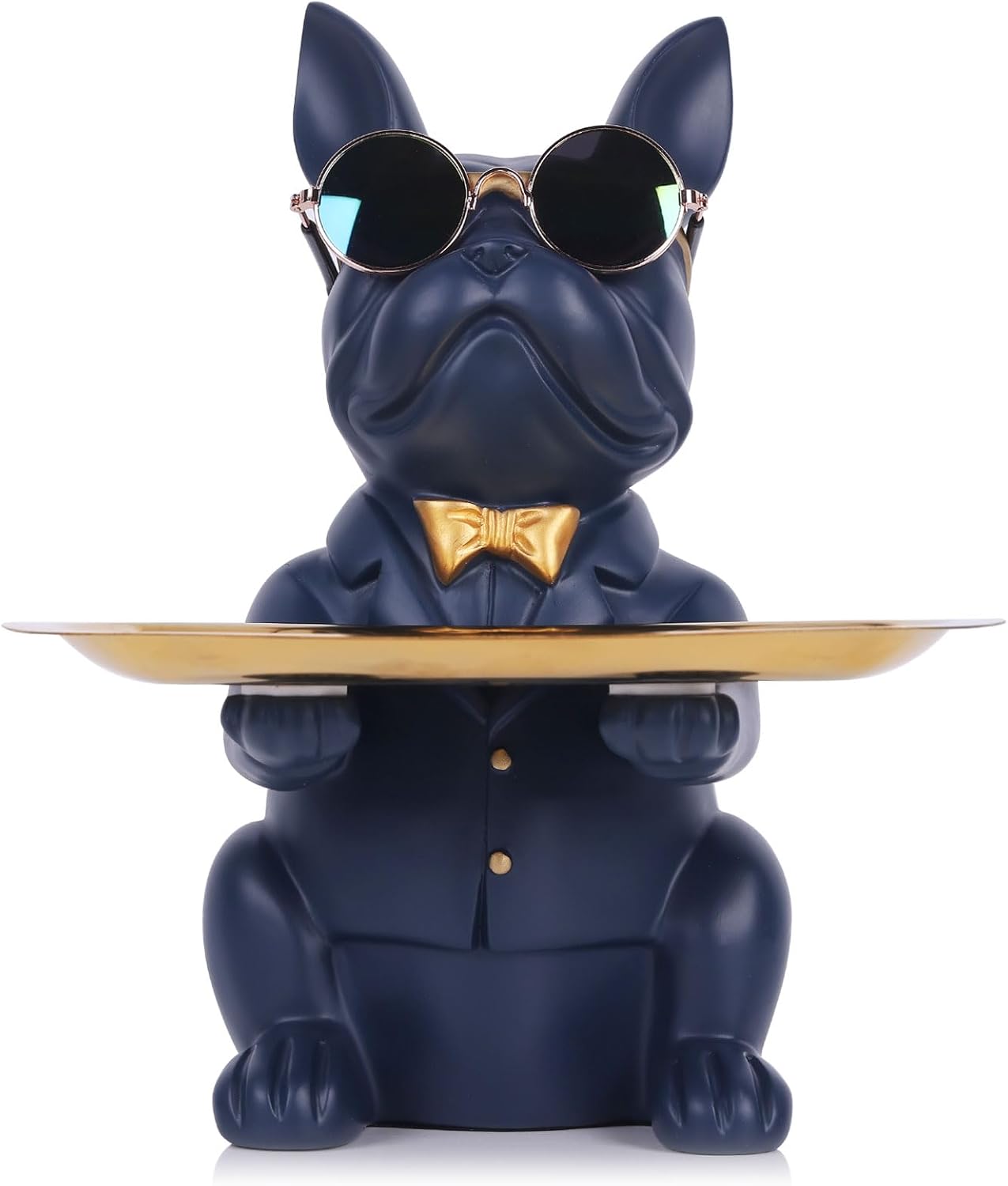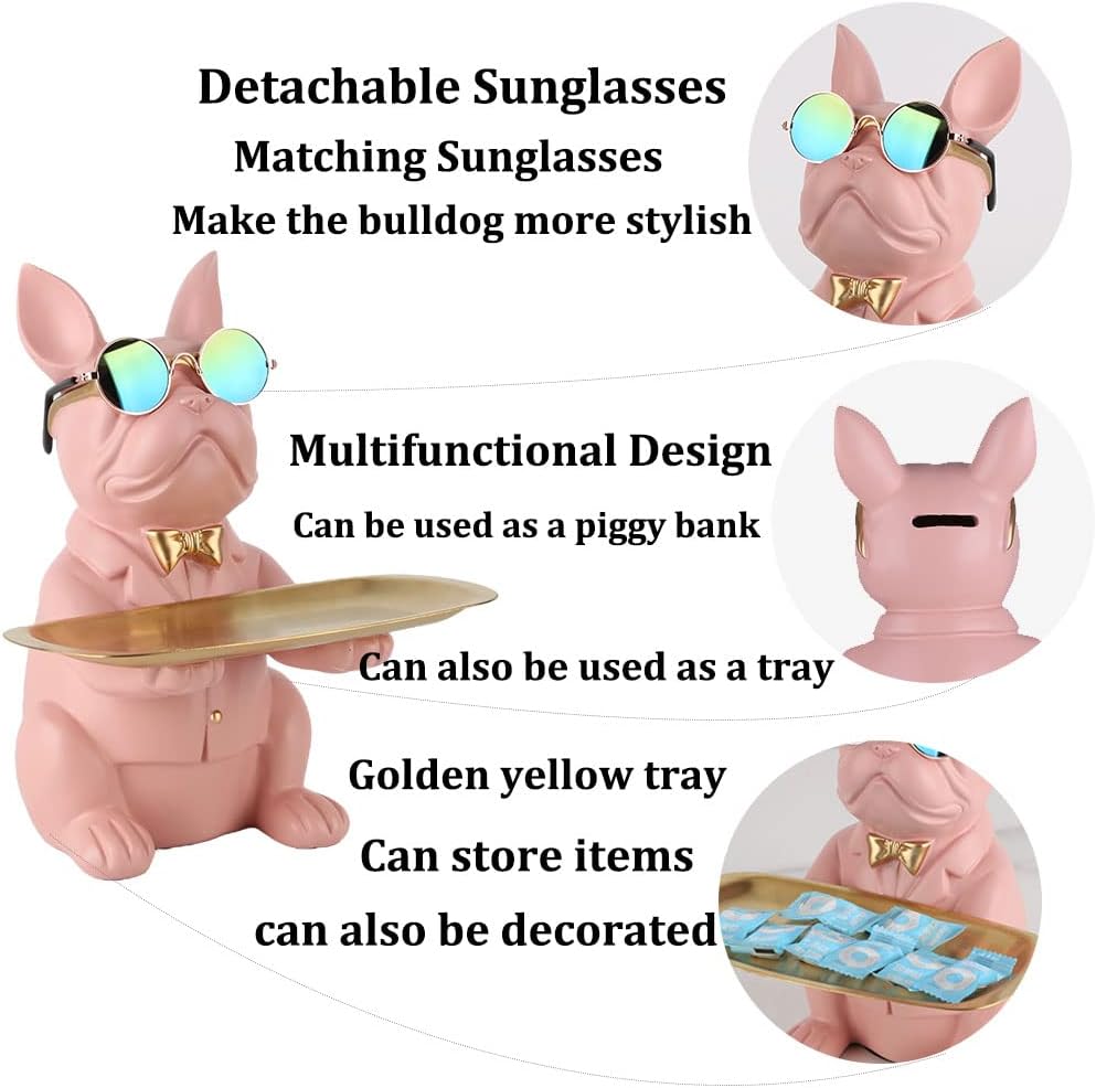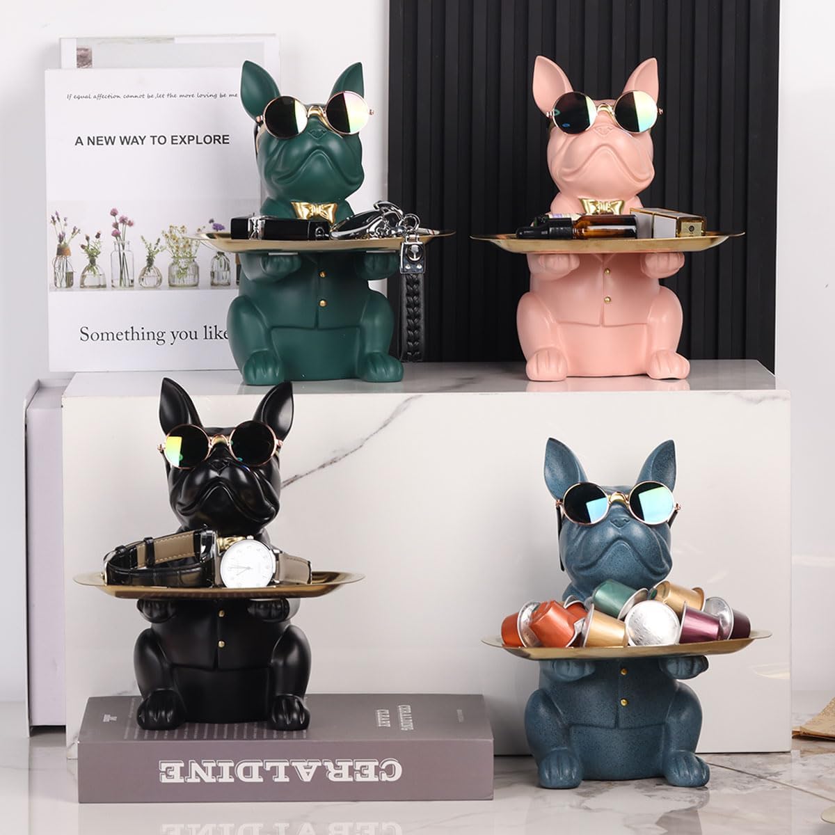 Nero Statua Del Vassoio Del Bulldog Francese - Con Vassoio in Acciaio Inossidabile, Vassoi Portaoggetti Salvadanaio Con Chiave Di Caramella