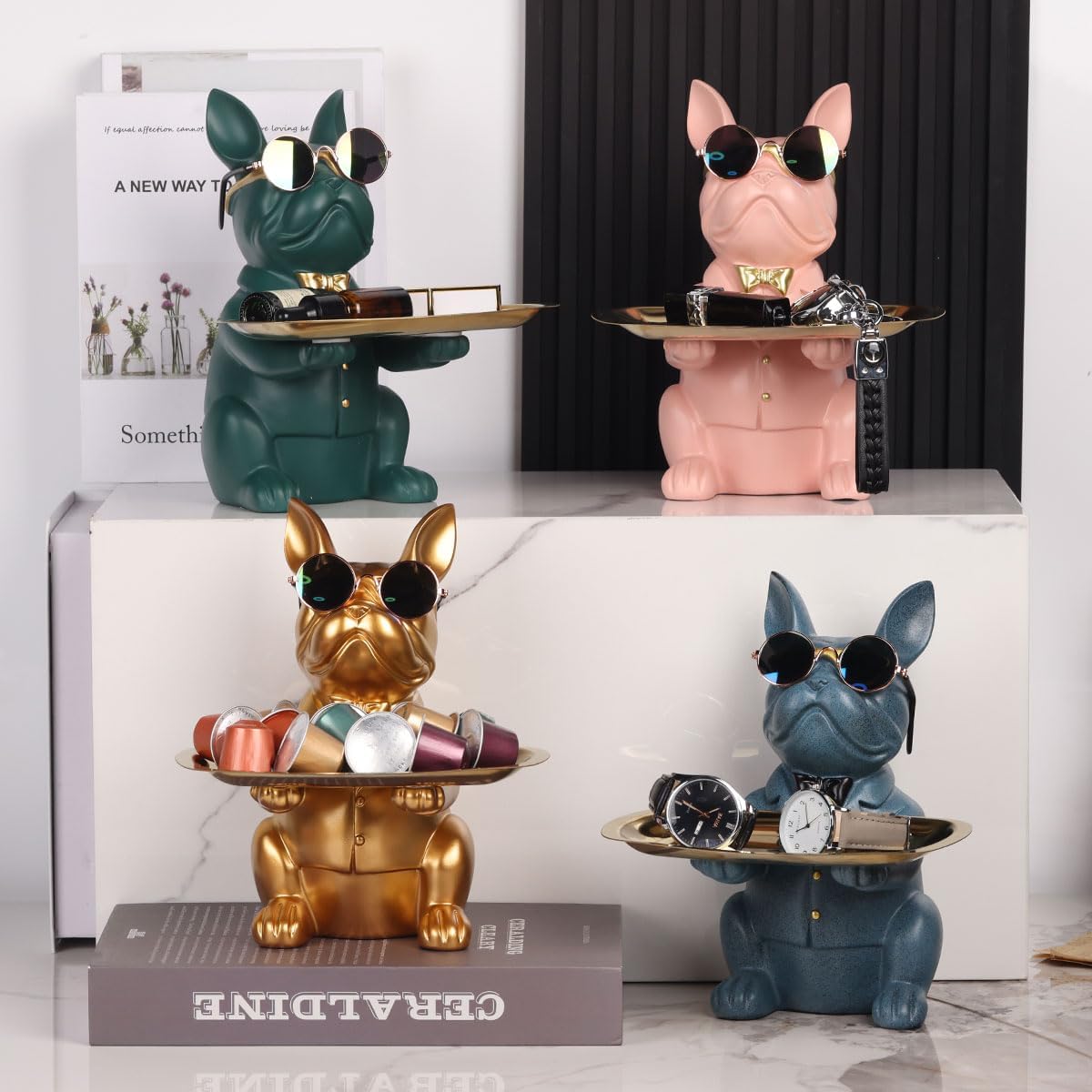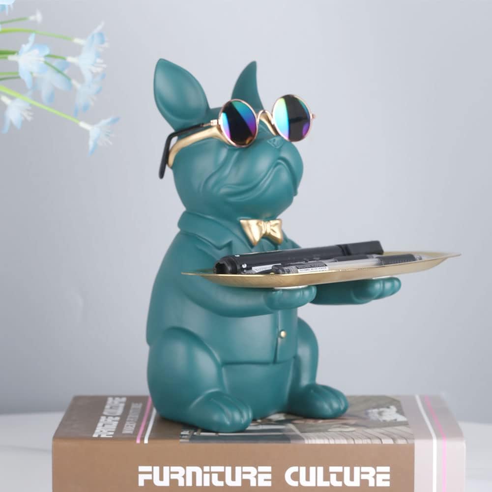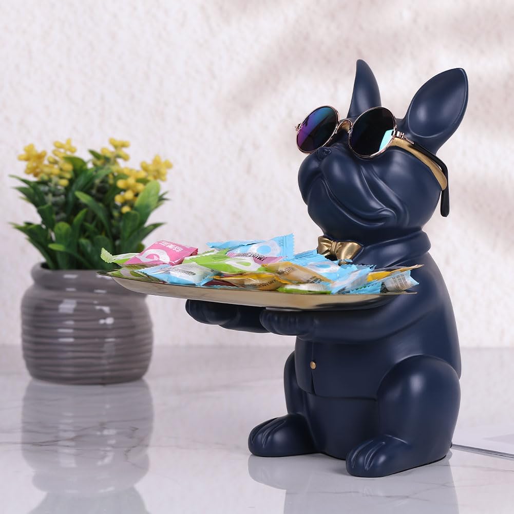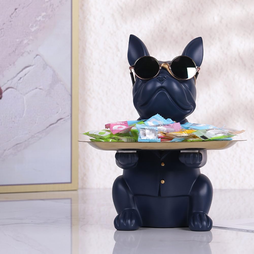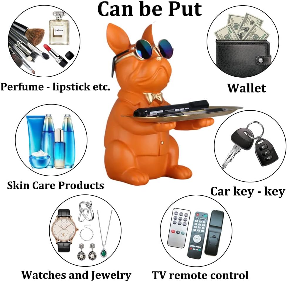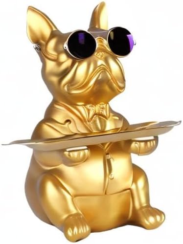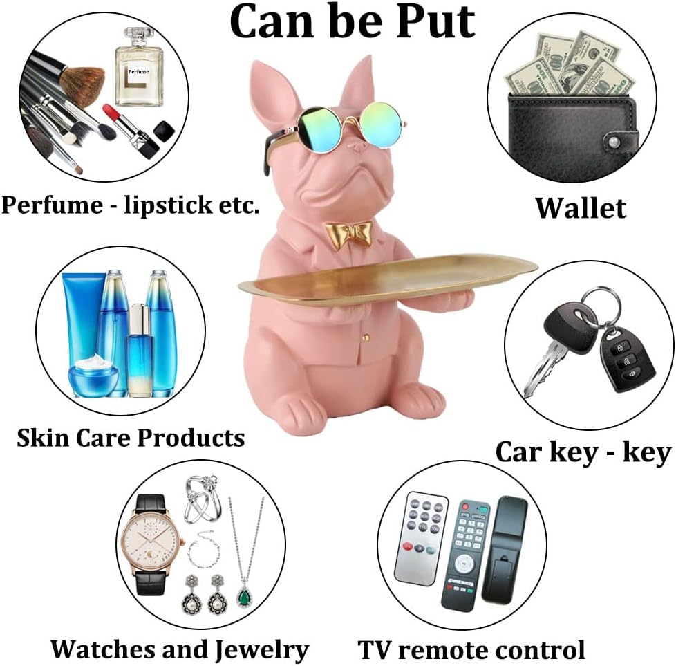Nero Statua Del Vassoio Del Bulldog Francese - Con Vassoio in Acciaio Inossidabile, Vassoi Portaoggetti Salvadanaio Con Chiave Di Caramella