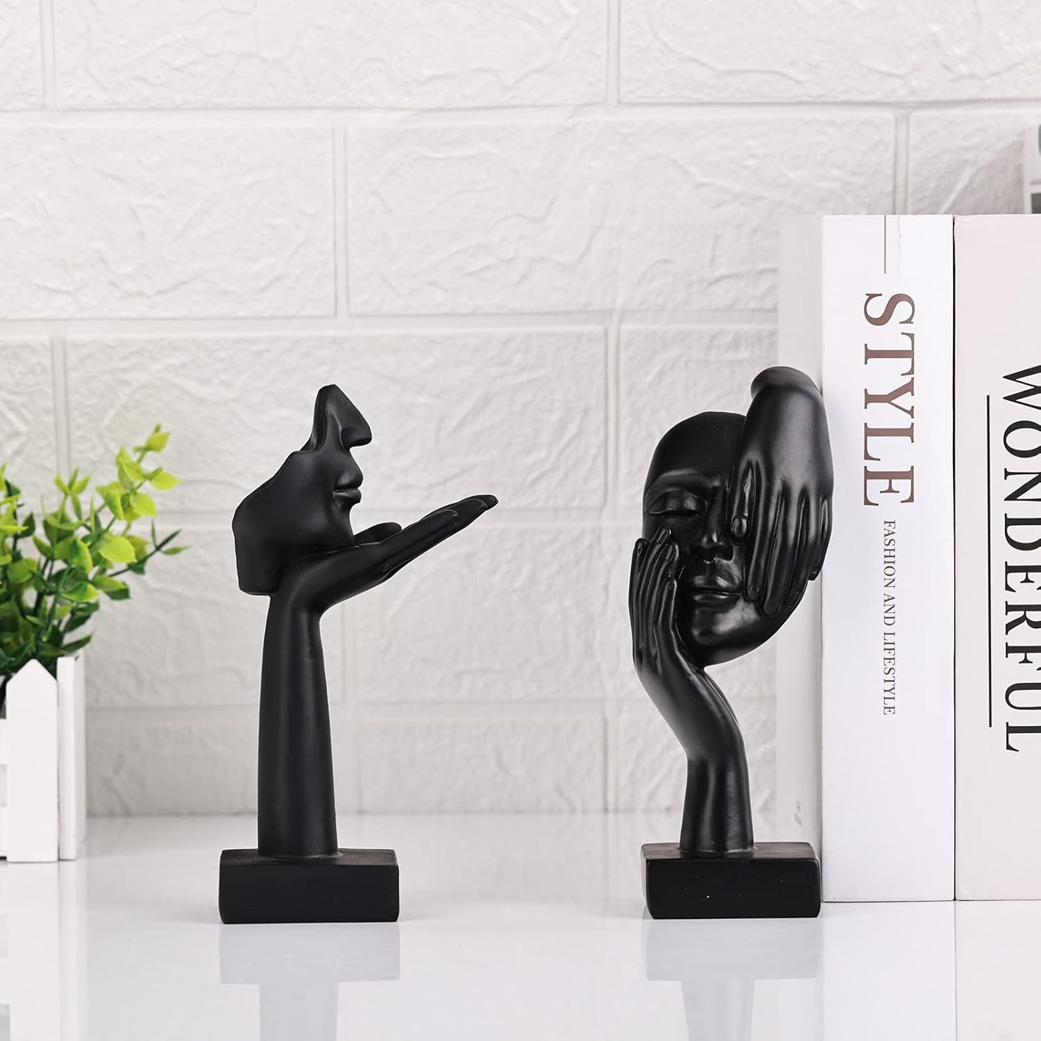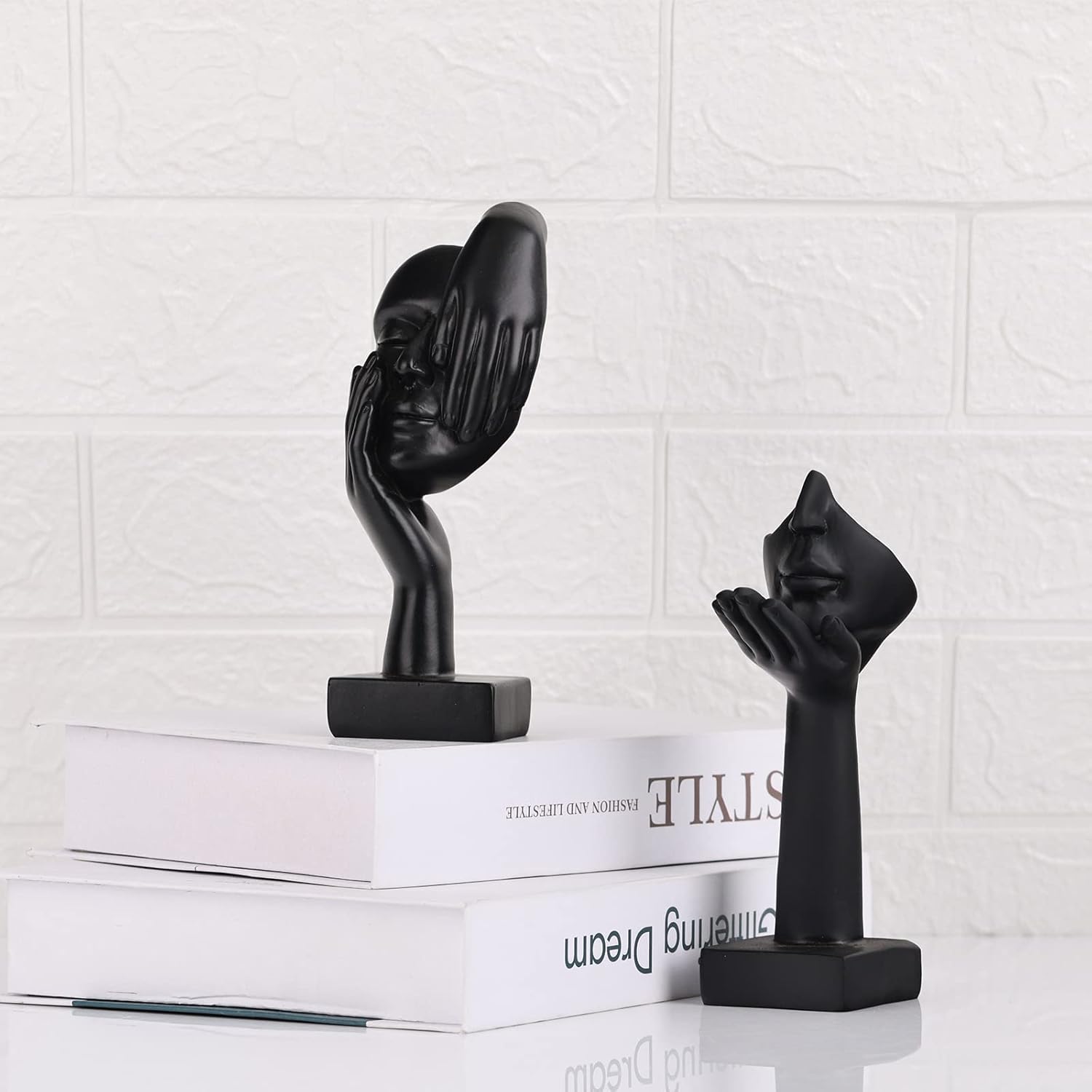 oliruim Decorazione per la casa nera, statua con volto di donna, statua da collezione per casa moderna, soggiorno, libreria, decorazione da scrivania nera, set da 3 pezzi (3 pezzi nero)