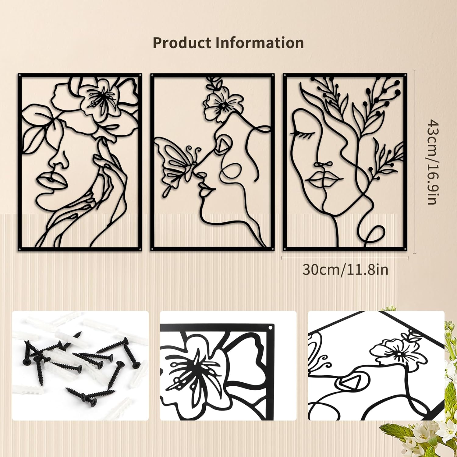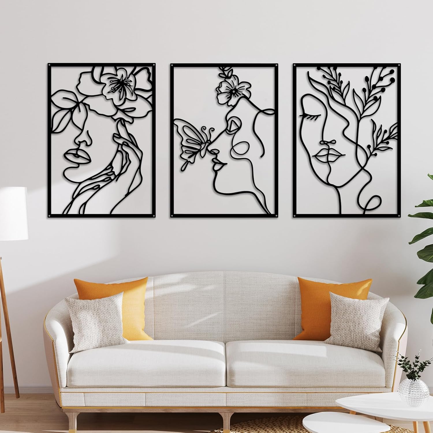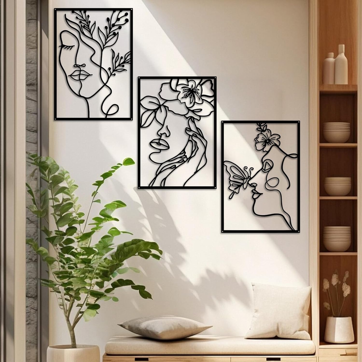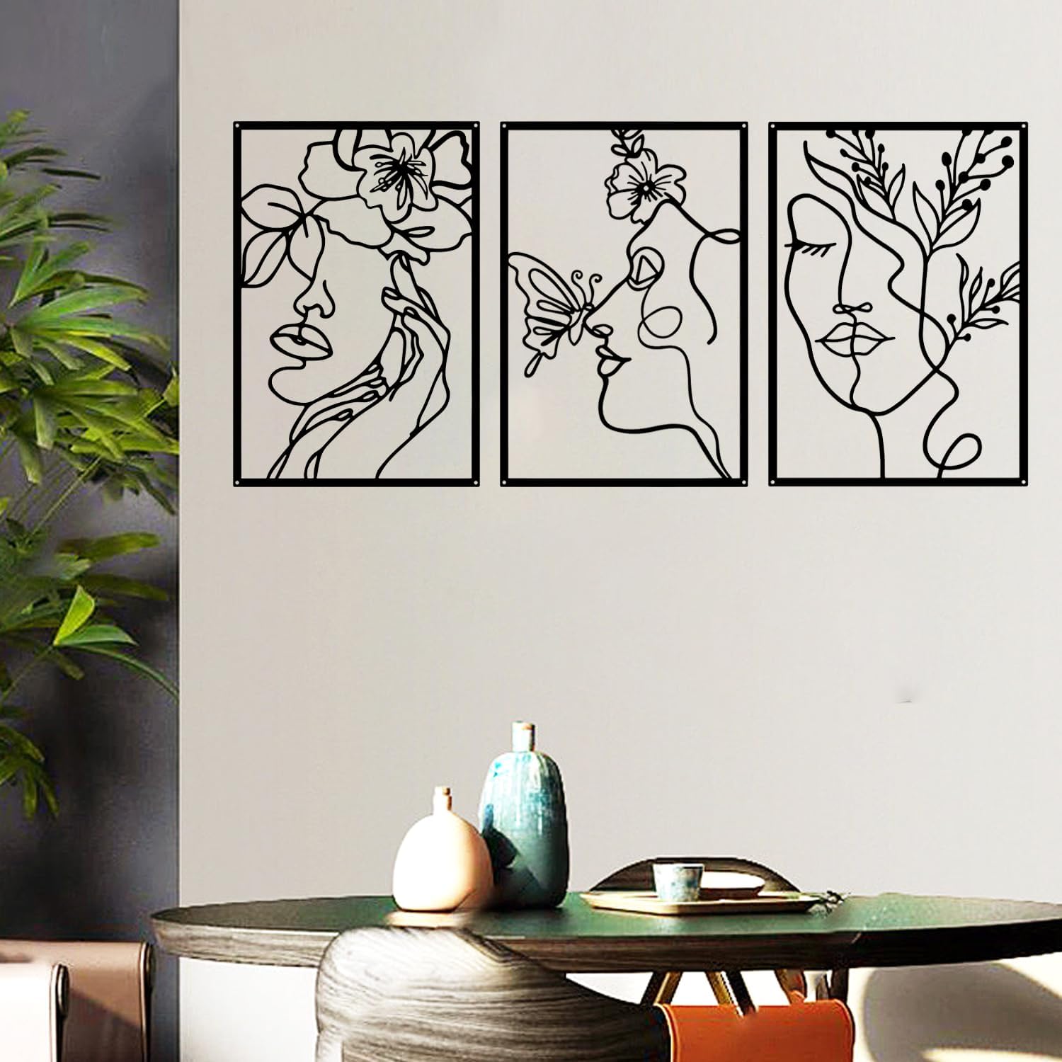 YiYa Nero Decorazione in Metallo da Parete Decorazione da Parete Minimalista Arte Appeso a Linea Singola Decorazione da Parete Nero per Camera da Letto Soggiorno Bagno Balcone Galleria