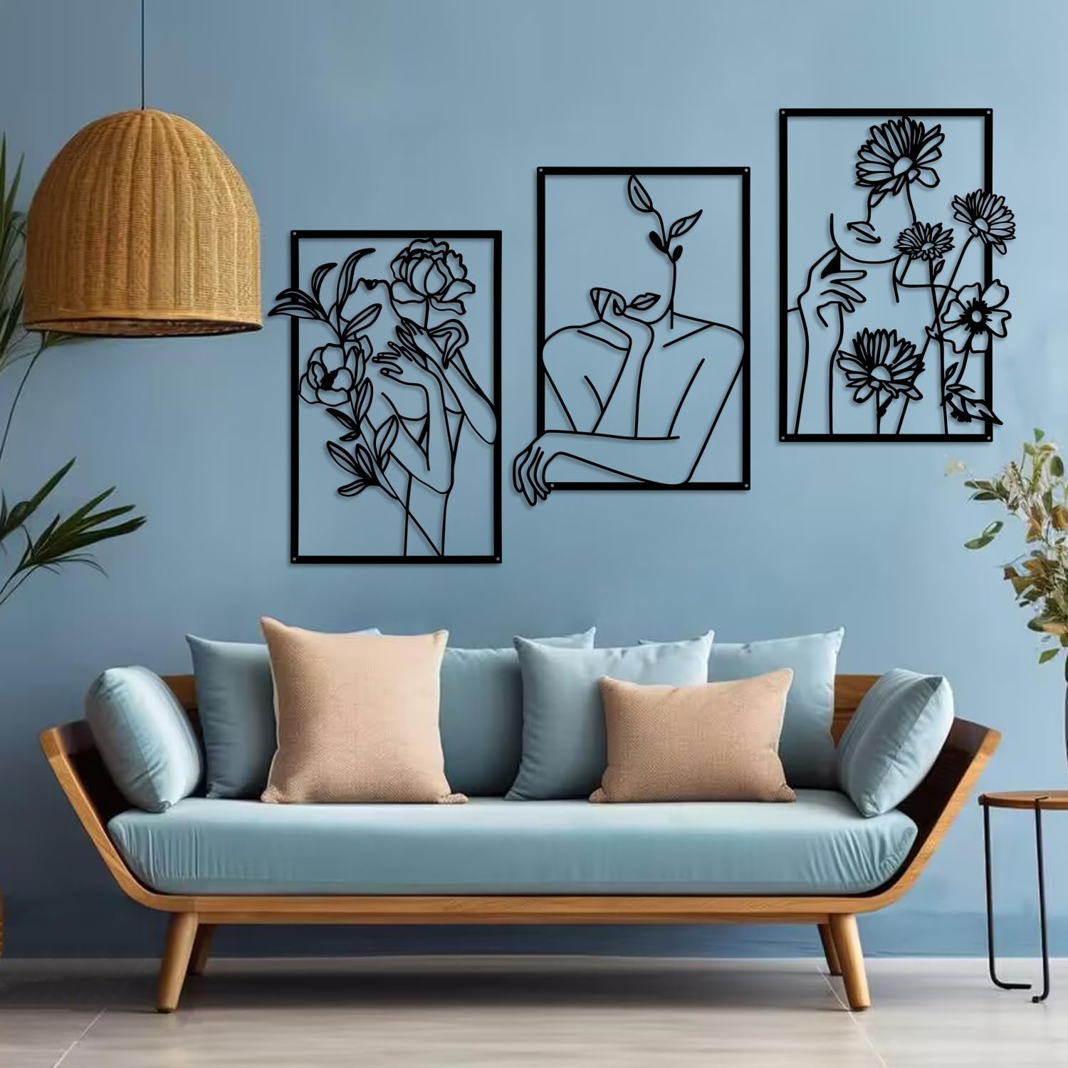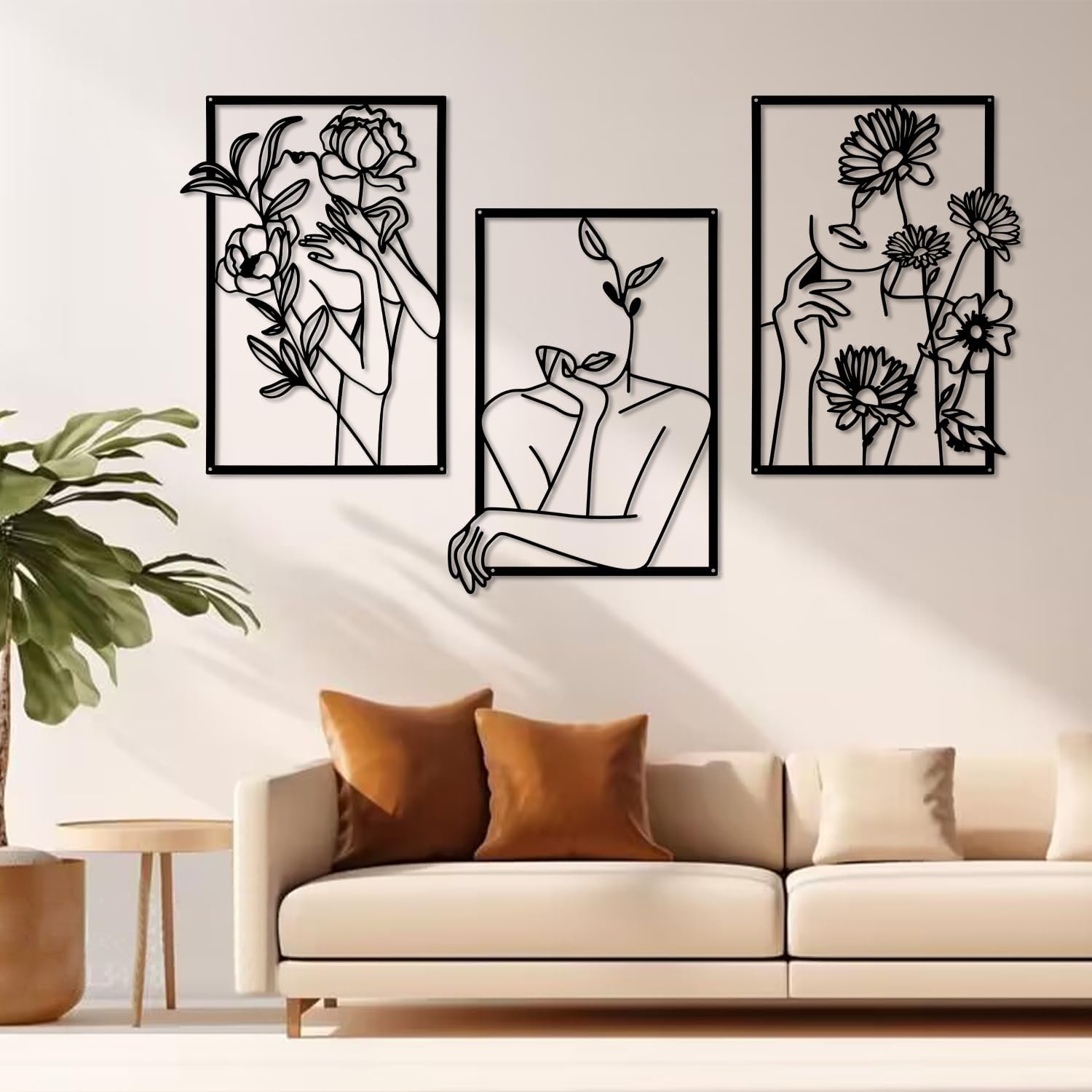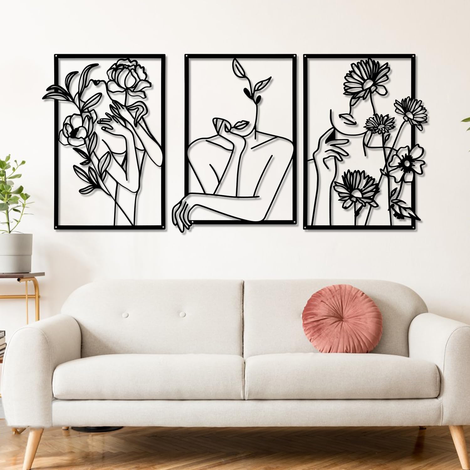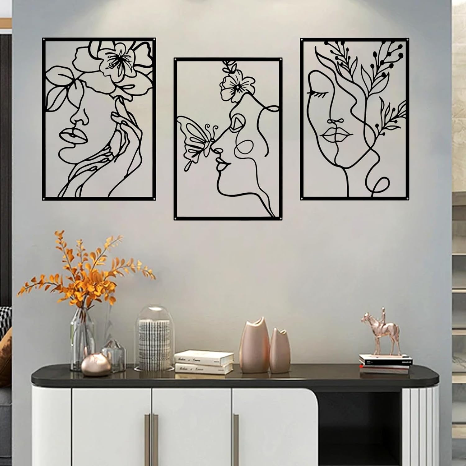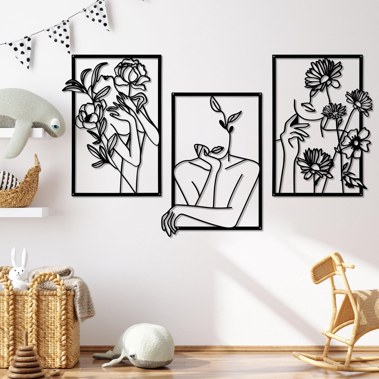 YiYa Nero Decorazione in Metallo da Parete Decorazione da Parete Minimalista Arte Appeso a Linea Singola Decorazione da Parete Nero per Camera da Letto Soggiorno Bagno Balcone Galleria