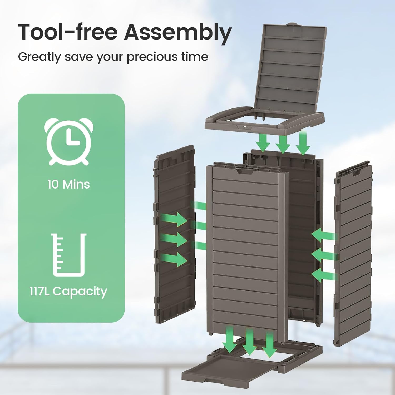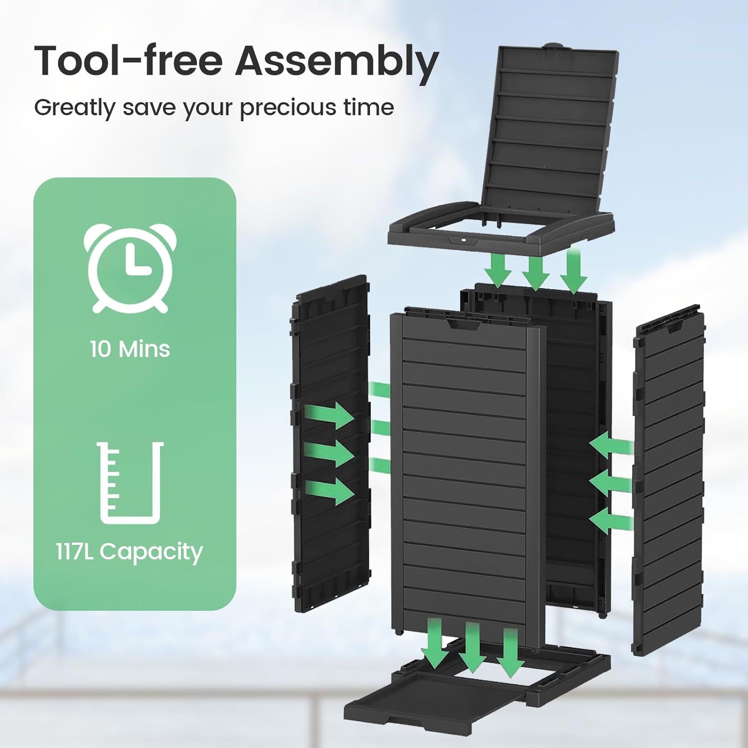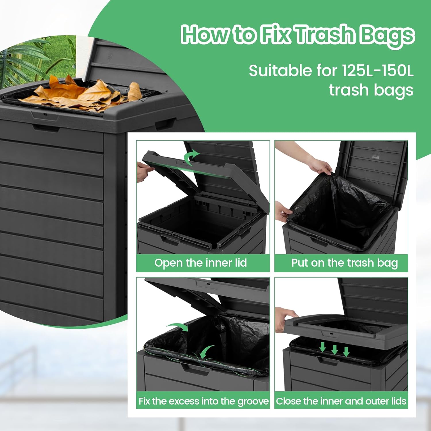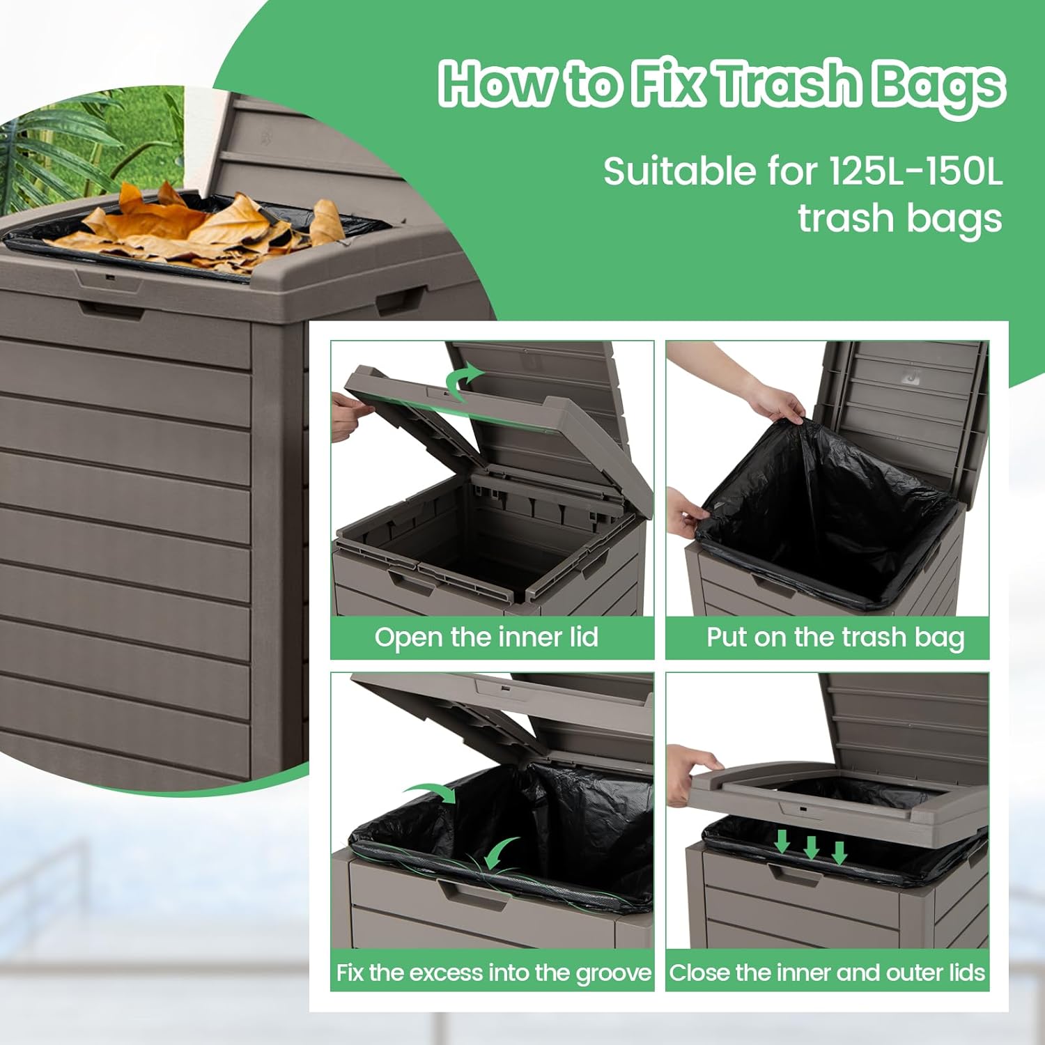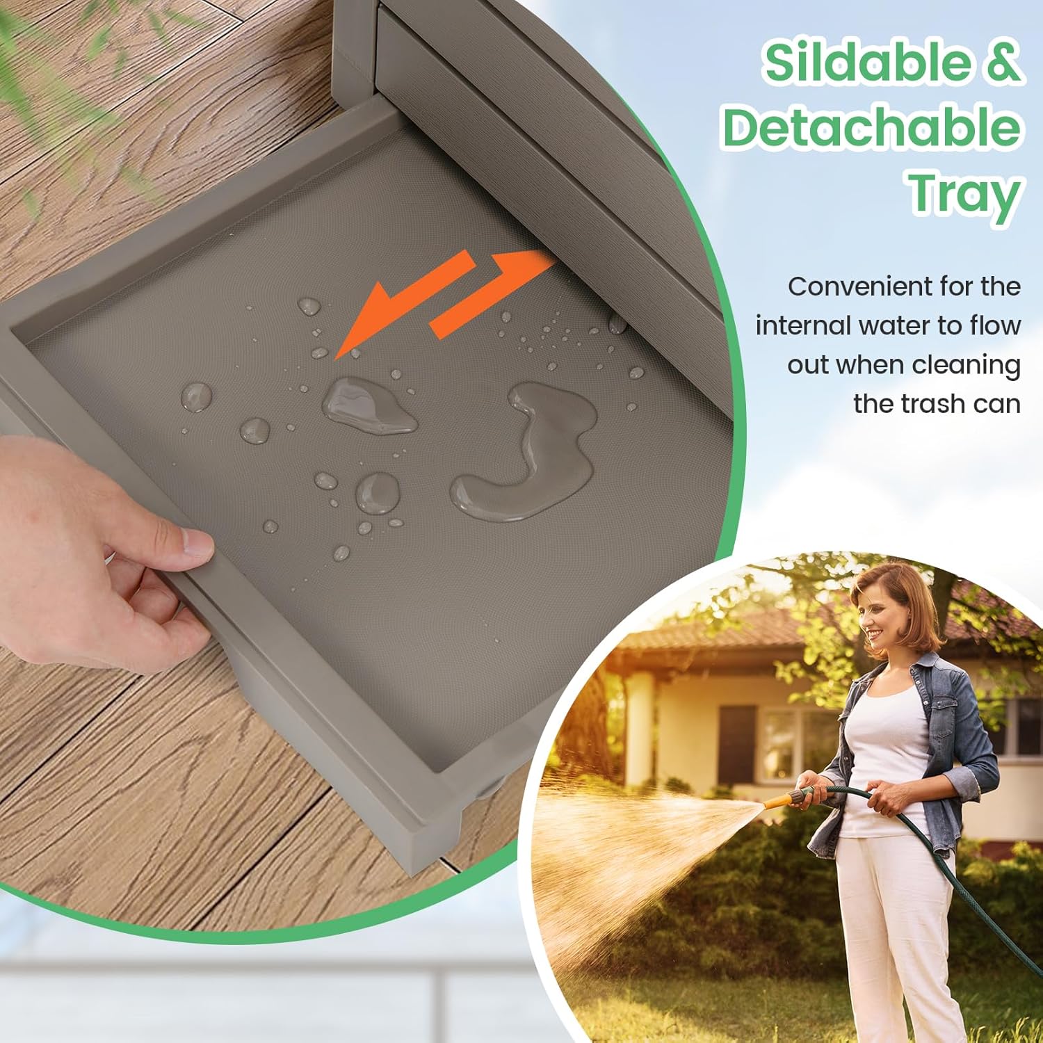 GIANTEX Bidone Spazzatura 118L con Coperchio e Maniglia, Contenitore Rifiuti Giardino con Vaschetta Raccolta Estraibile, Impermeabile per Terrazze