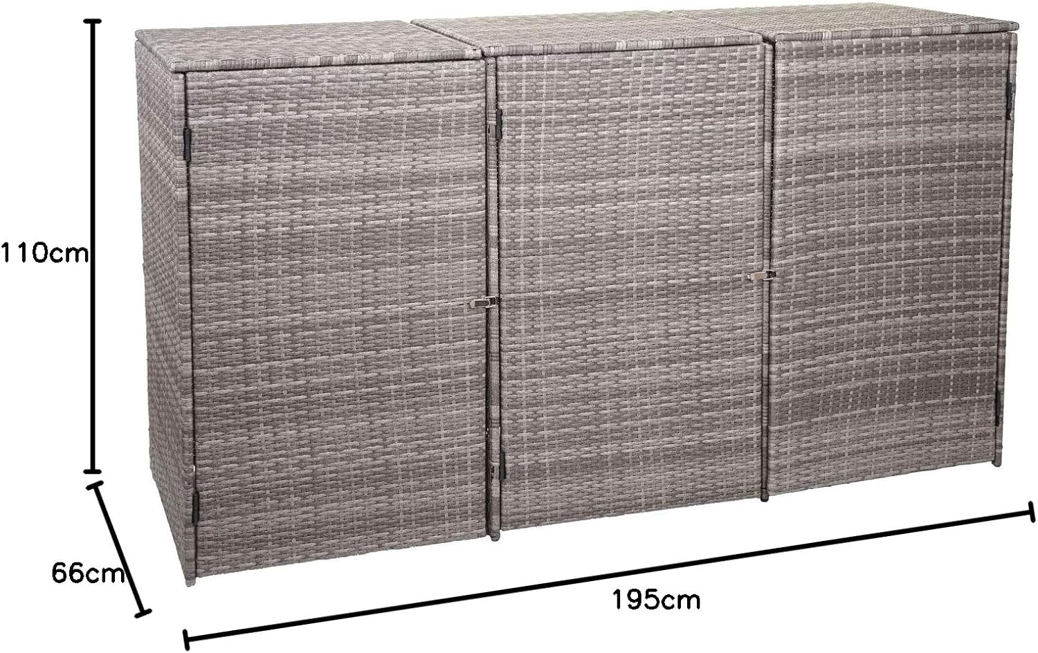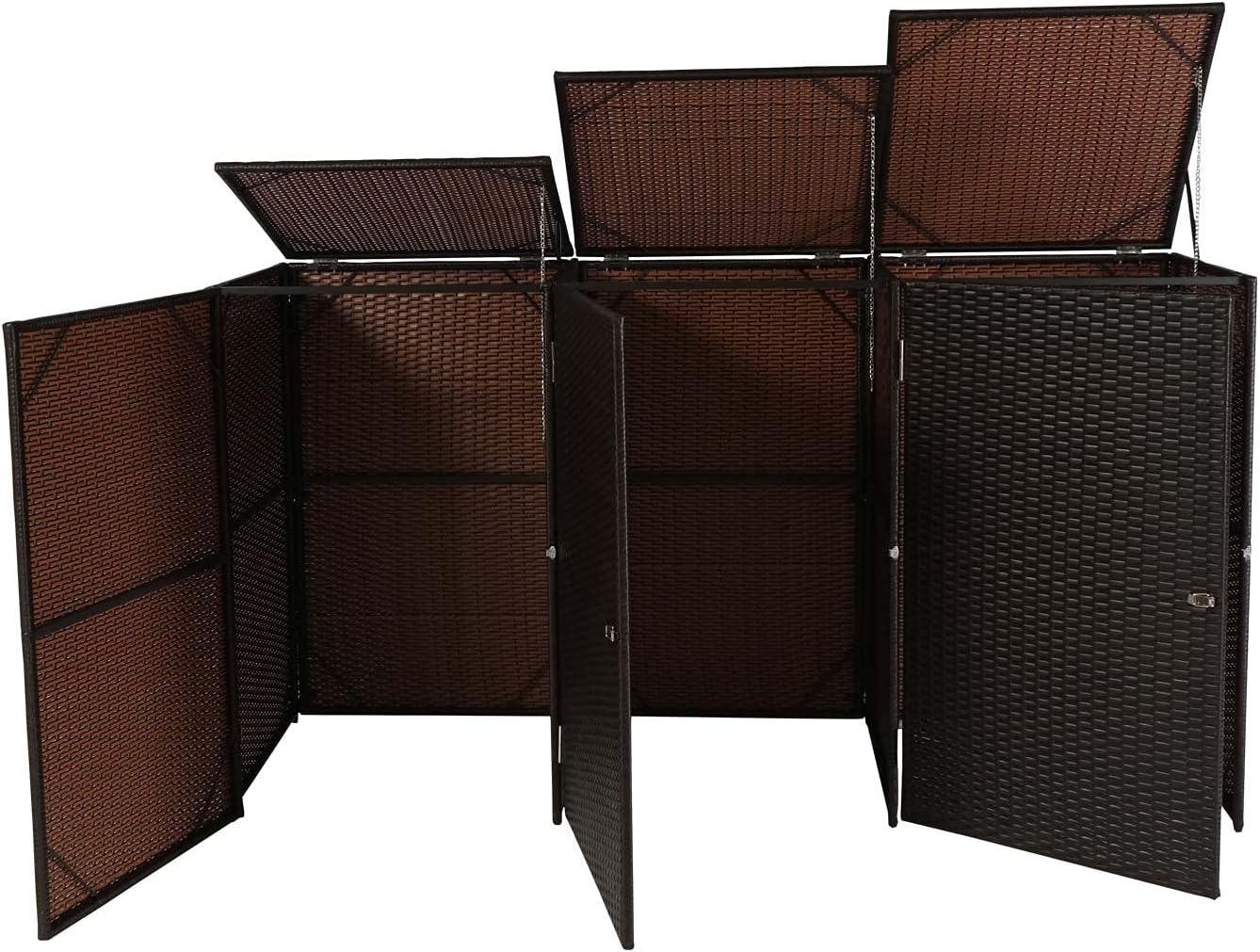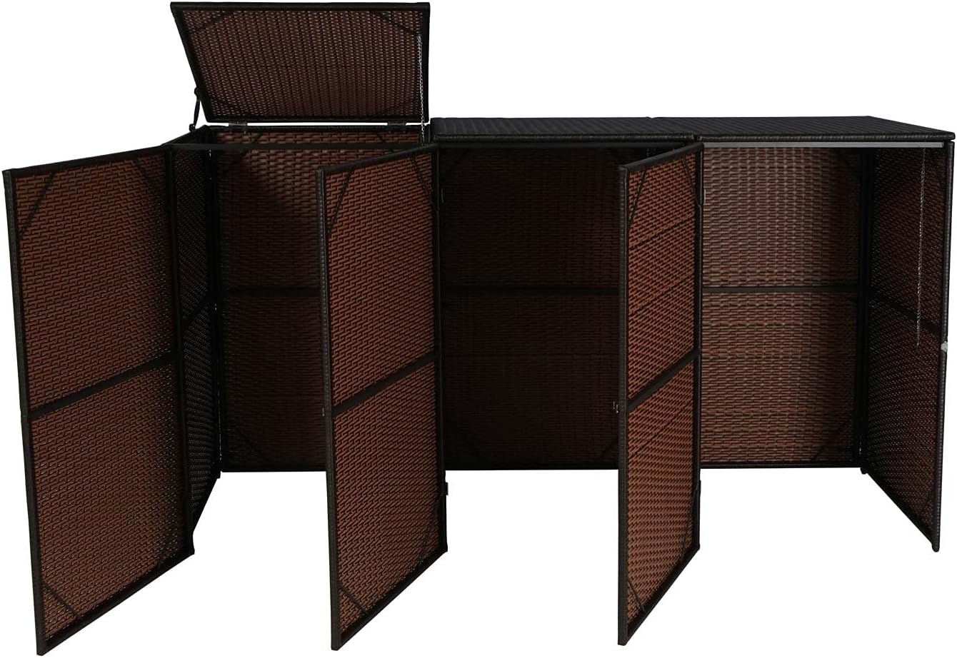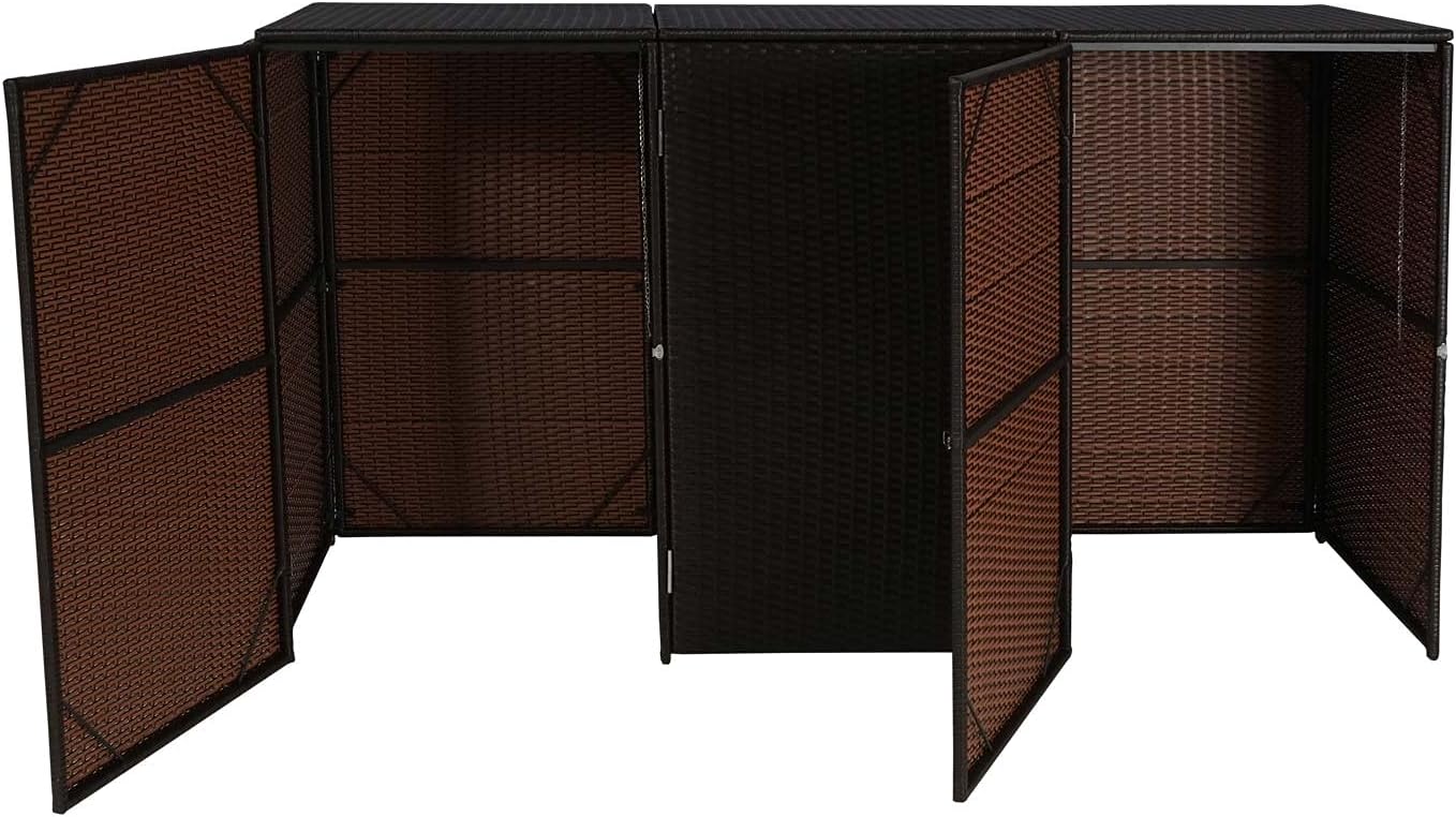 3x copribidoni box spazzatura rifiuti HWC-E25 66x195x110cm acciaio polyrattan marrone