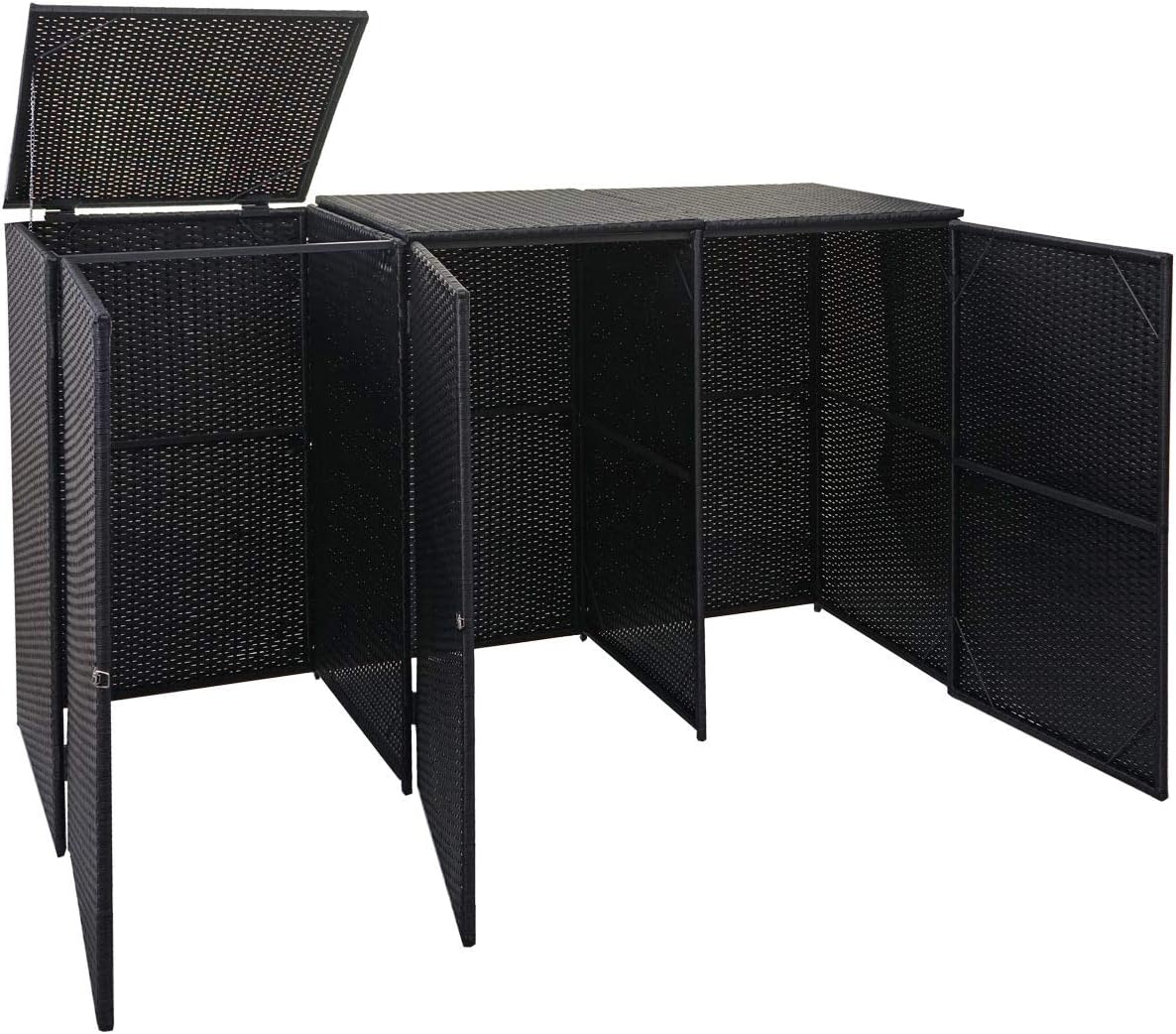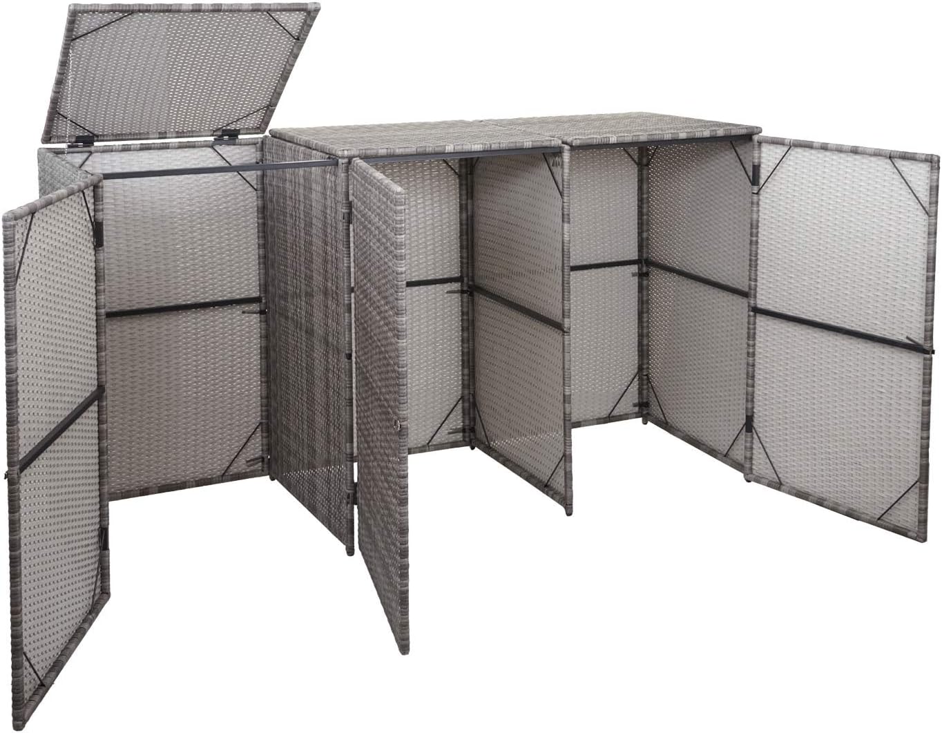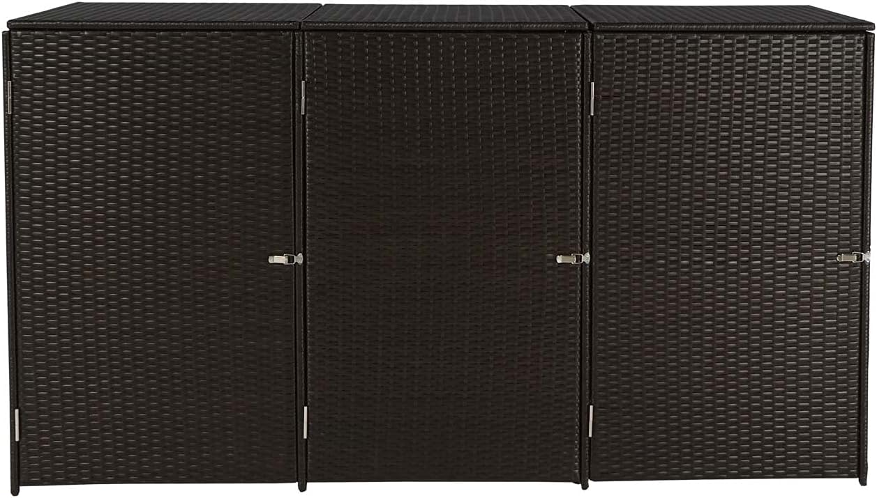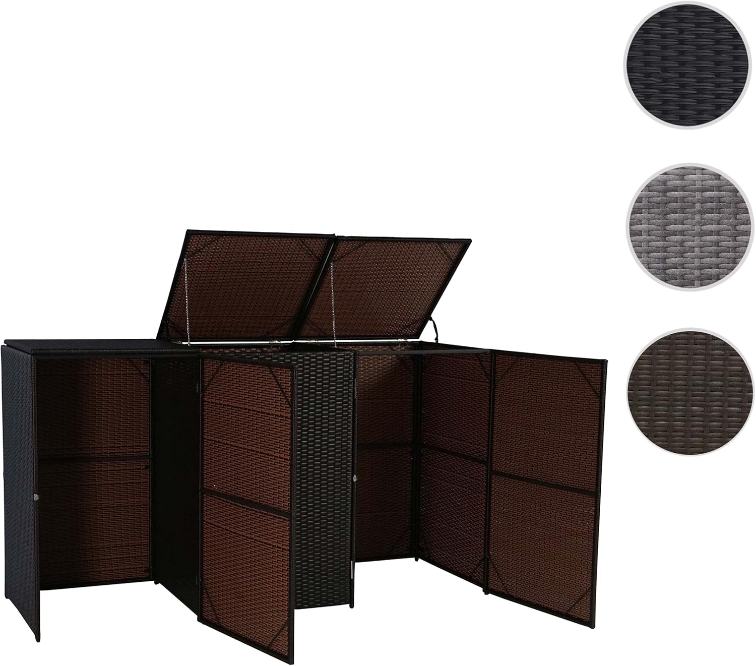 3x copribidoni box spazzatura rifiuti HWC-E25 66x195x110cm acciaio polyrattan marrone