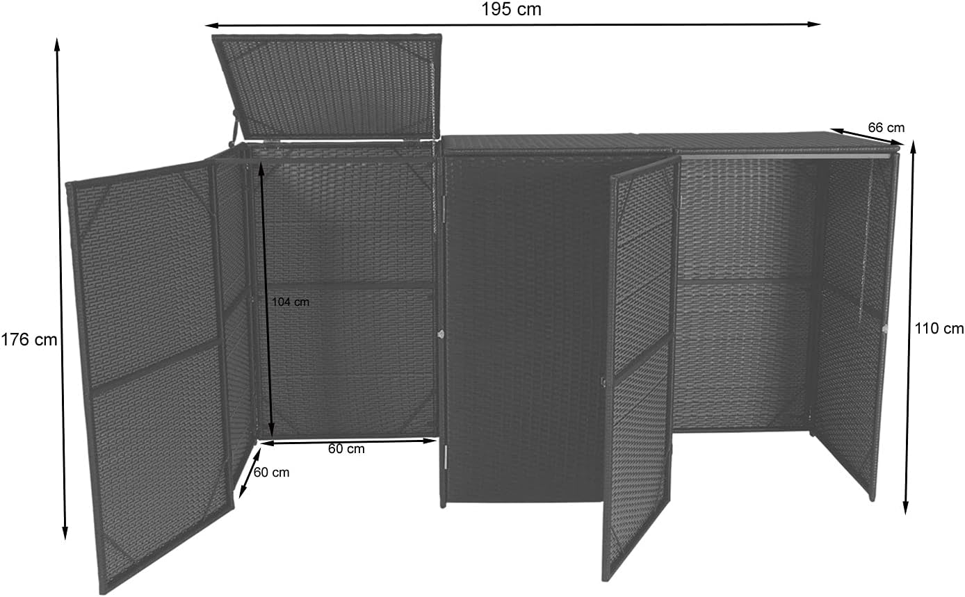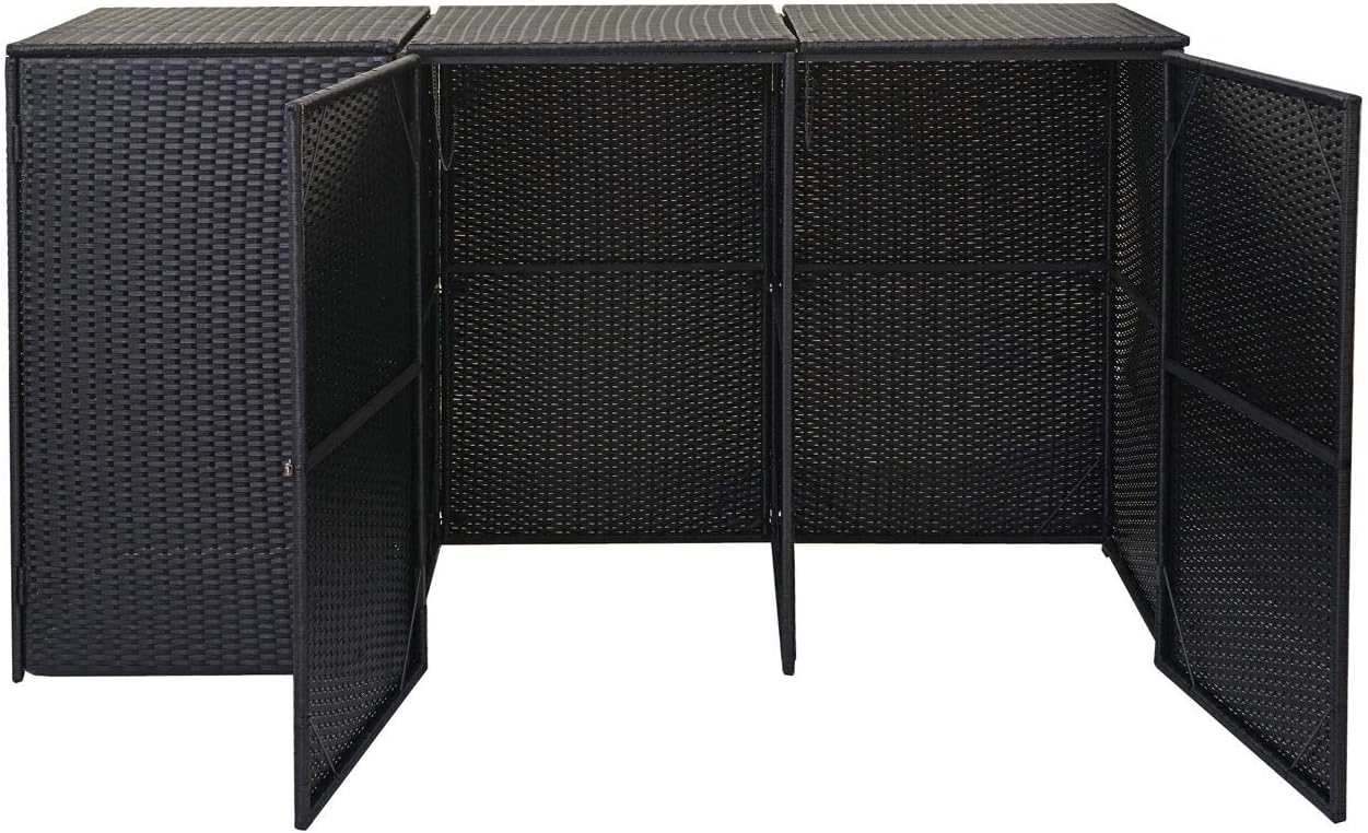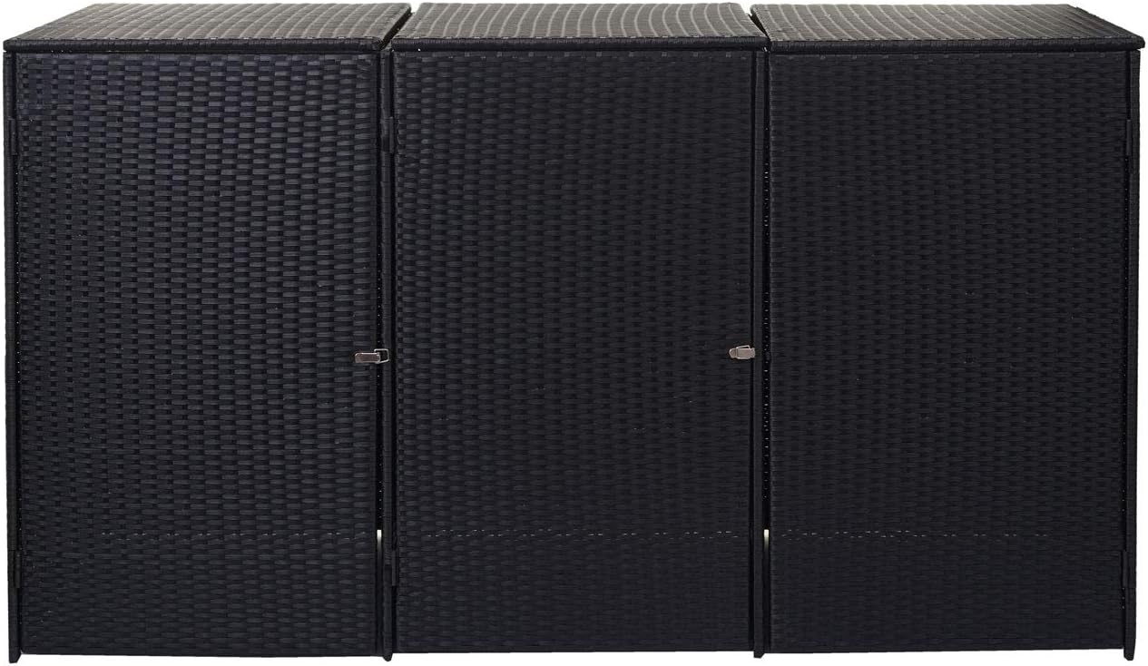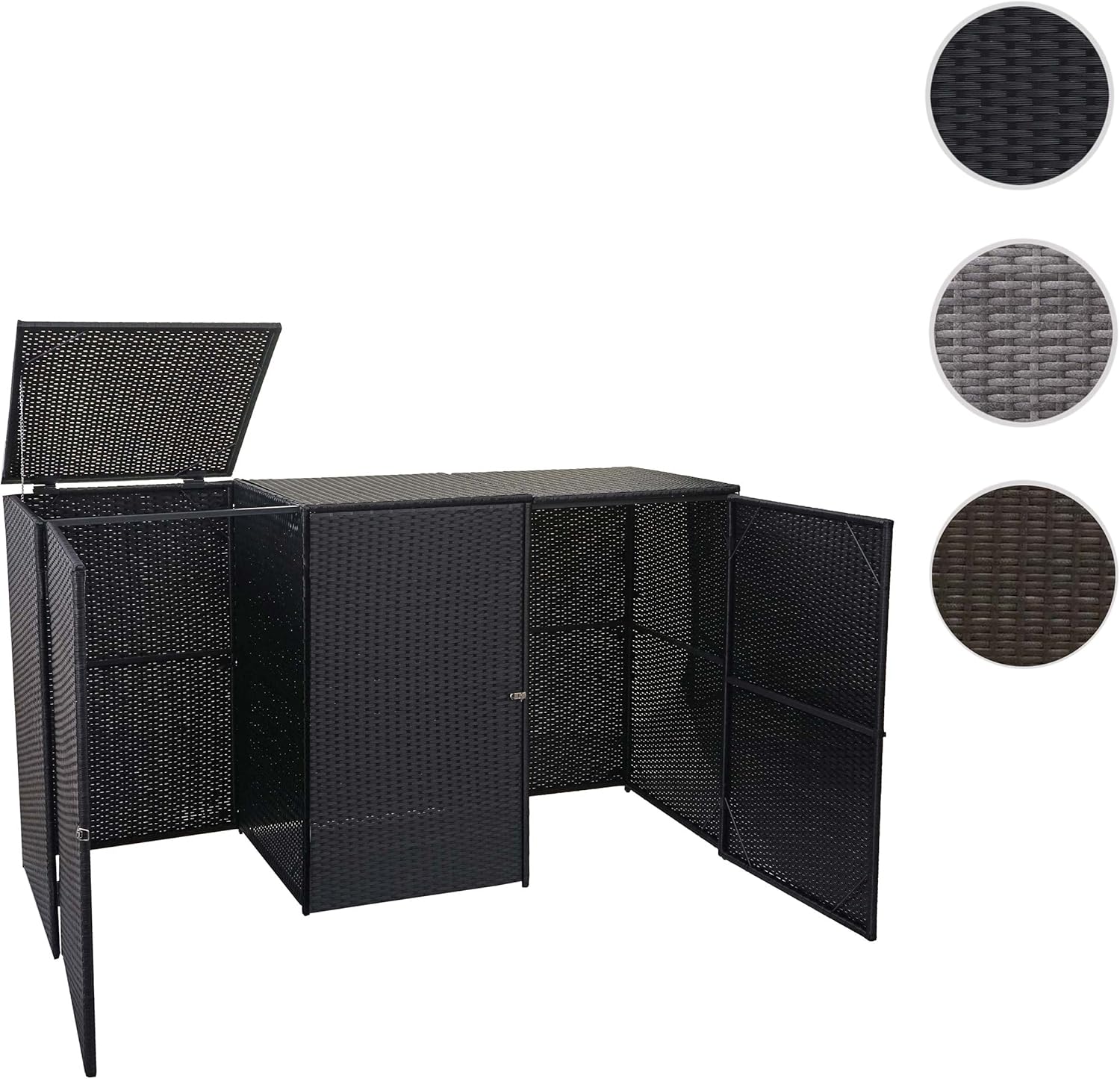 3x copribidoni box spazzatura rifiuti HWC-E25 66x195x110cm acciaio polyrattan marrone