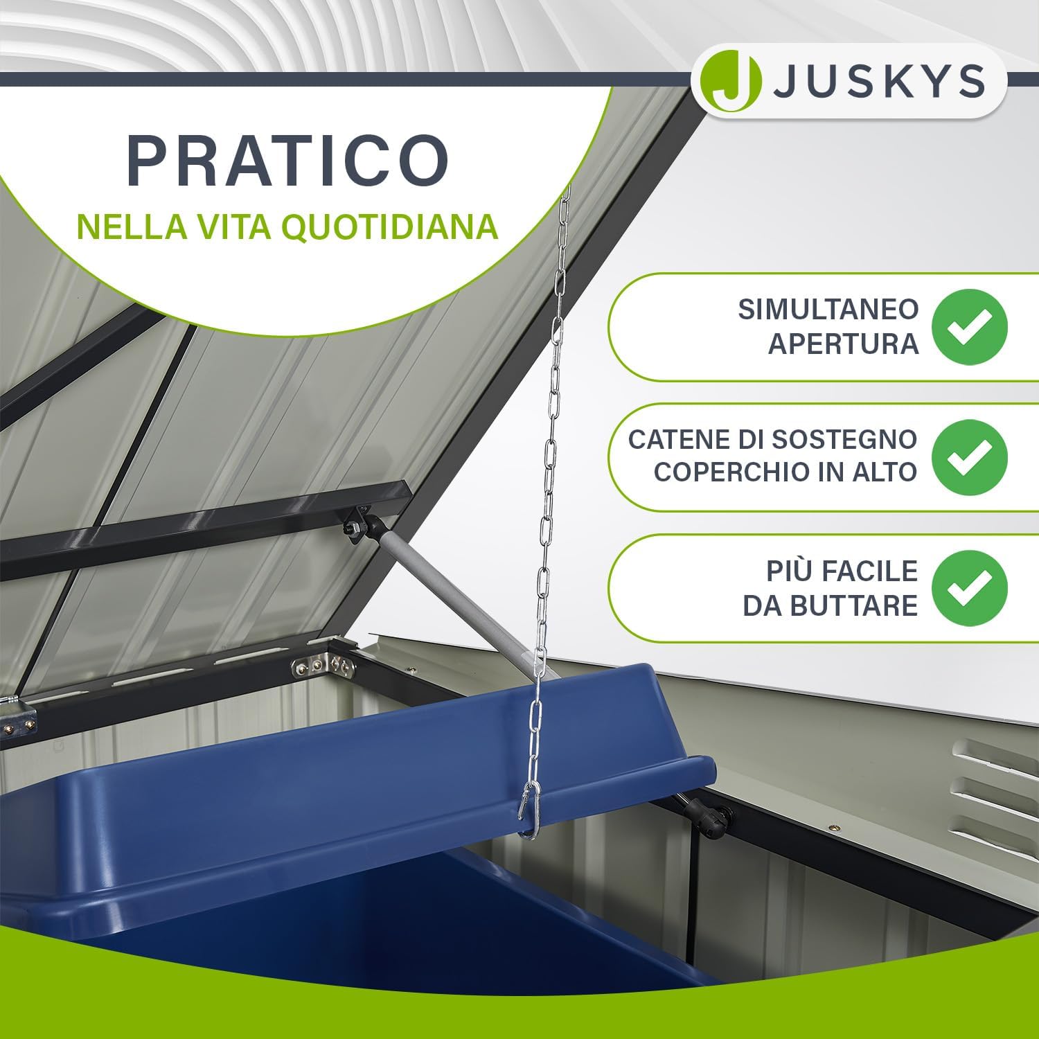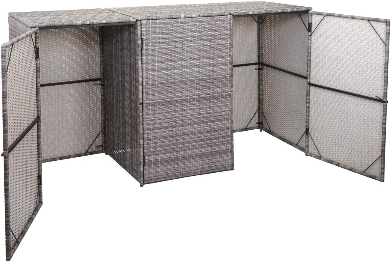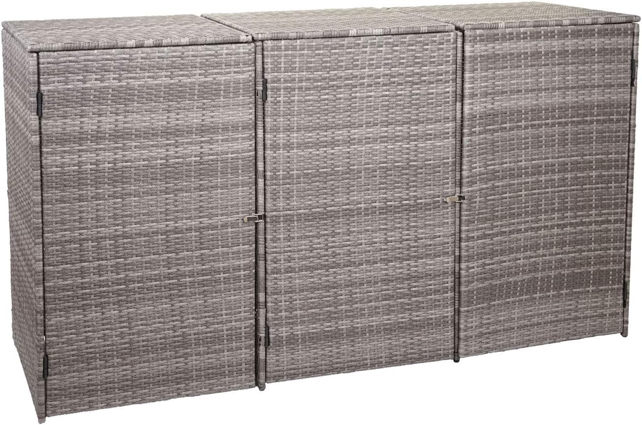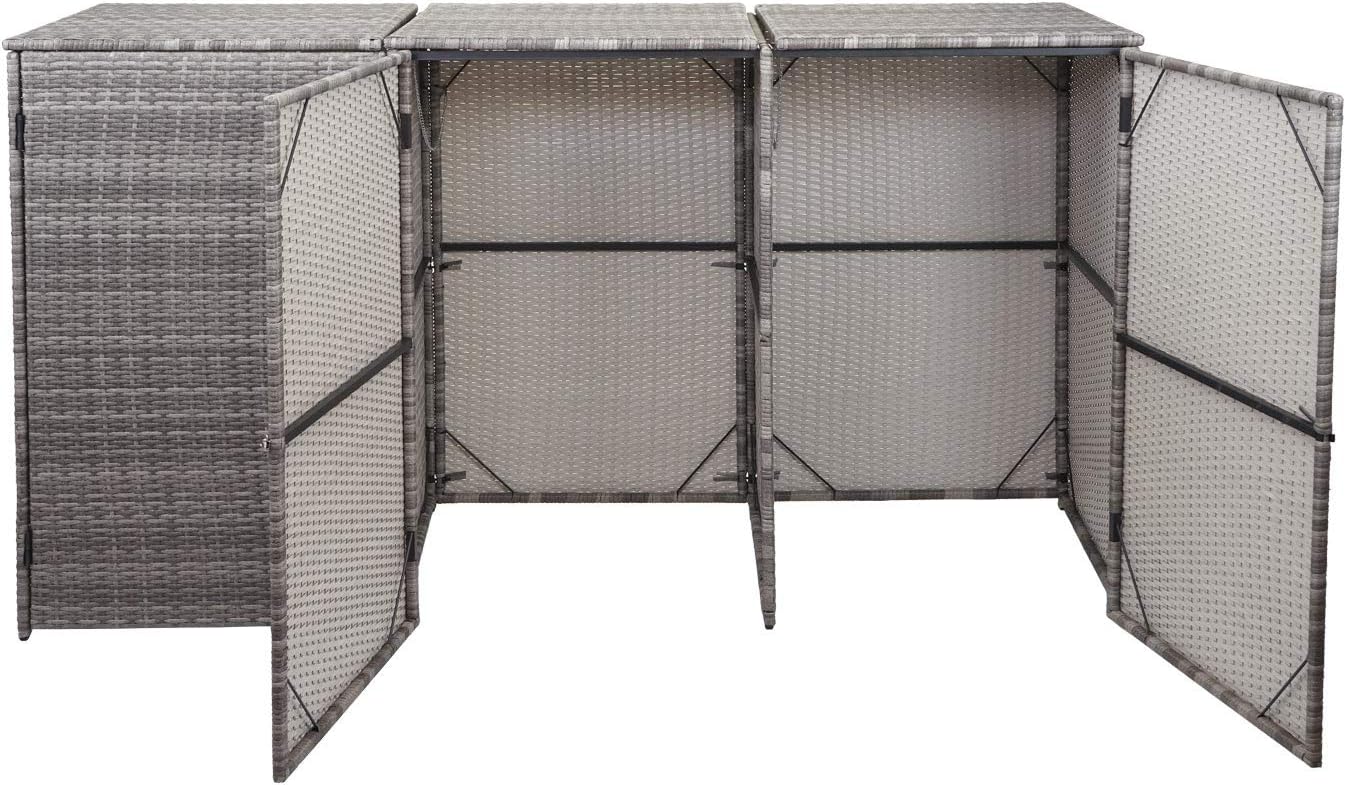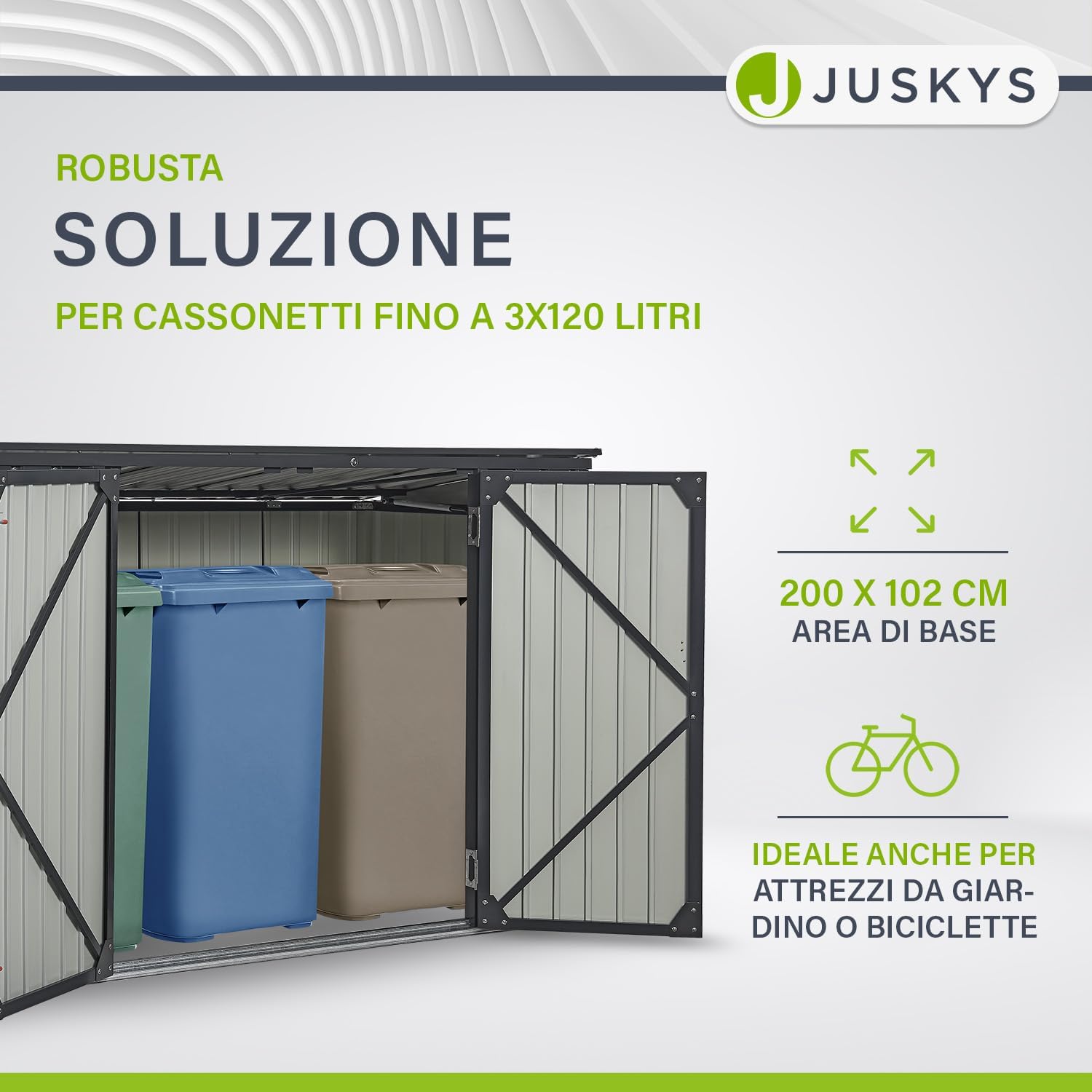Juskys Contenitore per bidoni dei rifiuti da 3 pezzi Namur 3 bidoni da 120 litri - 2m虏 - 2 porte - Rivestimento contenitore rifiuti metallico Cassonetti per rifiuti Casetta per bidoni Contenitore
