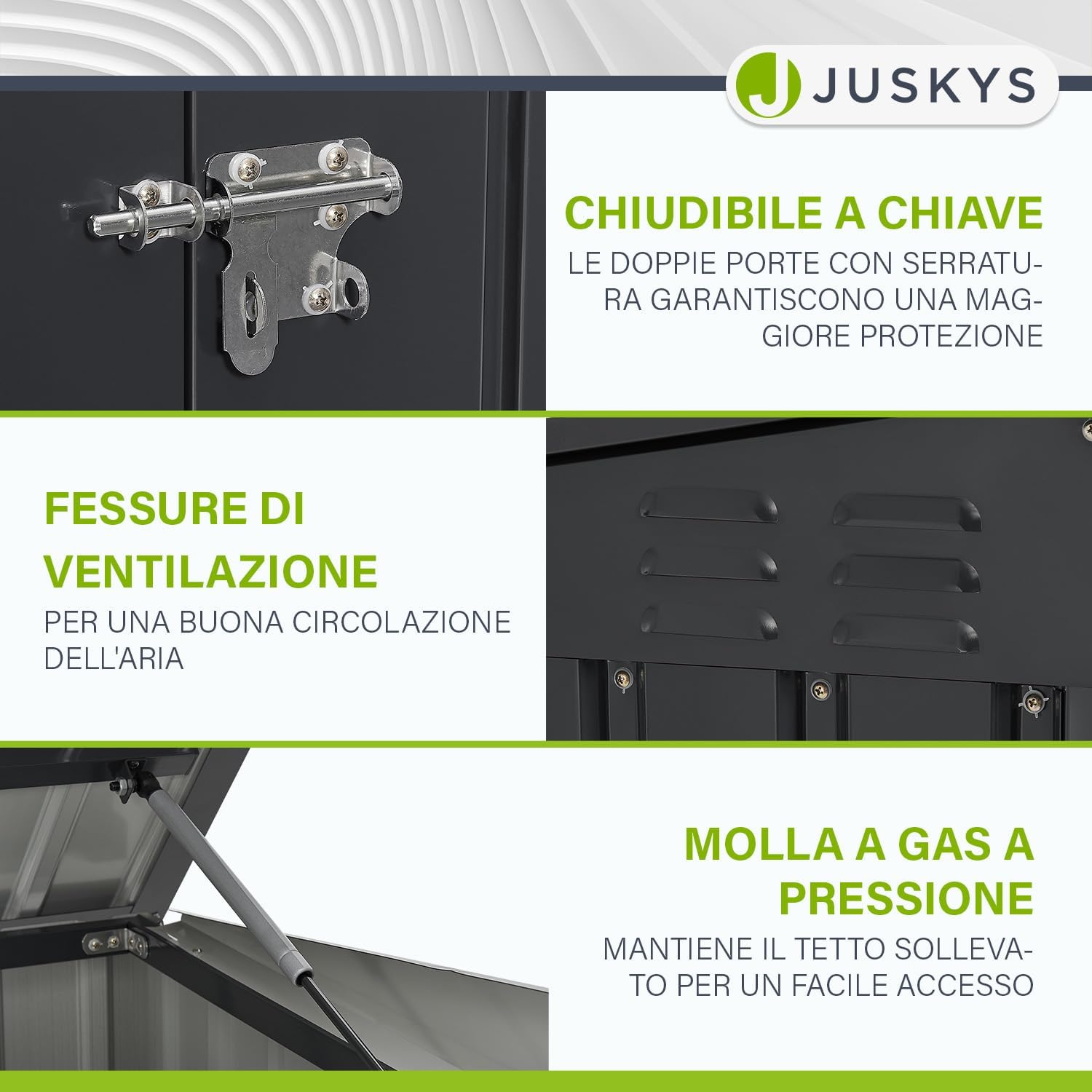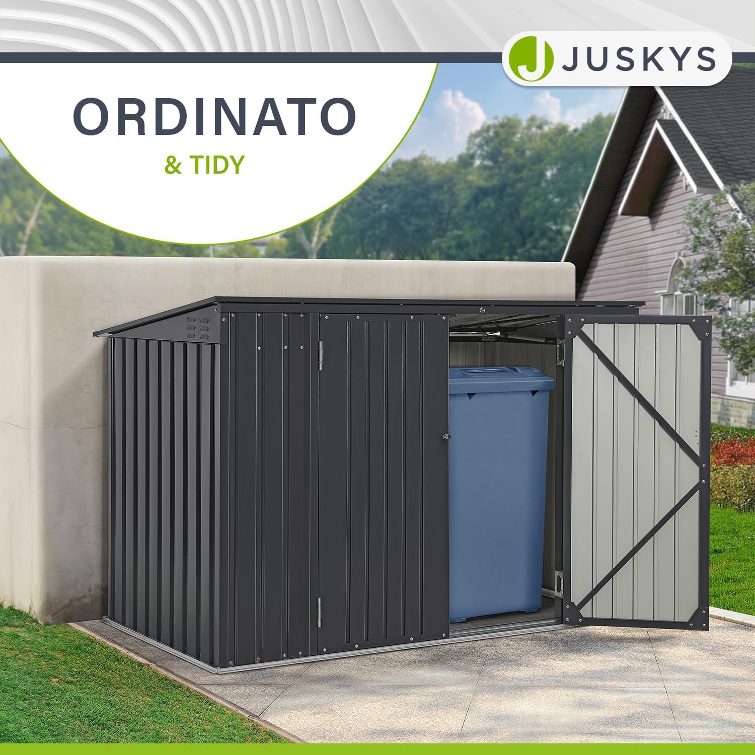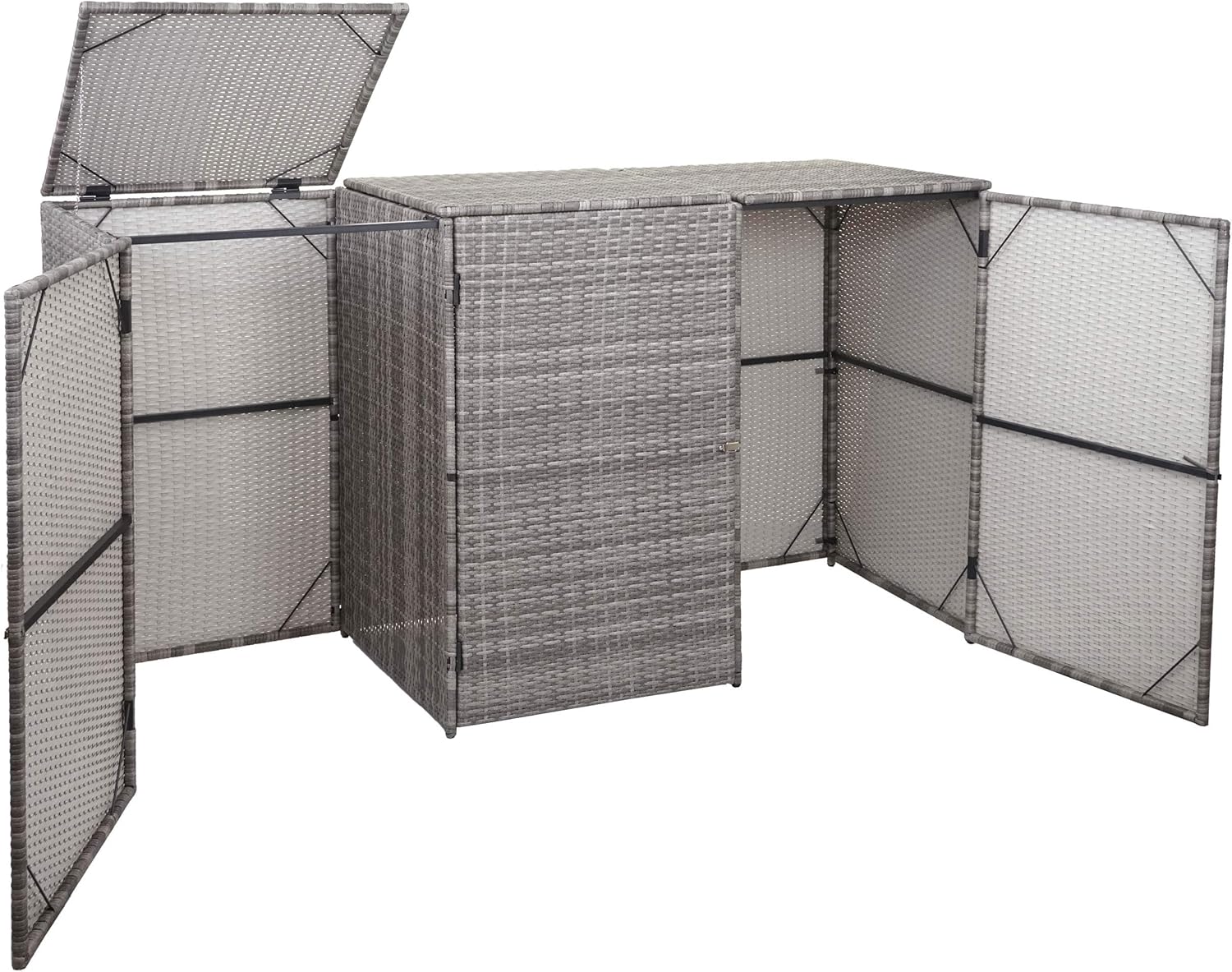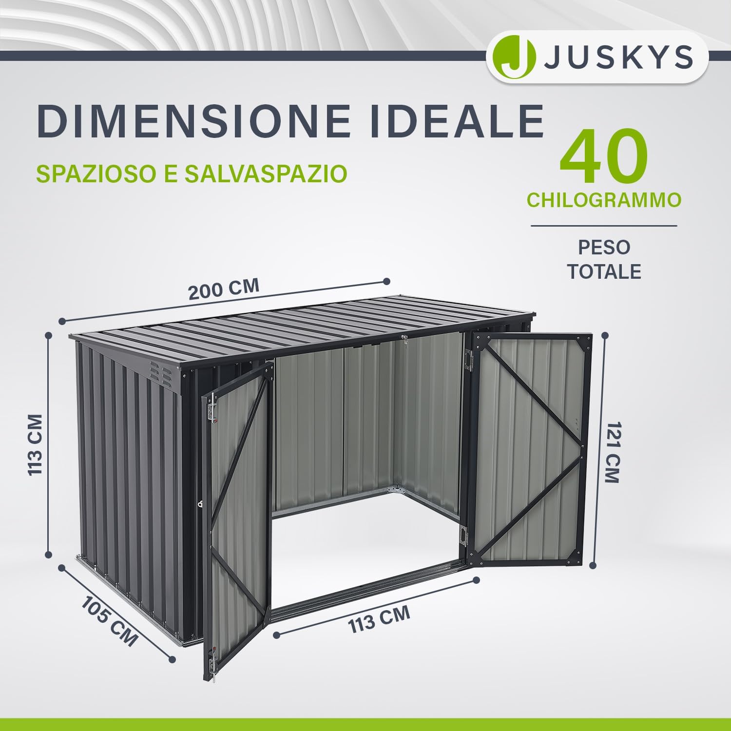 Juskys Contenitore per bidoni dei rifiuti da 3 pezzi Namur 3 bidoni da 120 litri - 2m虏 - 2 porte - Rivestimento contenitore rifiuti metallico Cassonetti per rifiuti Casetta per bidoni Contenitore