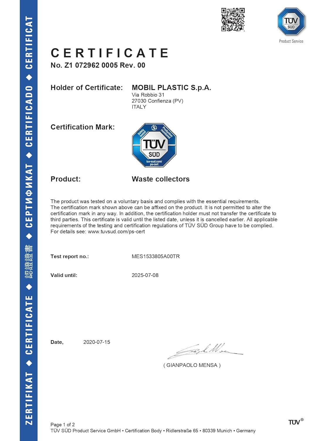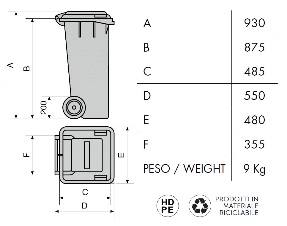 Mobil Plastic - Bidone Raccolta Differenziata 120 Litri con Coperchio e Ruote per Uso Esterno | Colore Grigio | Plastica Resistente | Certificato UNI EN 840