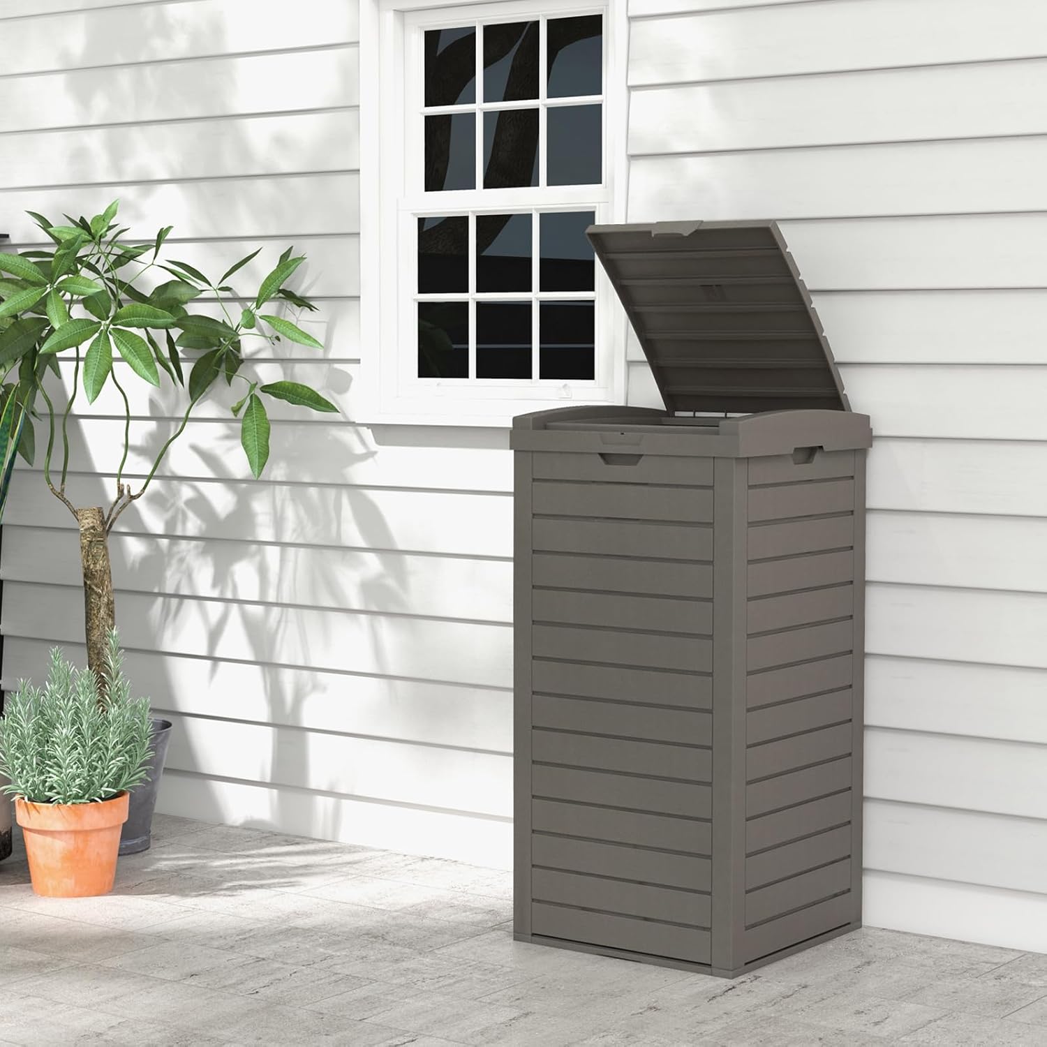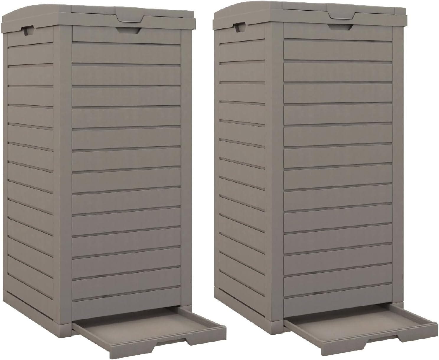 Duramax StoreAway 850L Plastic Garden Shed, Outdoor Storage Shed, Wheelie bin box, Wheelie Bin Hideaways, Durable Construction, Ideal for Tools, BBQs & 2x Garbage Bins, 130x74x110 cm, Warm Taupe