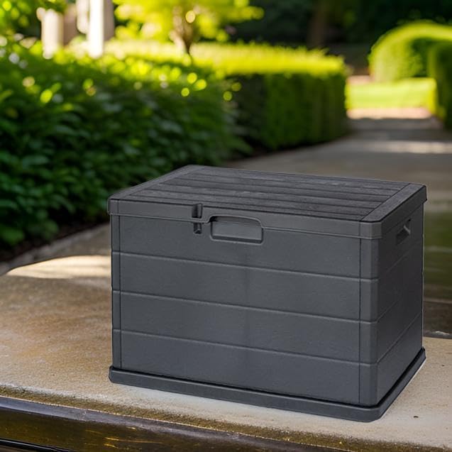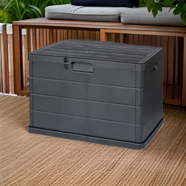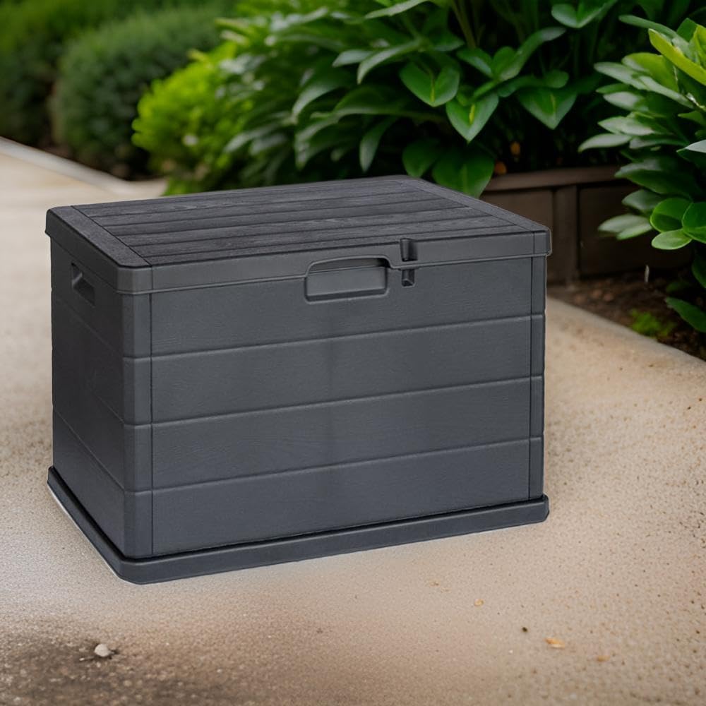 Maury's Baule Cassapanca 170 Litri Effetto Legno, Contenitore Stoccaggio, in Resina Antracite, Dimensioni 78L x 55l x 52H cm - Made in Italy