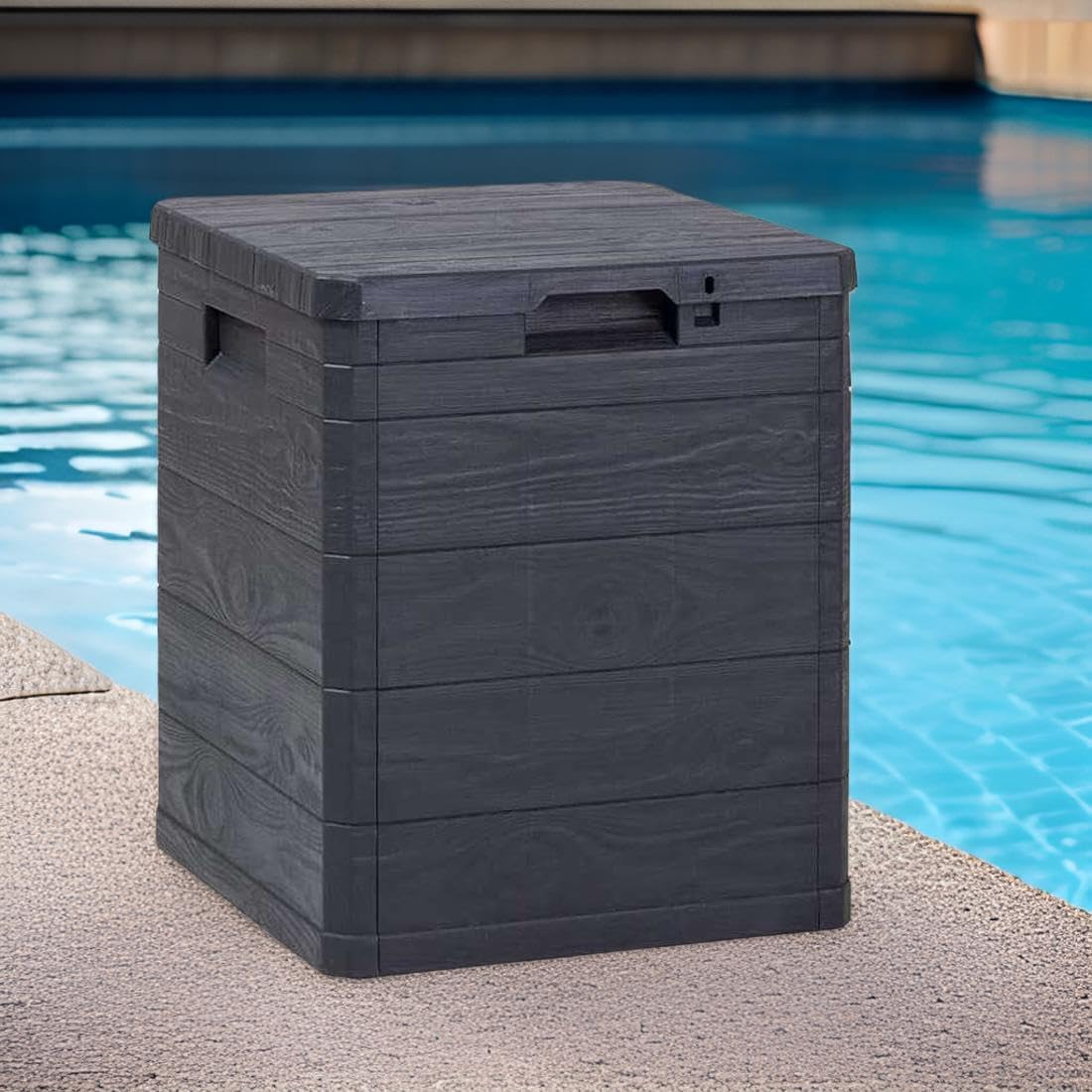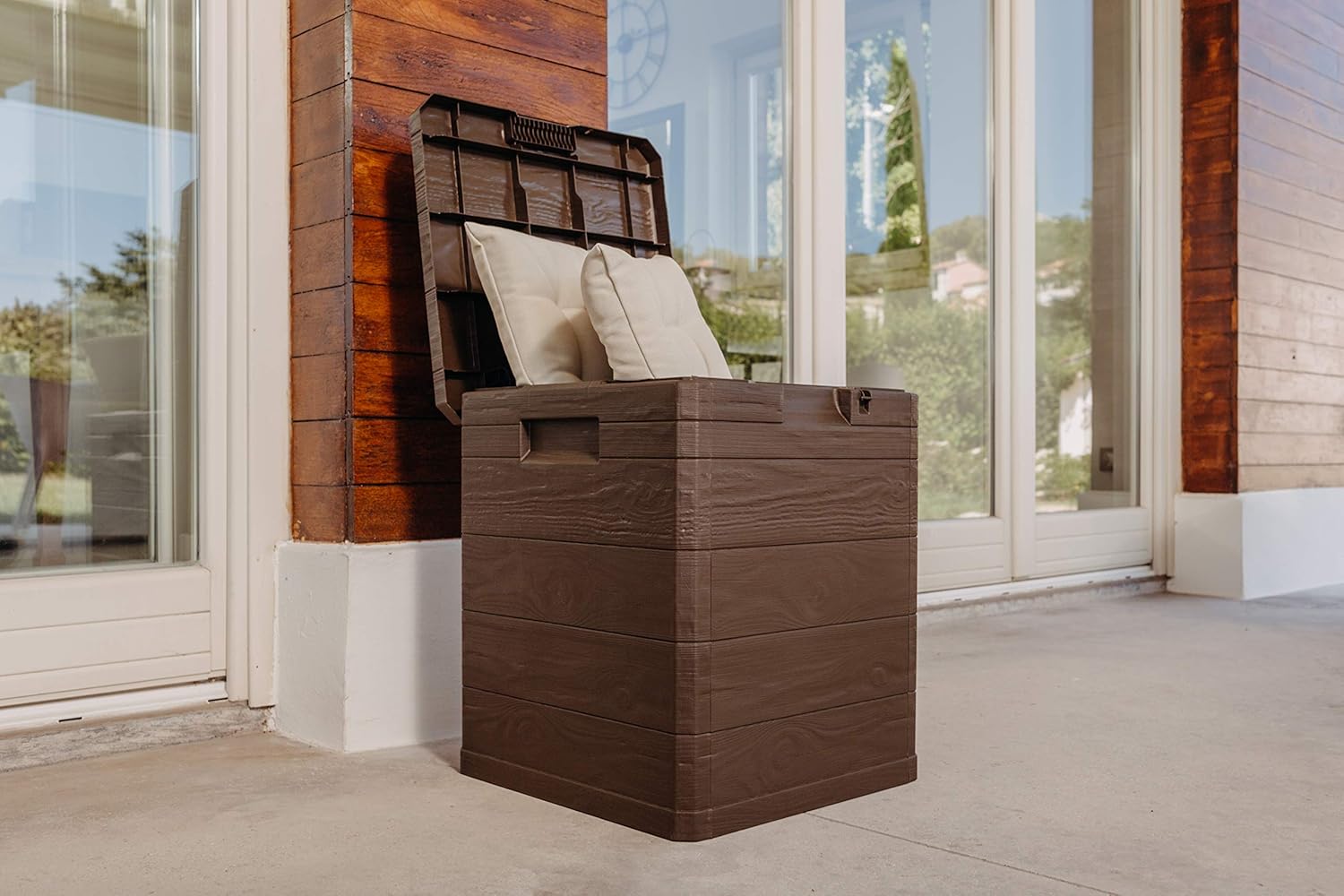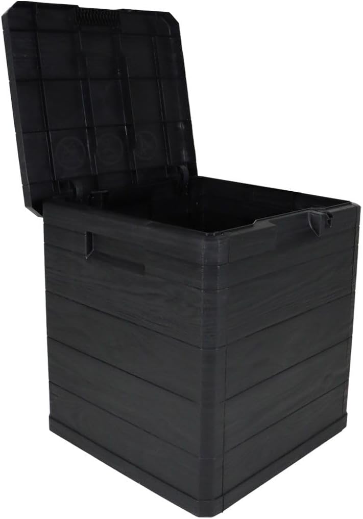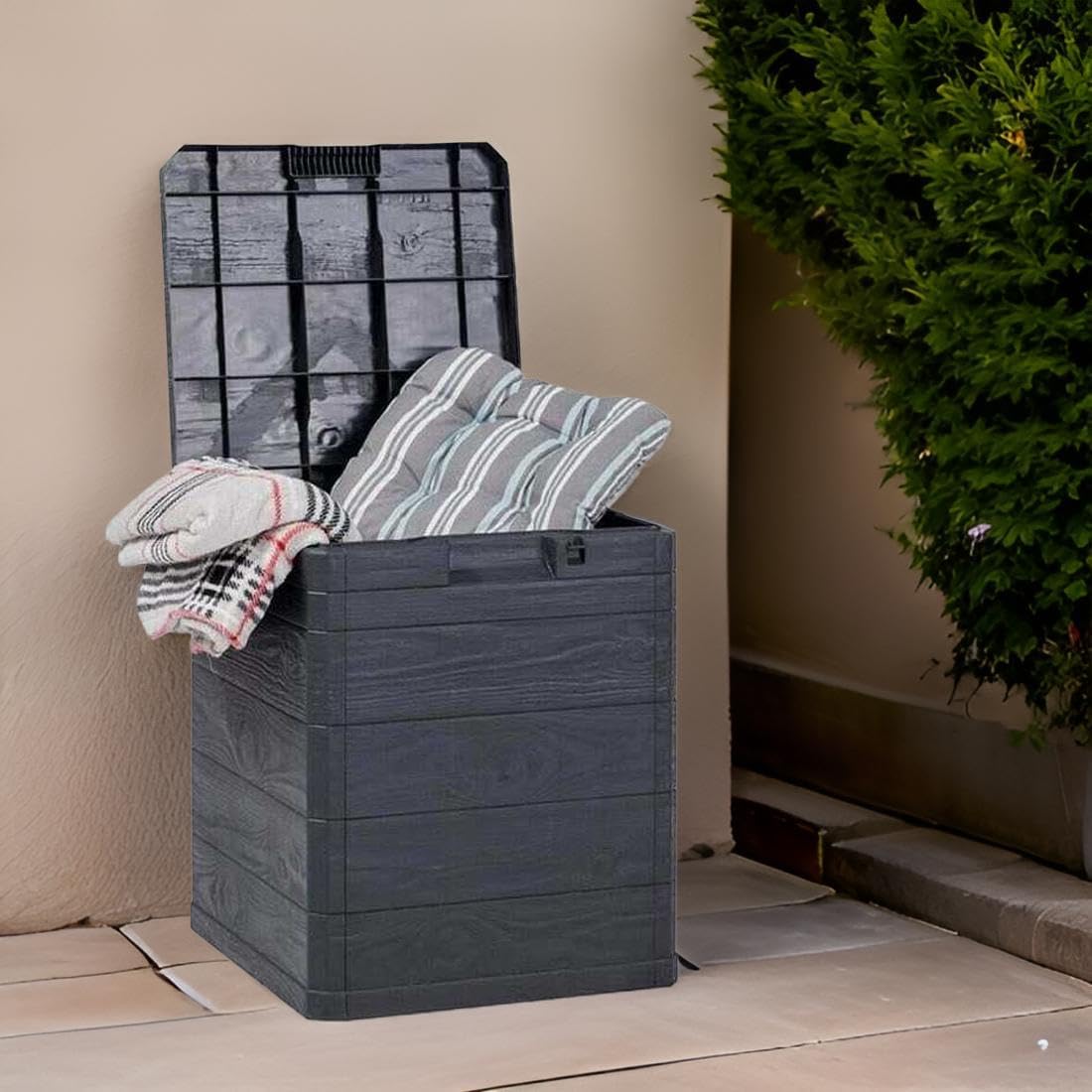 MA MAISON Bauletto Multibox da Giardino 90 Litri Effetto Simil Legno Contenitore Stoccaggio in Resina Antracite 42,5x44x50h cm da Esterno da Interno Resistente ai Raggi Uv - Made in Italy